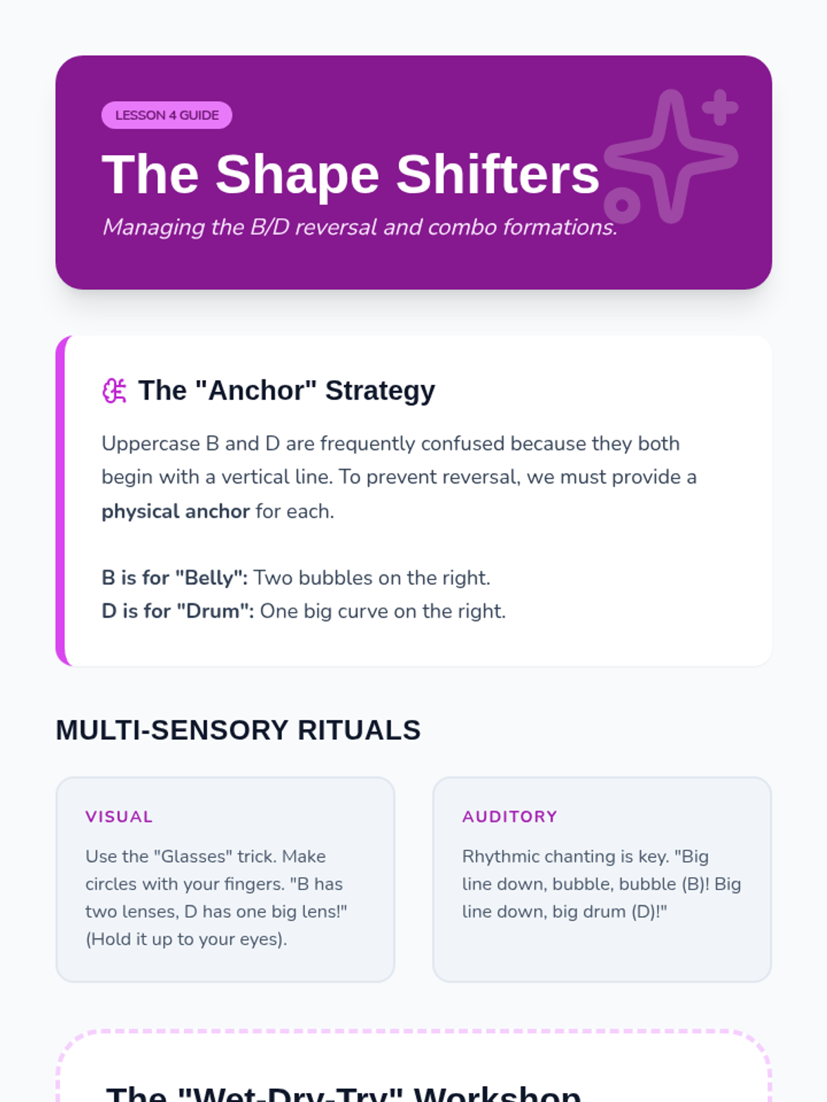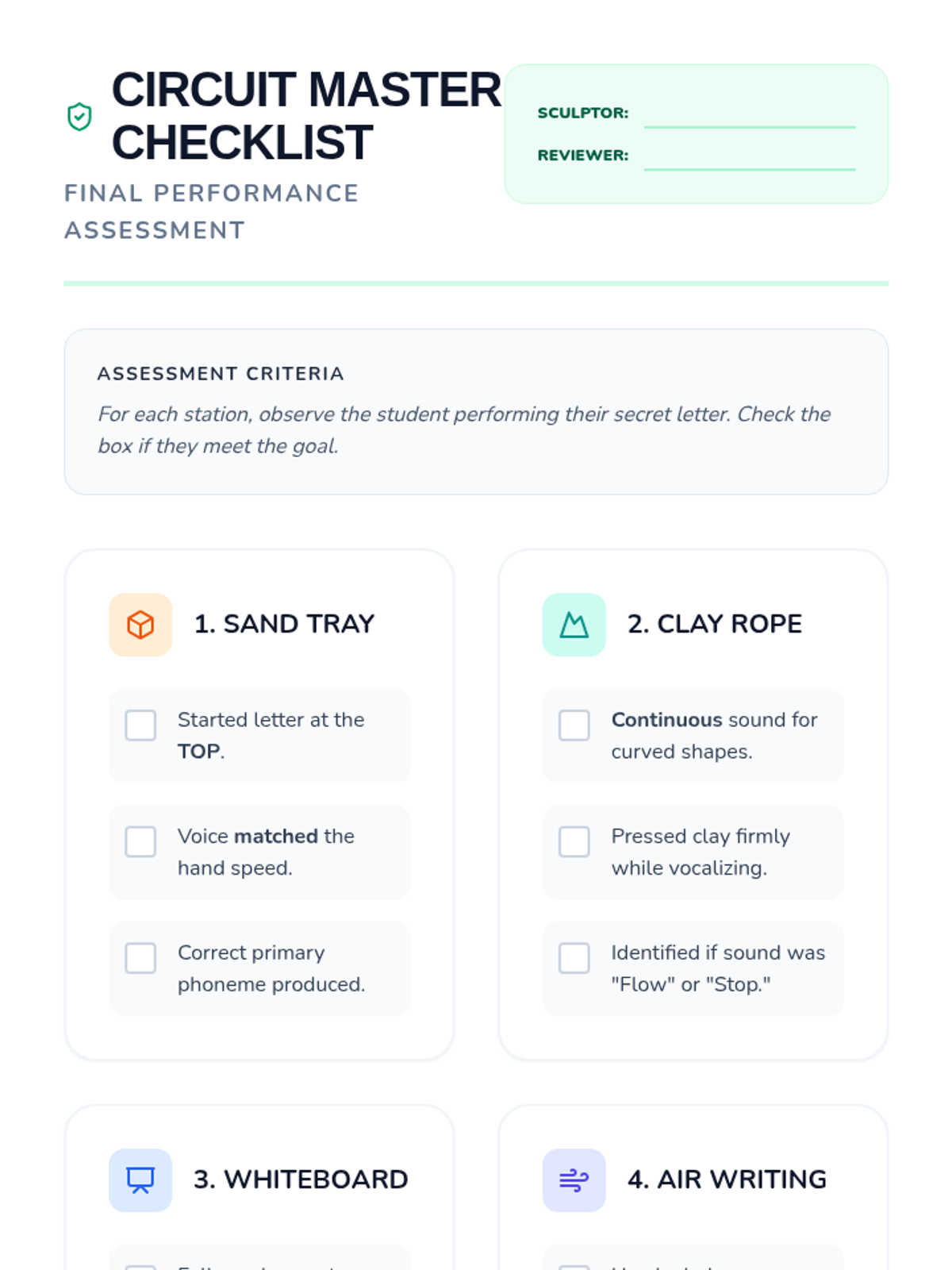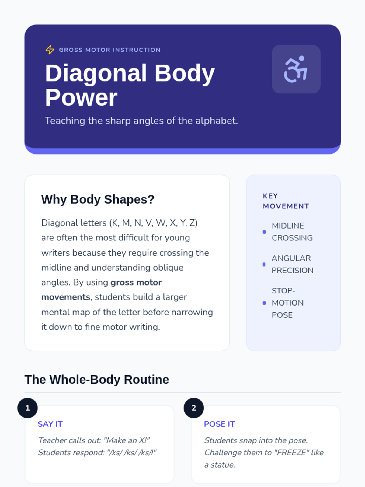 A multi-sensory workshop approach connecting uppercase letter shapes to their phonemes through tactile, gross motor, and vocal engagement for 1st Grade students.