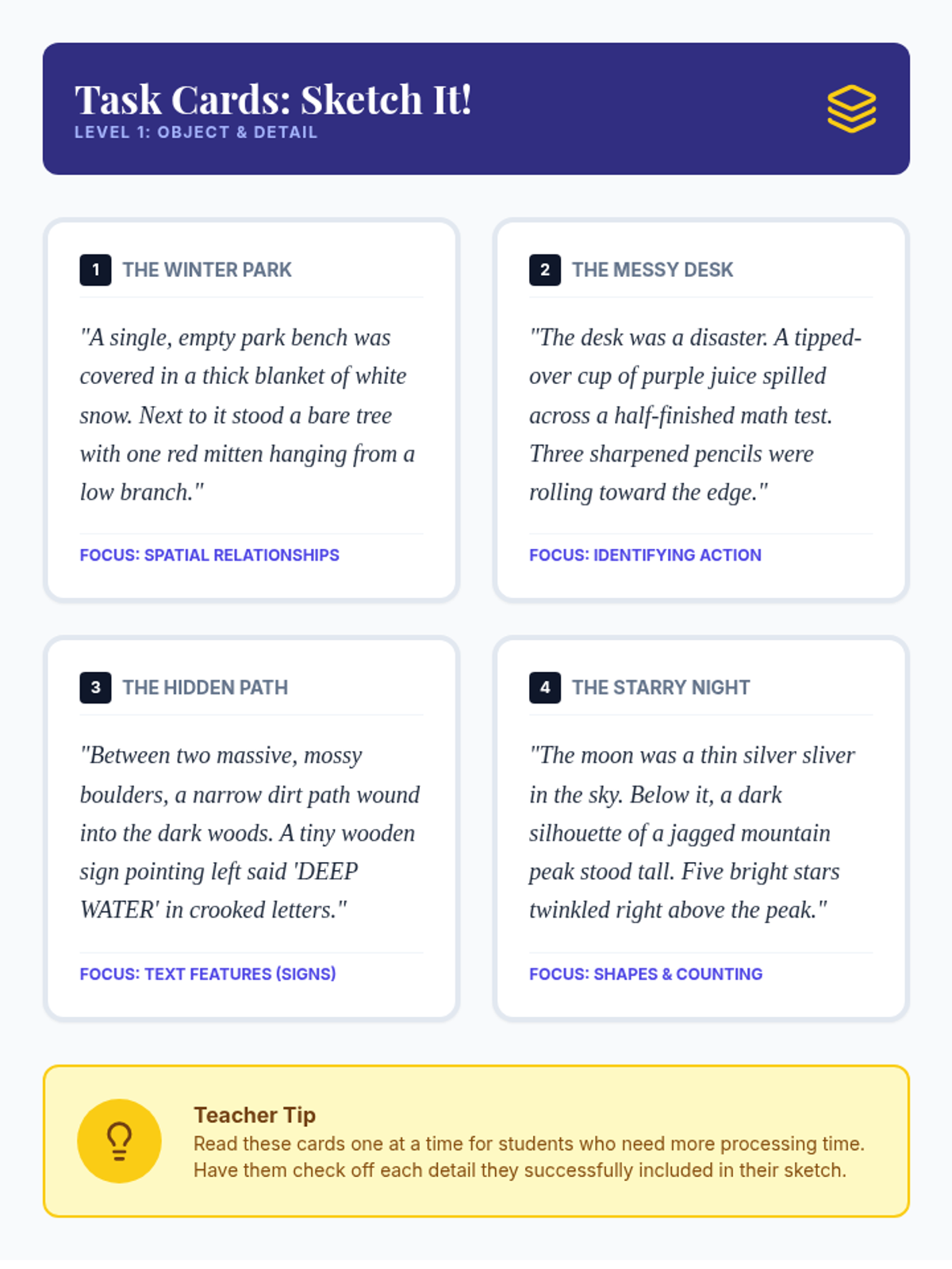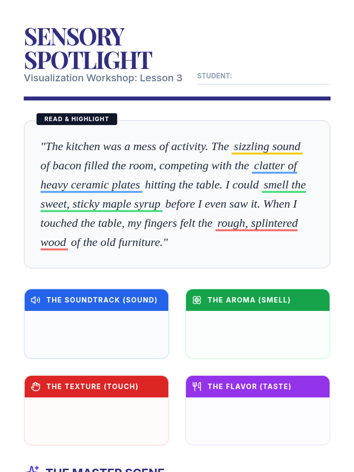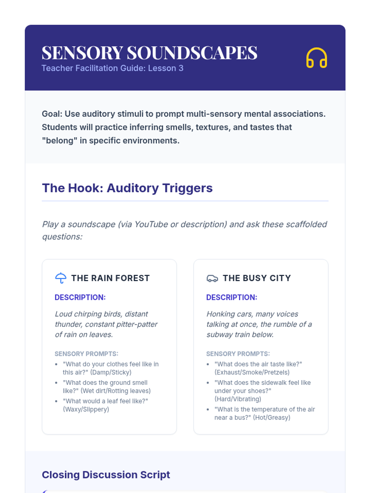 This 5th-grade sequence guides students through the 'Mind\'s Eye' technique, moving from simple object visualization to multi-sensory mental movies and storyboarding. It uses scaffolded workshops to build reading retention and comprehension for students requiring academic support.