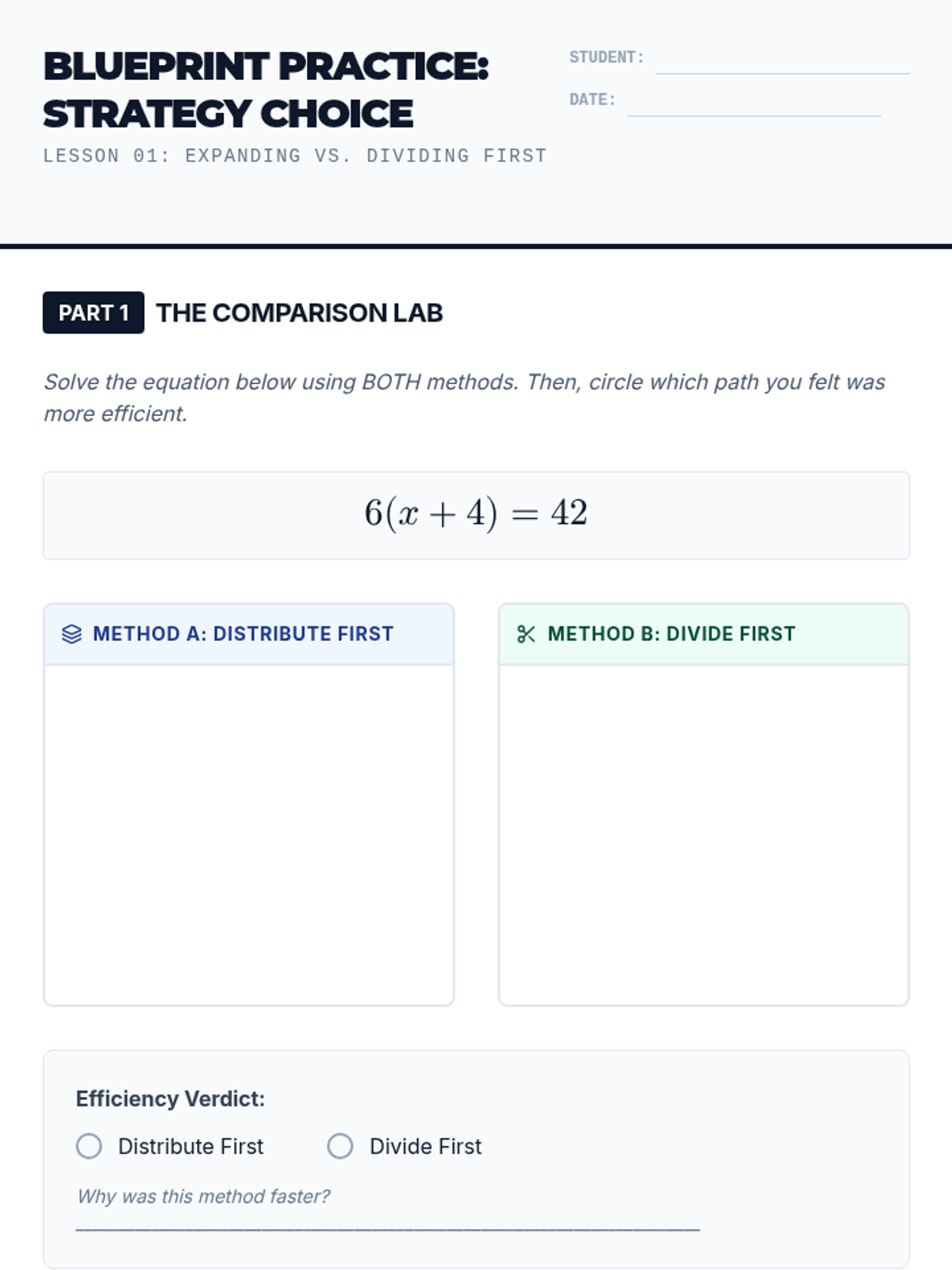A sequence focused on the foundational skills of factoring, including prime factorization, finding the Greatest Common Factor (GCF), and introducing the distributive property in reverse for grades 6-7.
