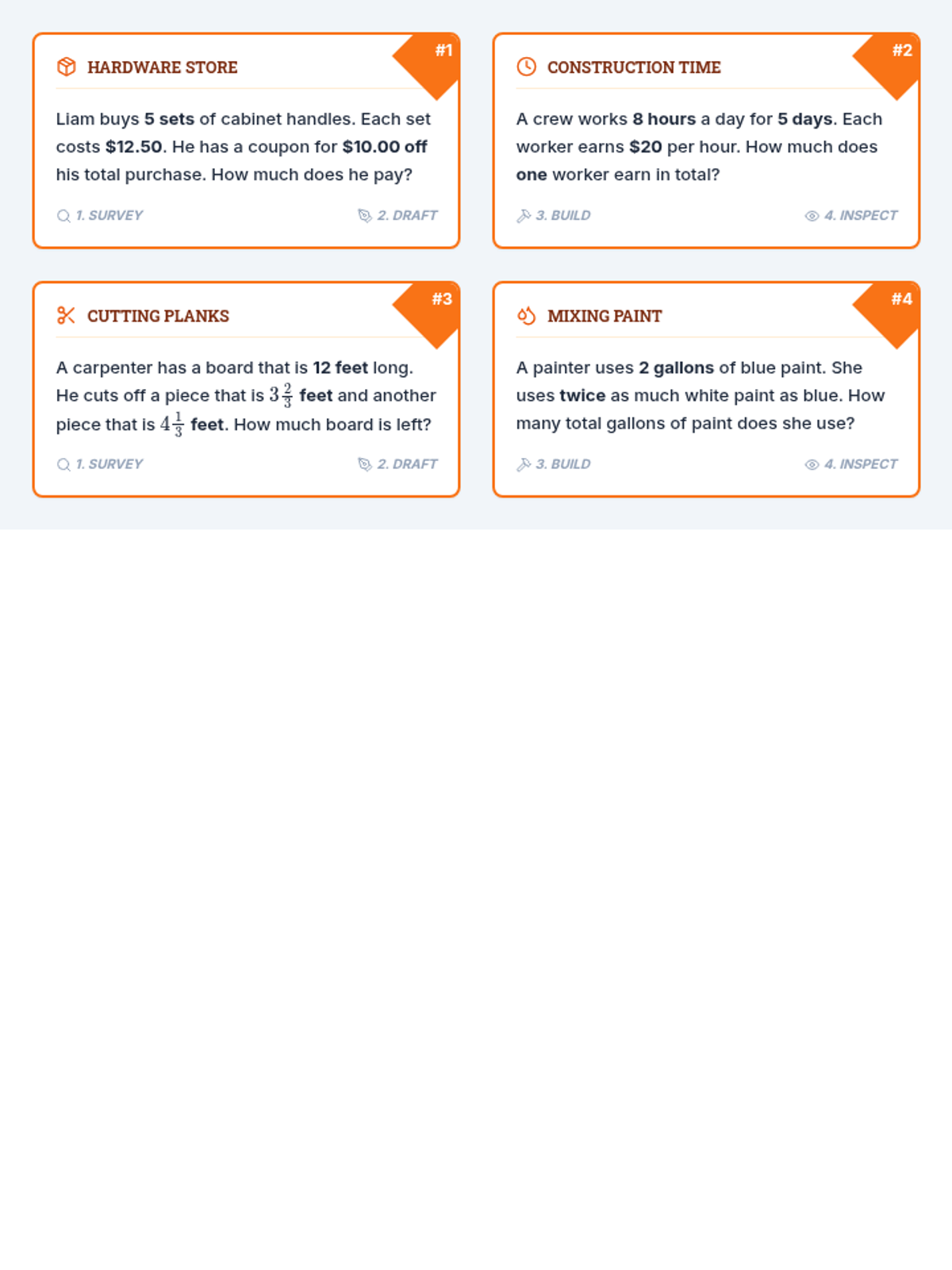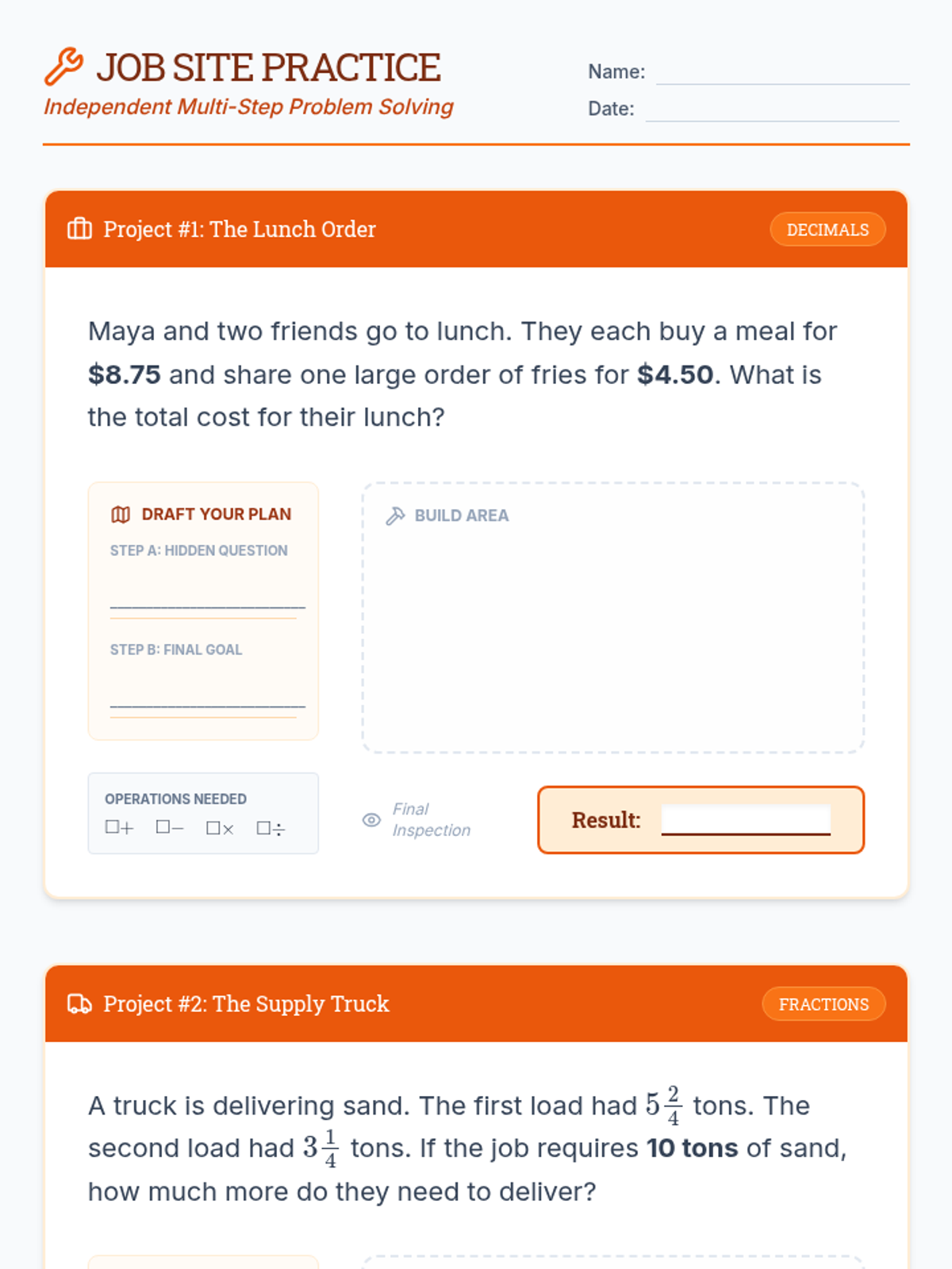 A comprehensive unit focusing on mastering multi-step word problems using a structured problem-solving routine. Students learn to break down complex problems involving whole numbers, fractions, and decimals using 'blueprint' thinking.