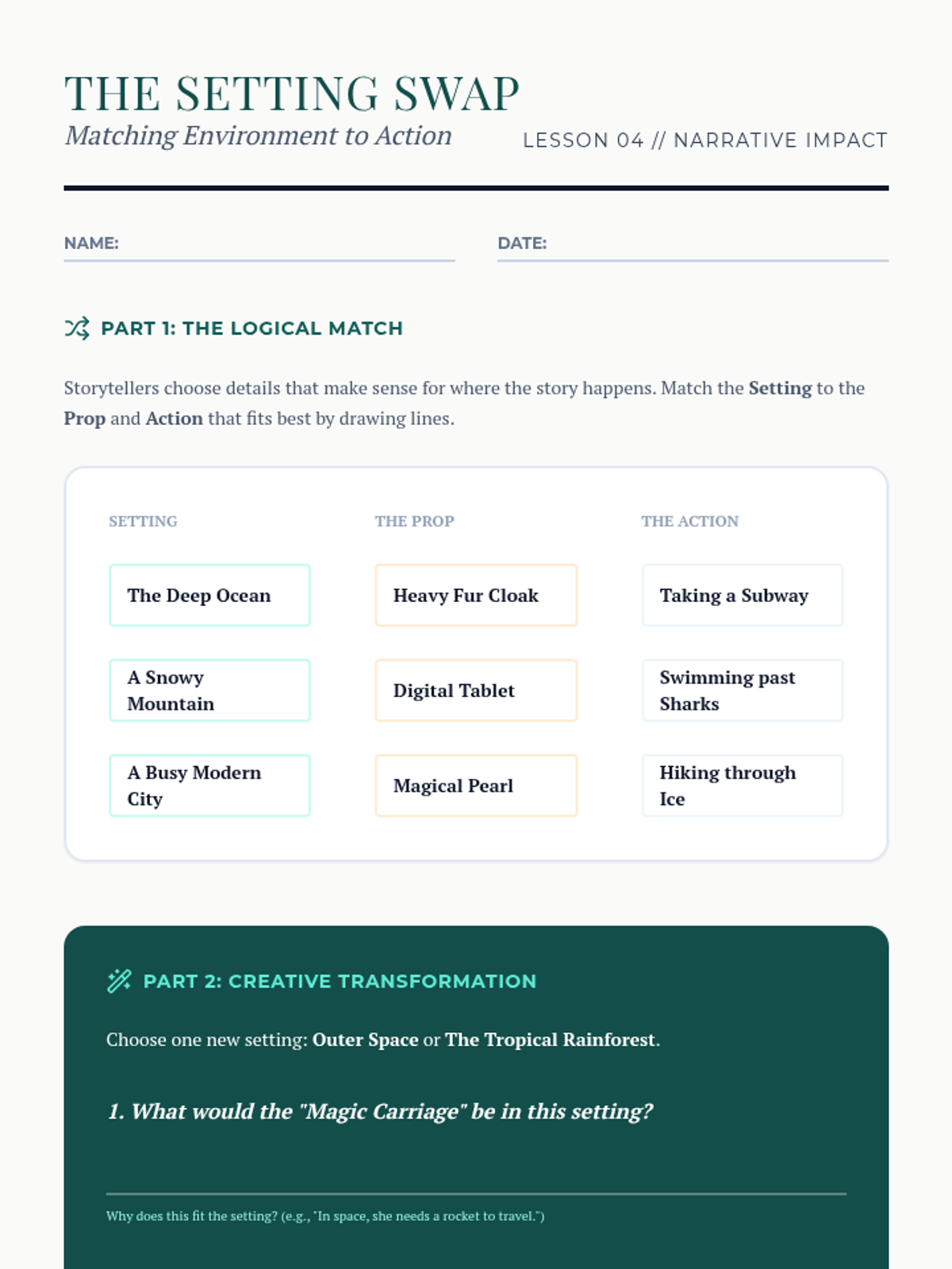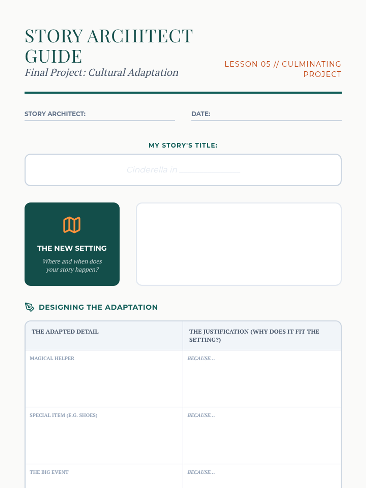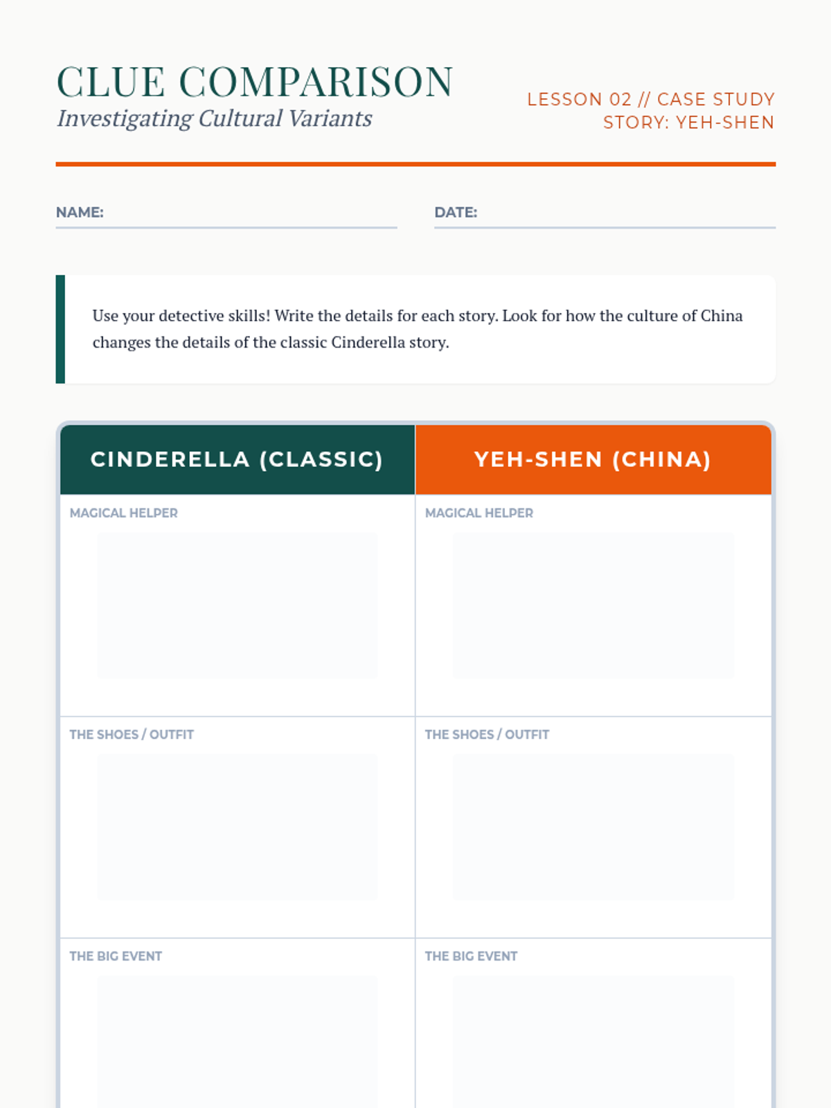 A comparative analysis of multicultural folktales where students explore how different cultures adapt similar story structures. They will map similarities in plot and analyze how setting and culture influence narrative elements.