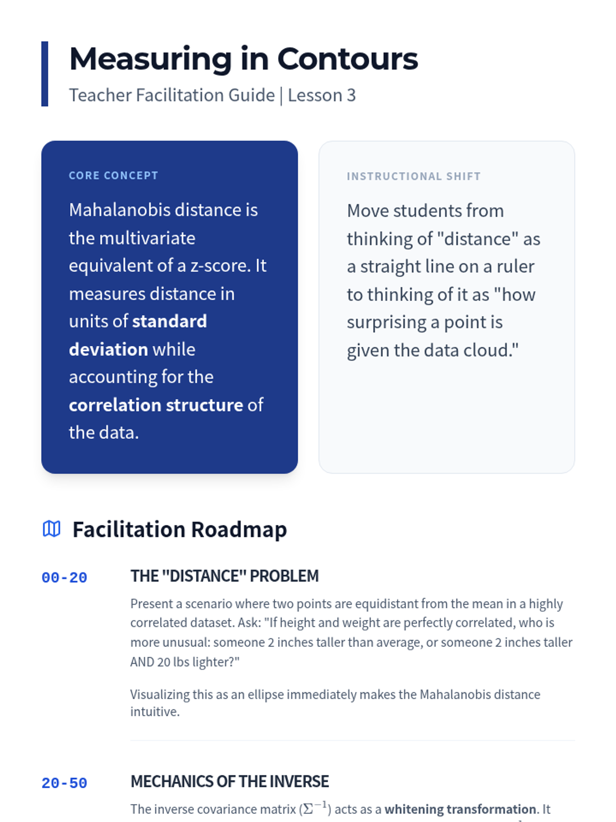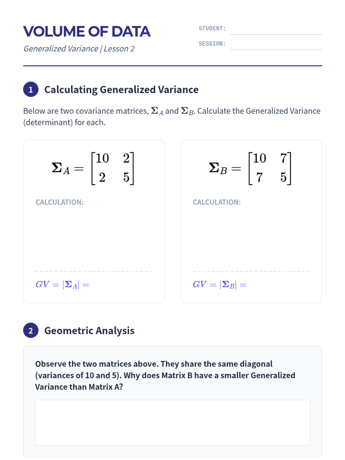 This graduate-level sequence bridges univariate statistics and multivariate geometry, exploring how variability manifests in high-dimensional spaces through covariance matrices, generalized variance, and principal component analysis.