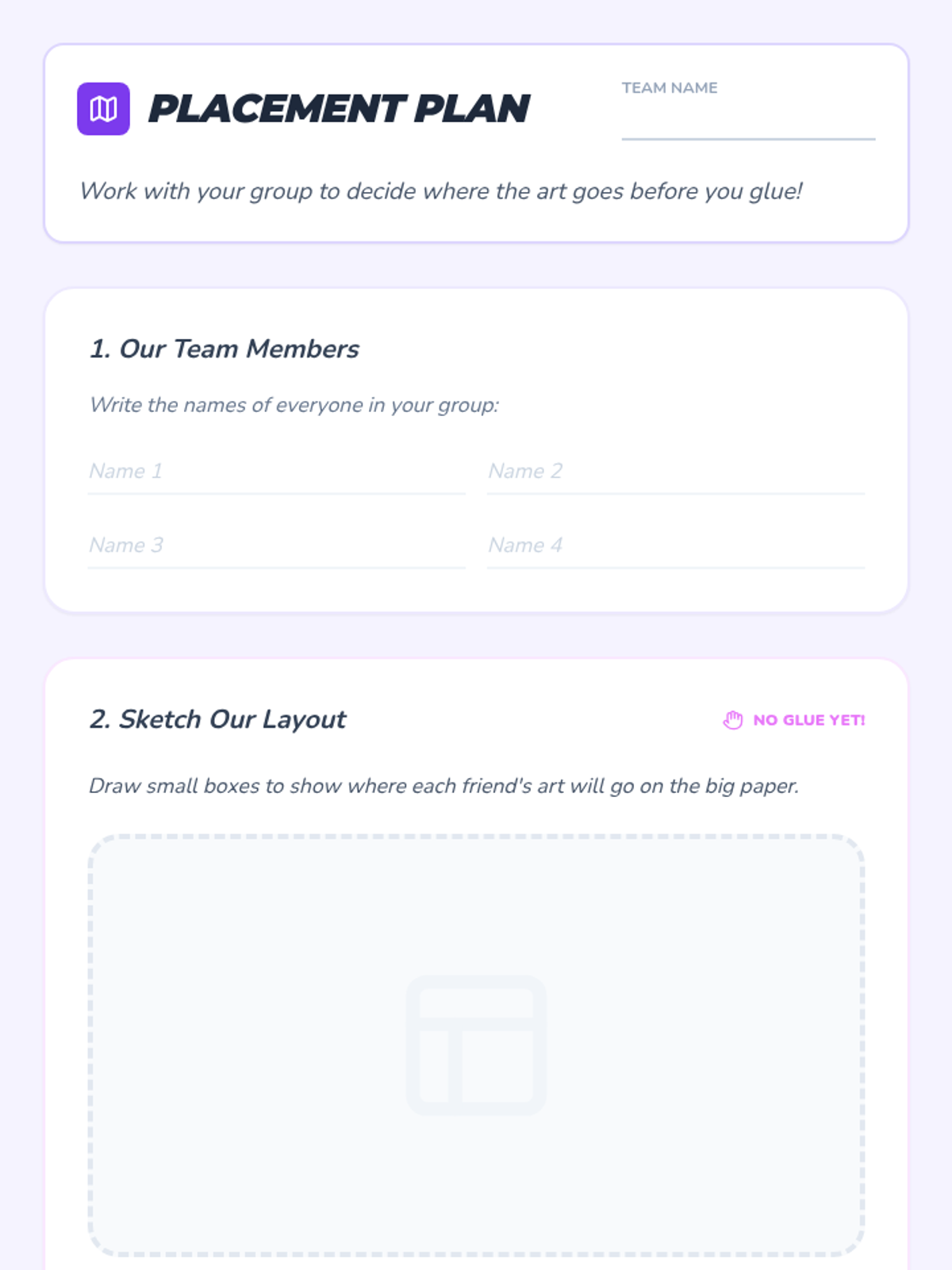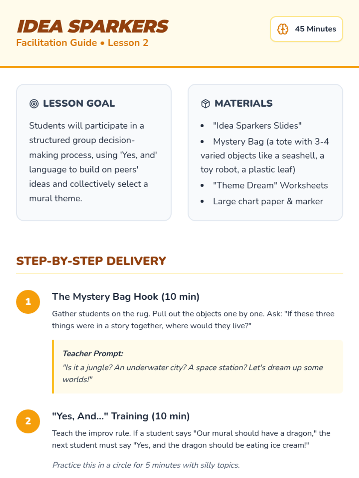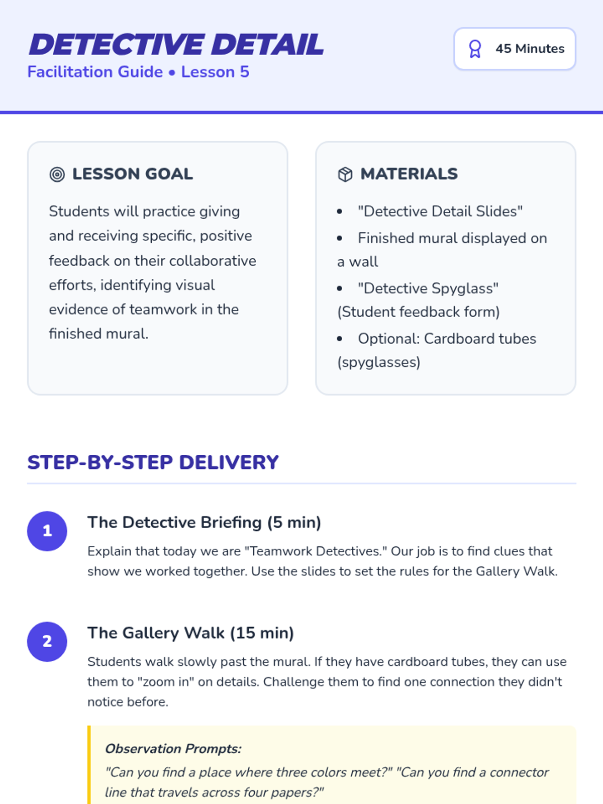 Students learn the art of collaboration by designing and assembling a large-scale class mural, focusing on sharing space, brainstorming themes, creating connectable art, and negotiating layout.