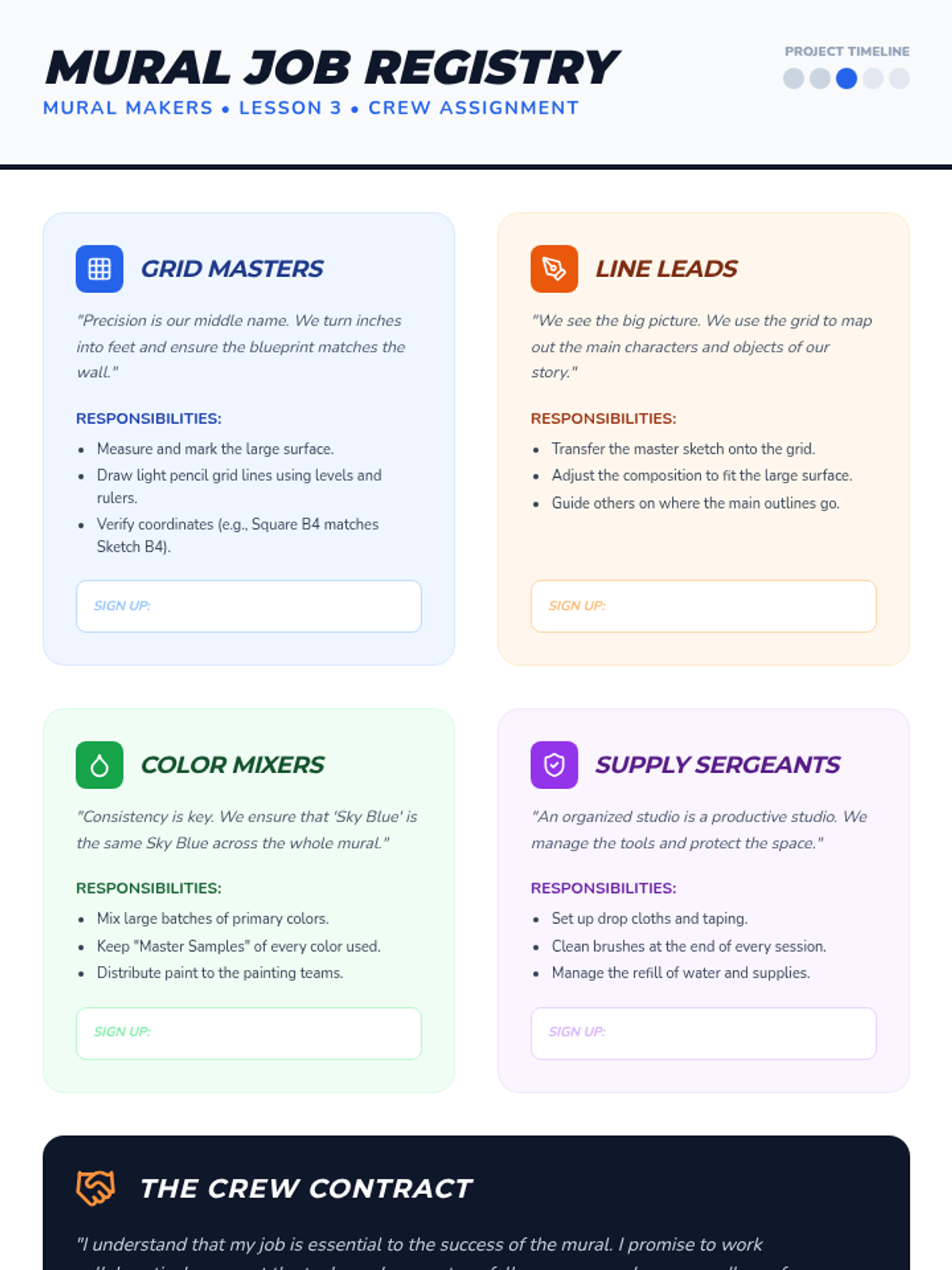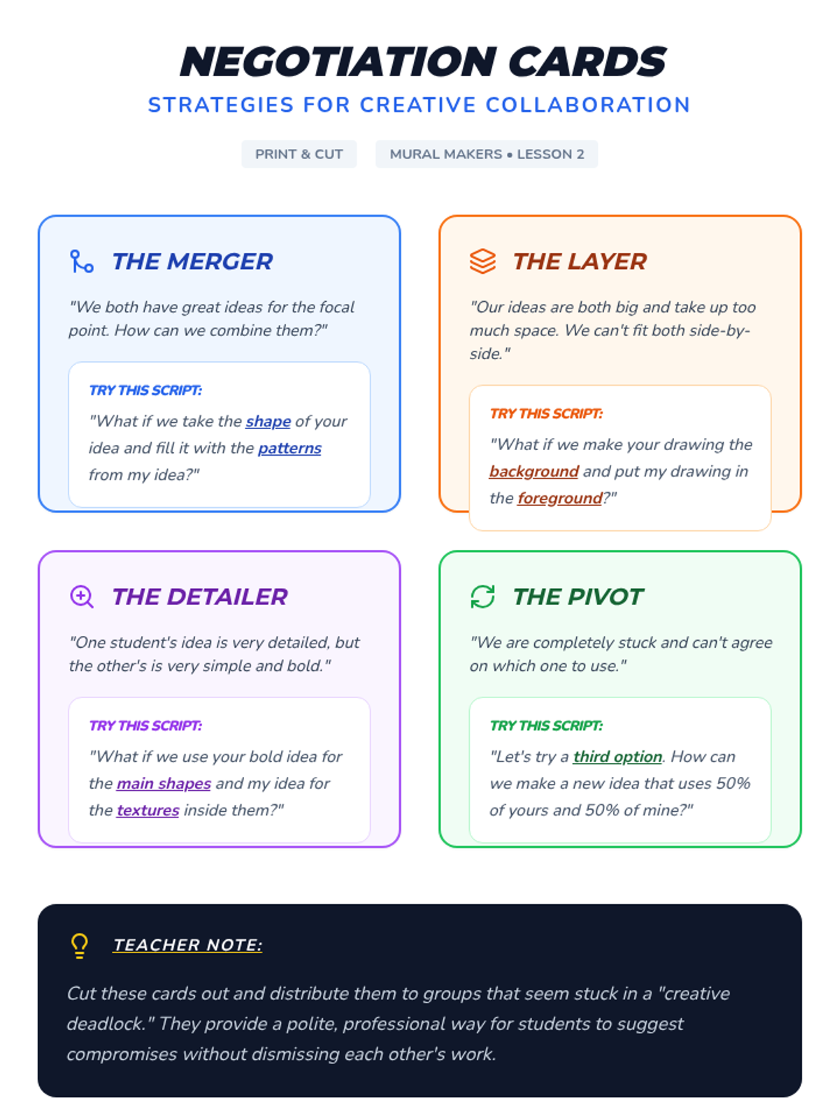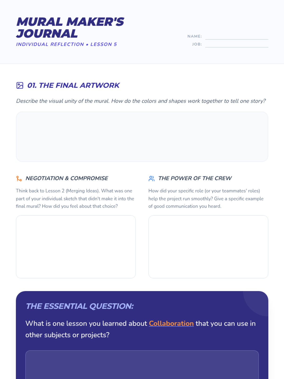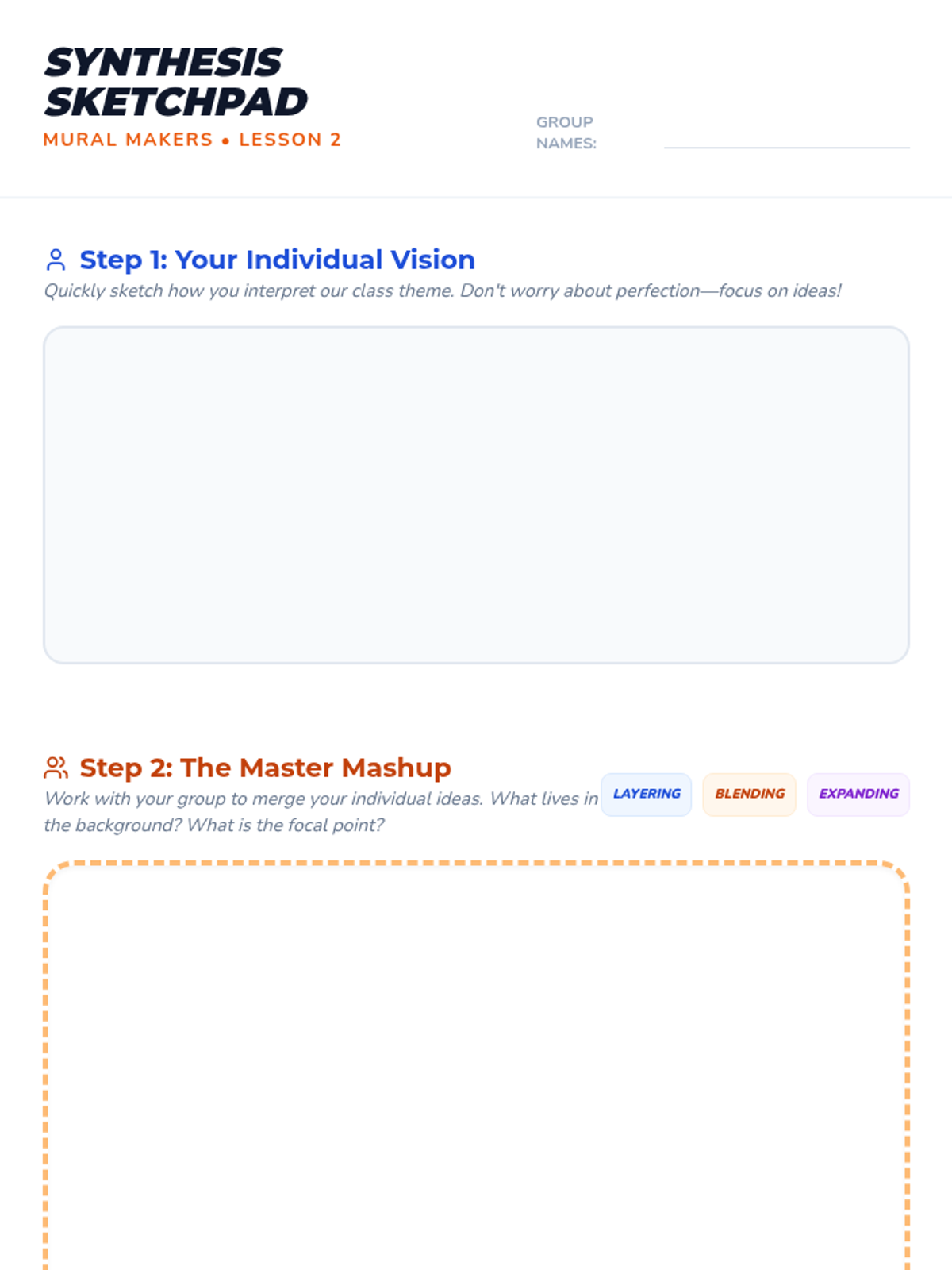 A 5-lesson sequence where students learn the art of collaboration by designing and executing a large-scale mural, moving from individual brainstorming to collective creation.