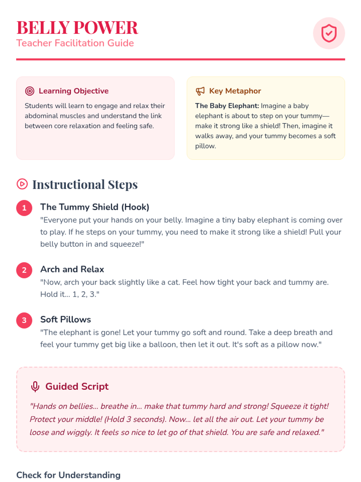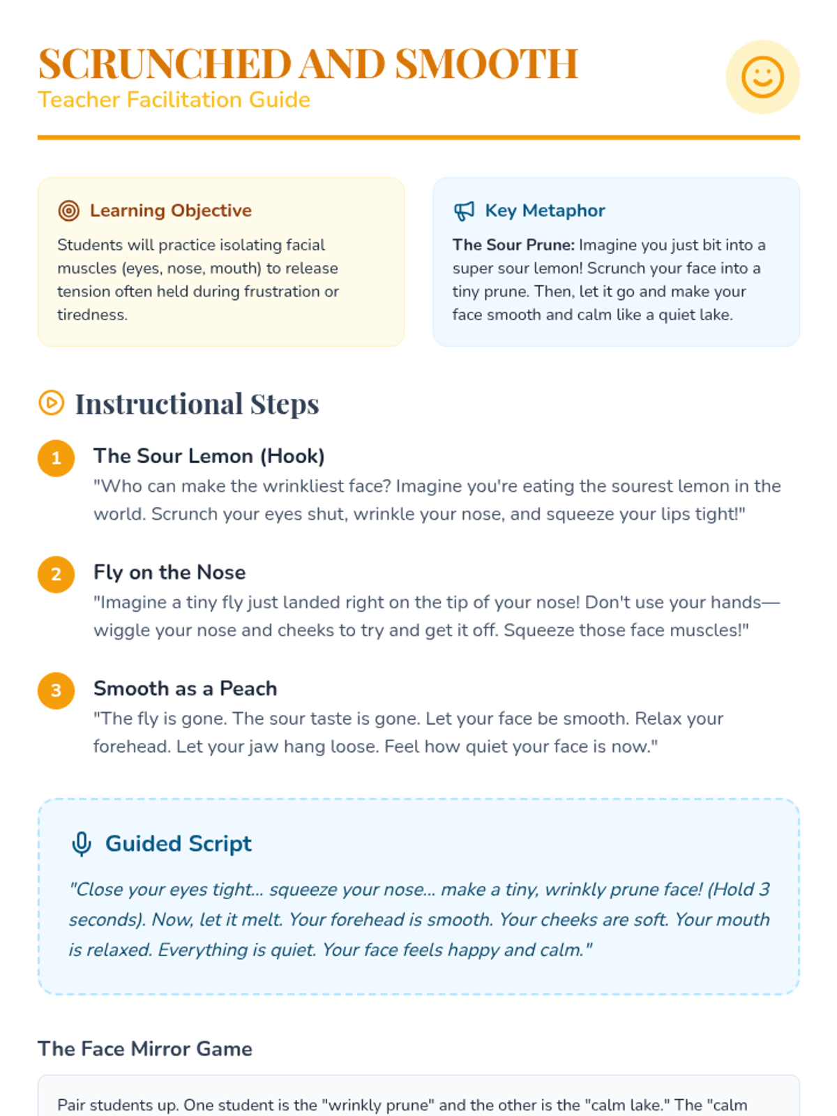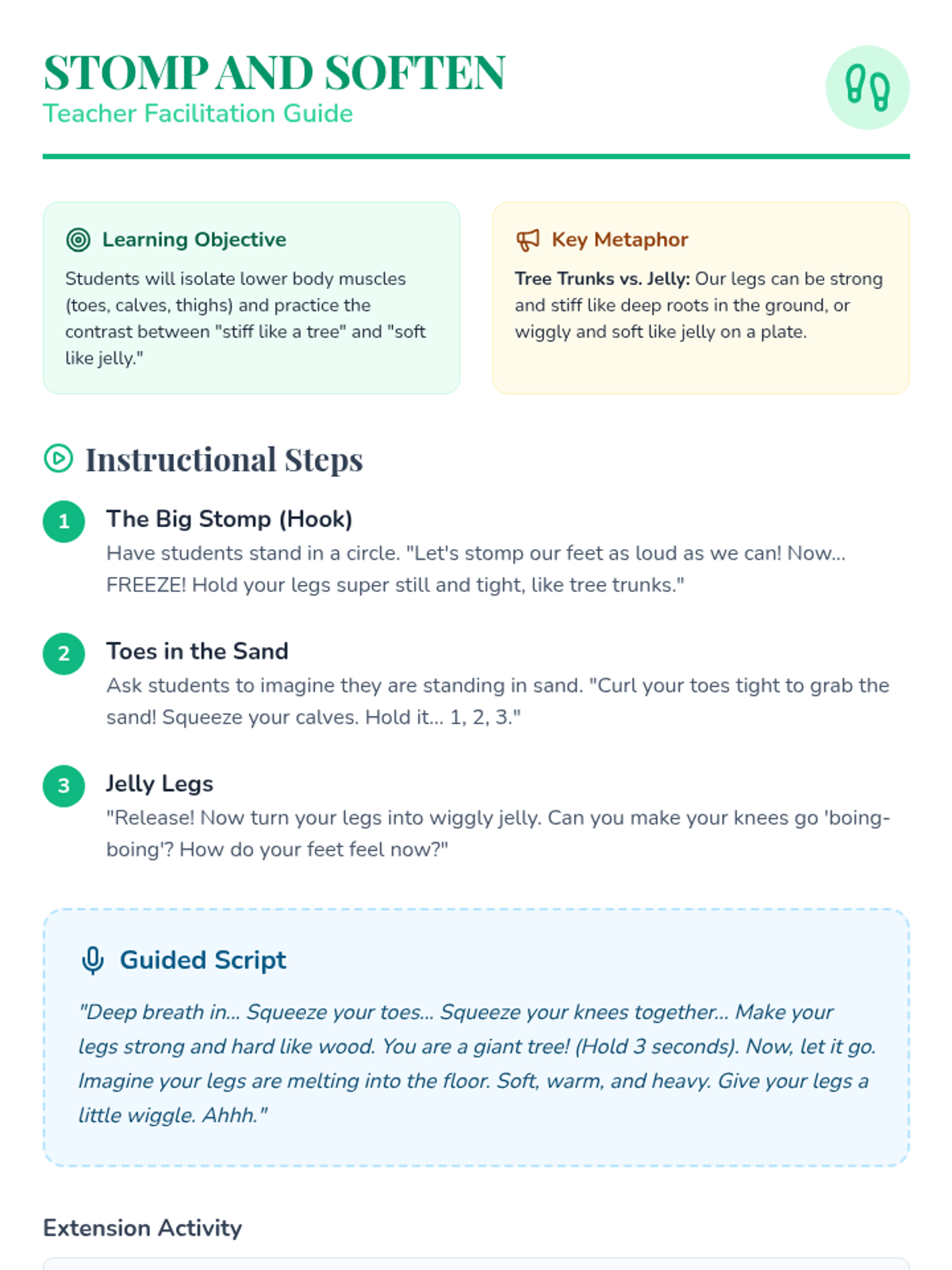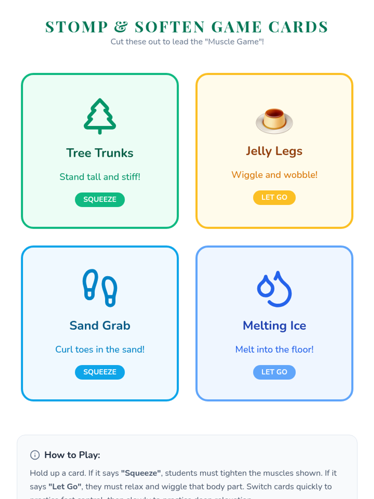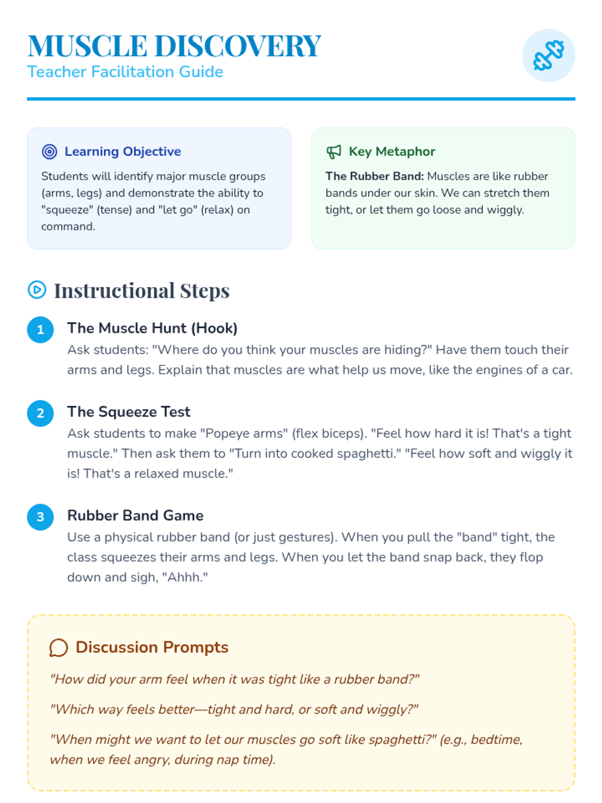 A Pre-K sequence focused on Progressive Muscle Relaxation (PMR), teaching children how to isolate and relax muscle groups from head to toe using playful metaphors and guided practice.