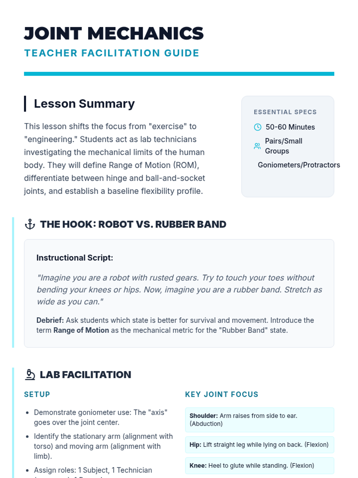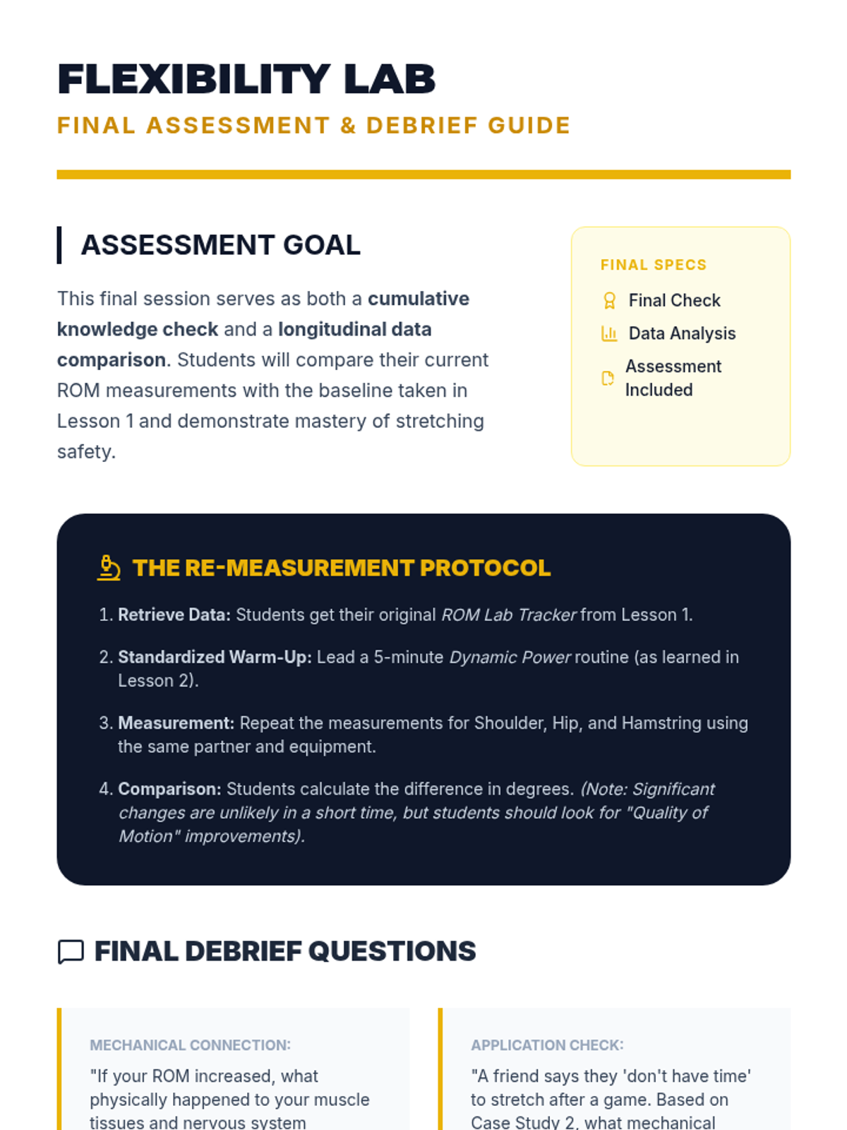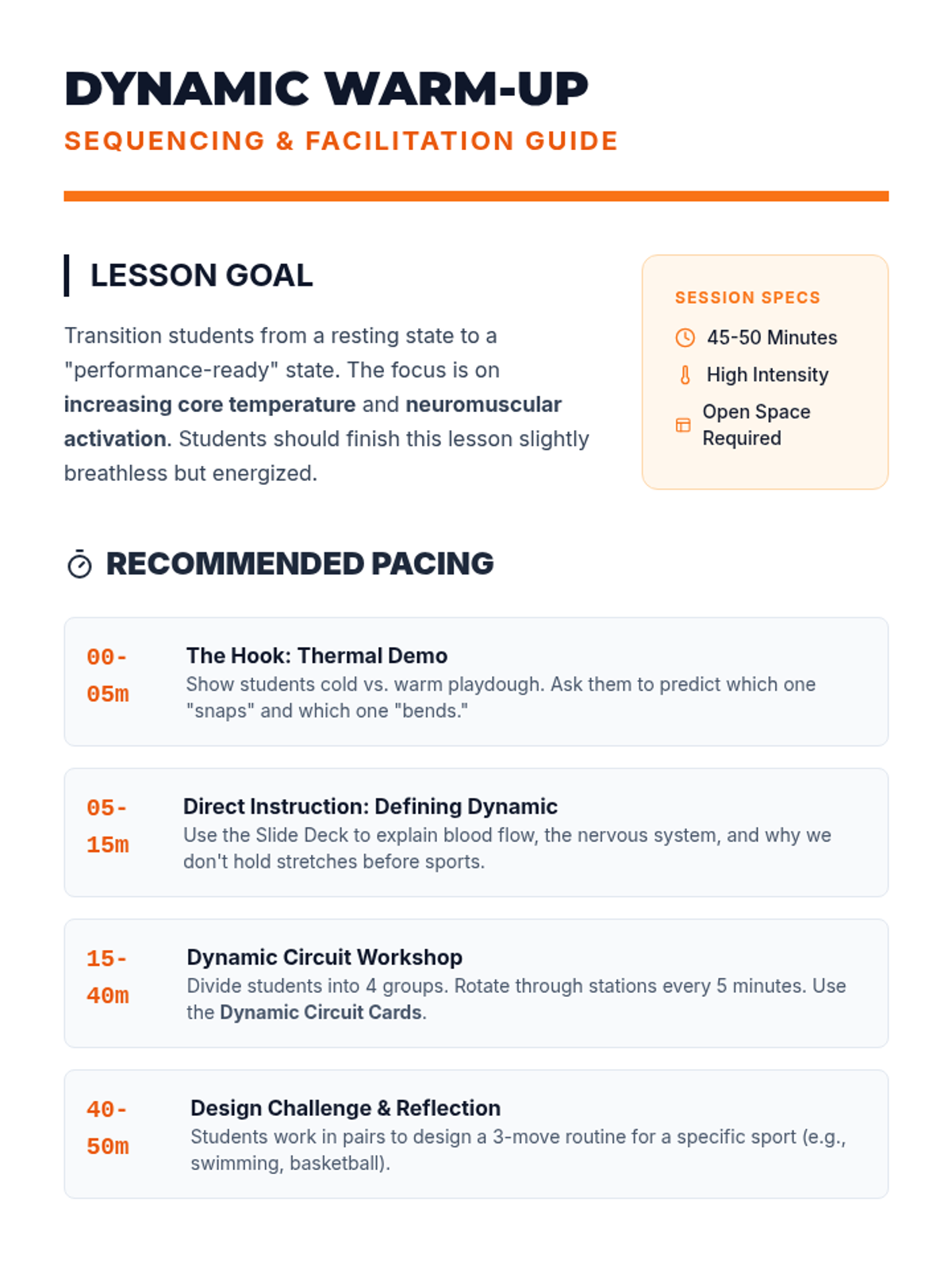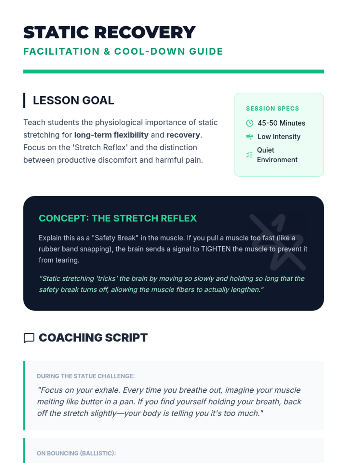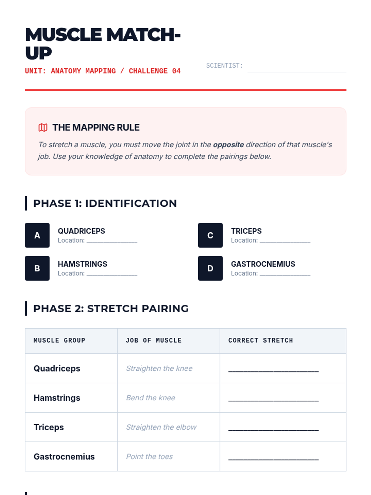 This sequence introduces 6th-grade students to the biological mechanisms of stretching, the anatomy of major muscle groups, and the critical distinction between dynamic and static stretching techniques for safety and performance.
