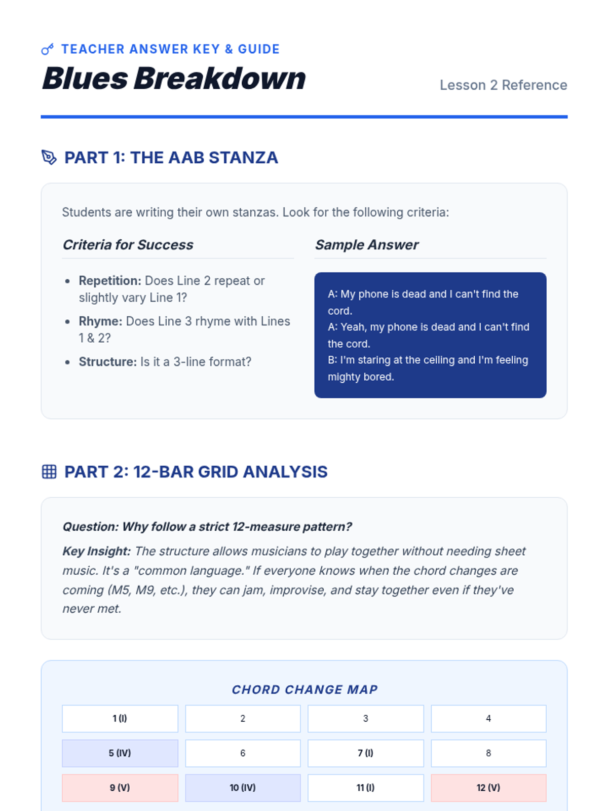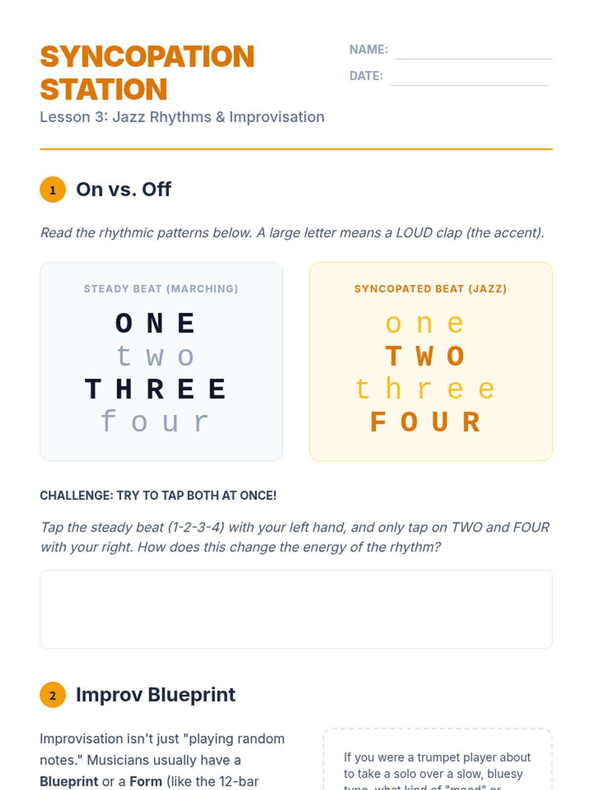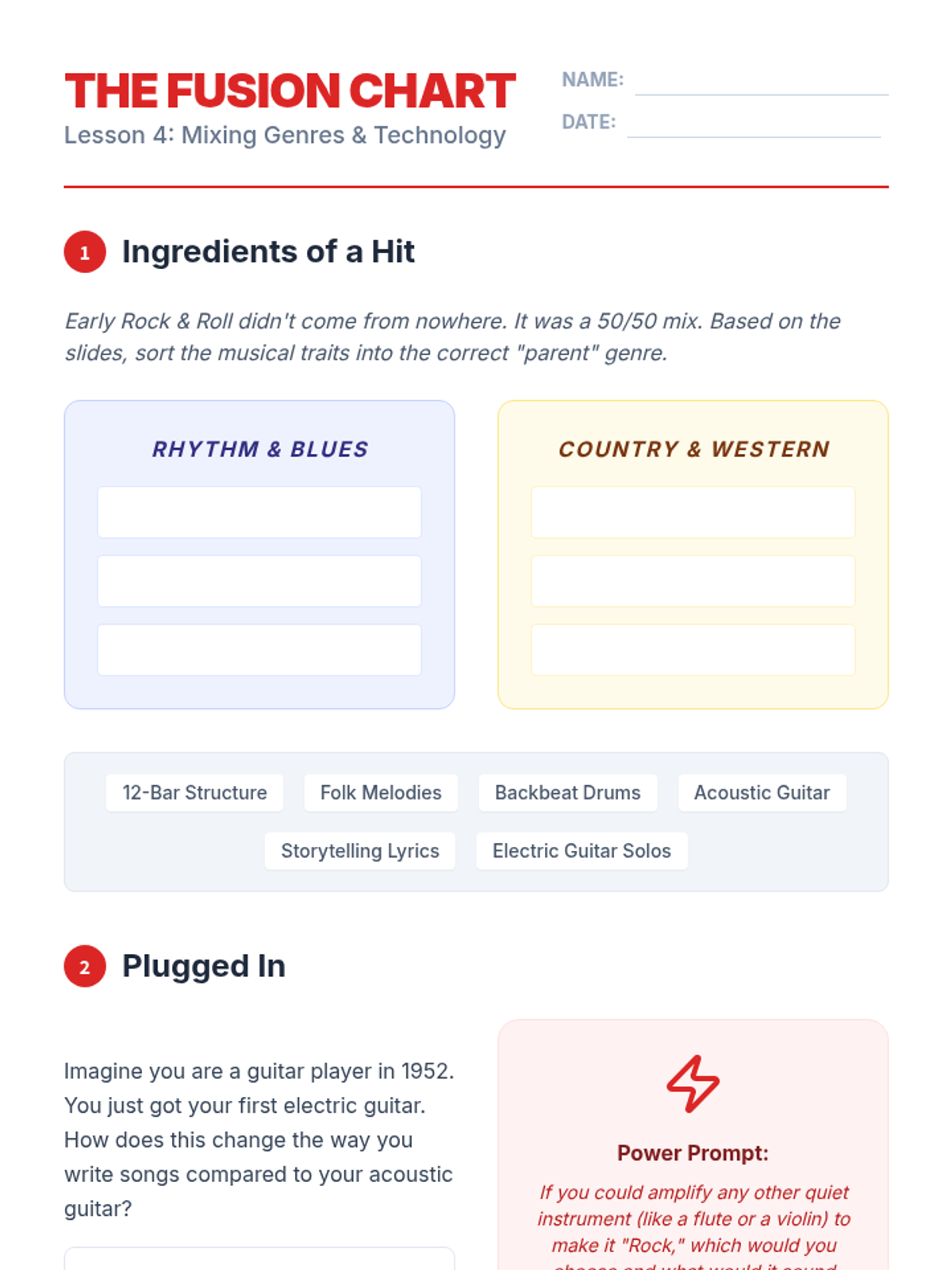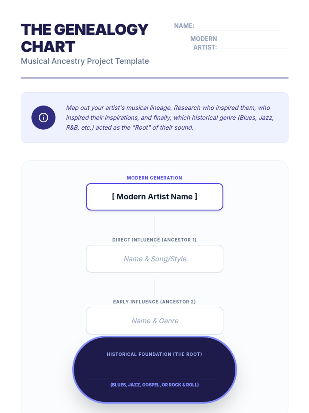 This sequence traces the evolution of contemporary music from 19th-century African American spirituals through the development of the Blues, Jazz, and Rock & Roll. Students investigate how cultural exchange, technology, and social struggles shaped the sounds we listen to today, culminating in a musical genealogy project.
