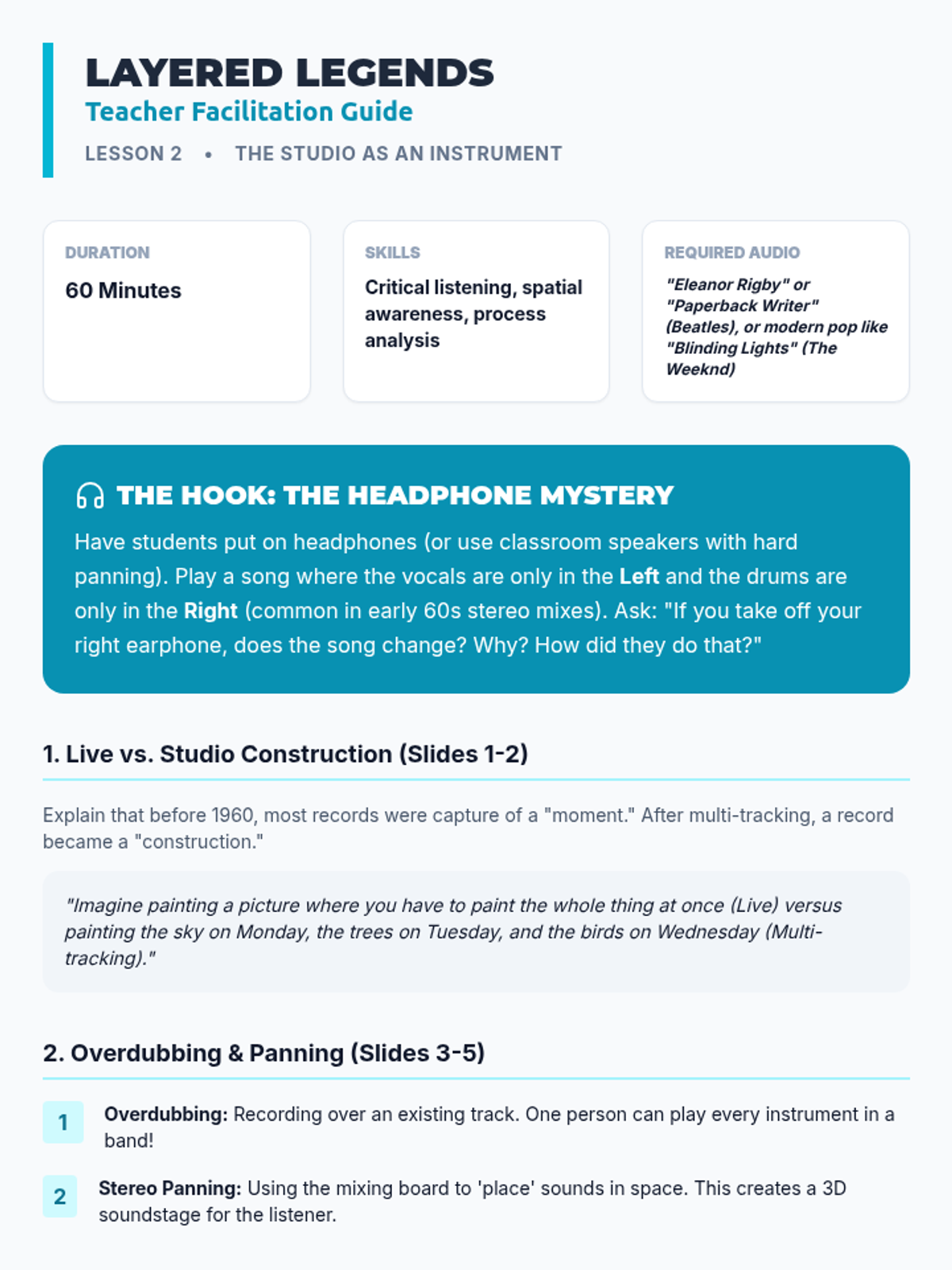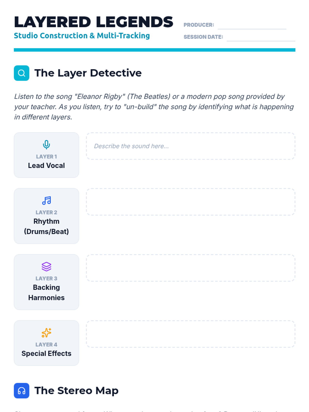 This sequence investigates how the technological explosion of the 20th and 21st centuries, from the electric guitar to AI, redefined music genres and creation. Students analyze production techniques, listen for layers, and explore the concept of technology as a musical instrument.