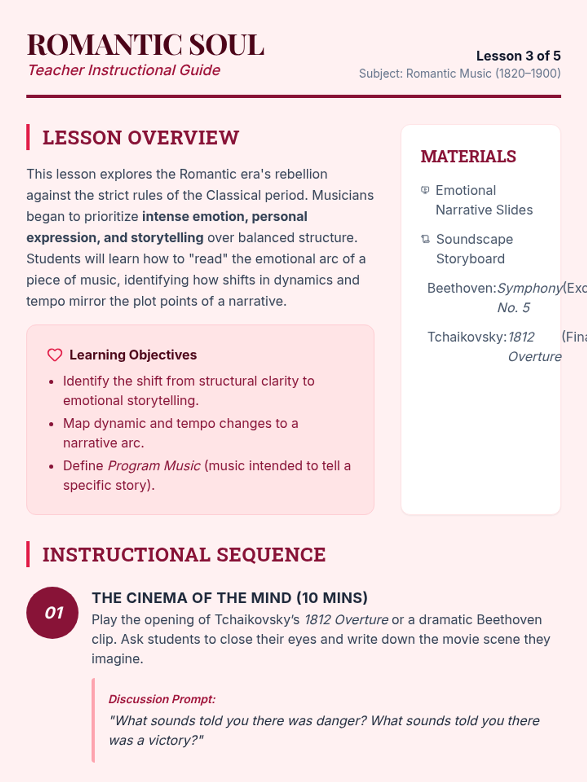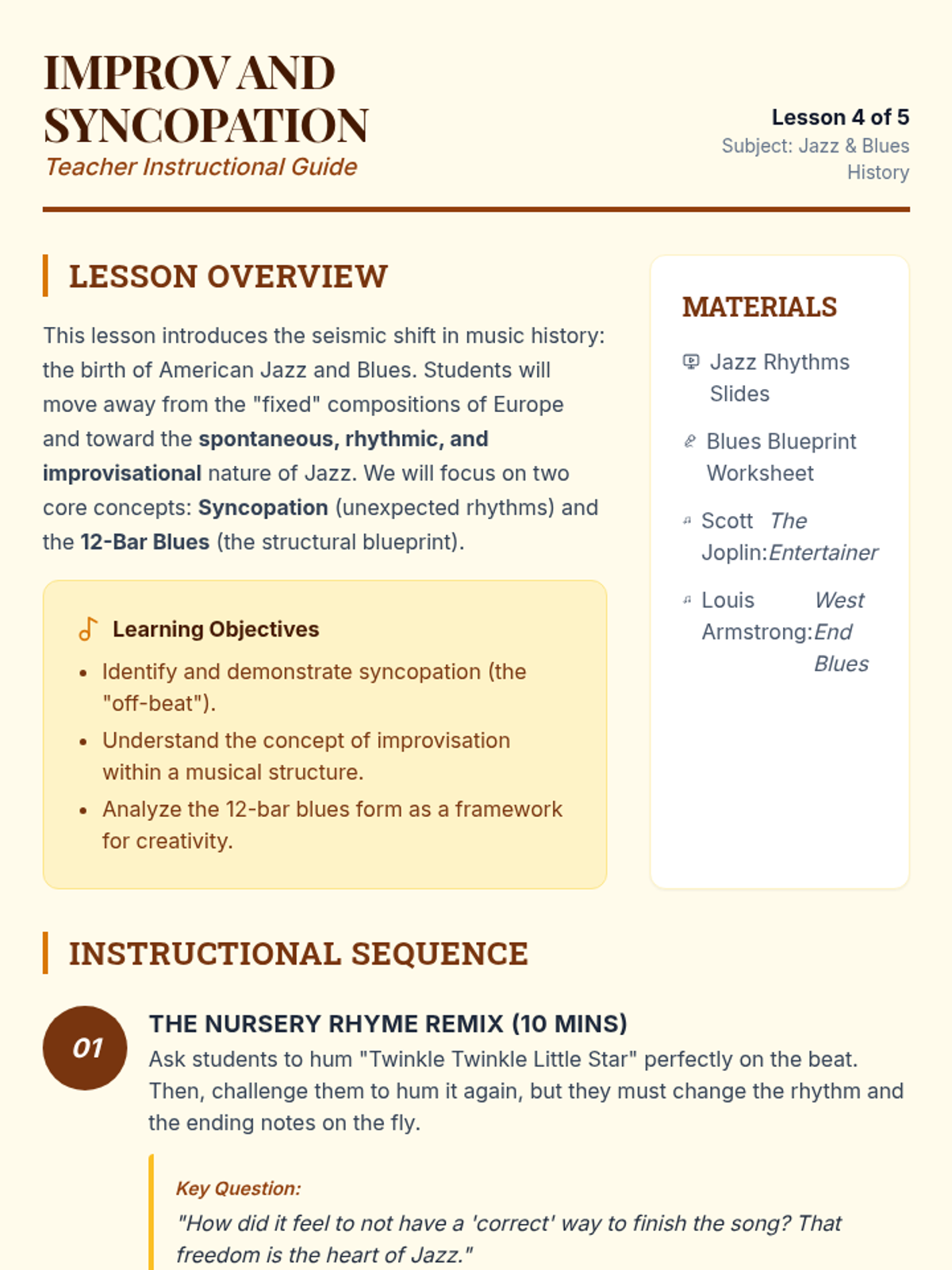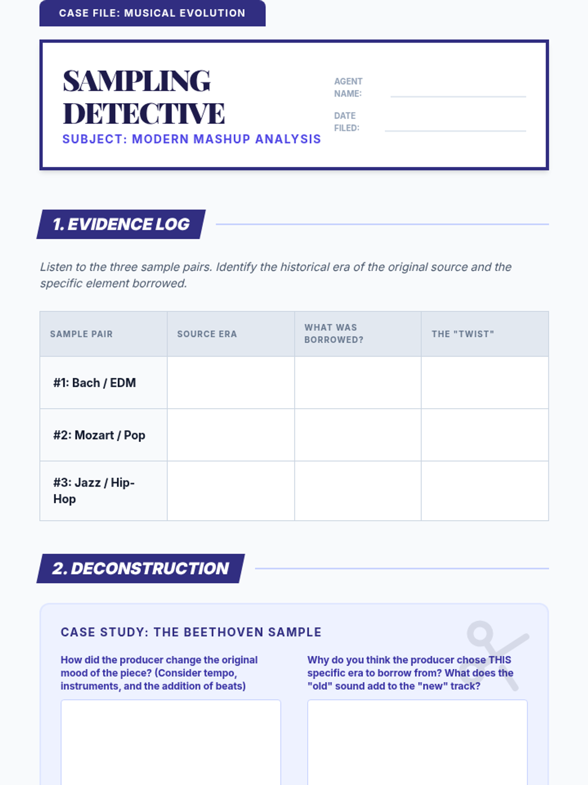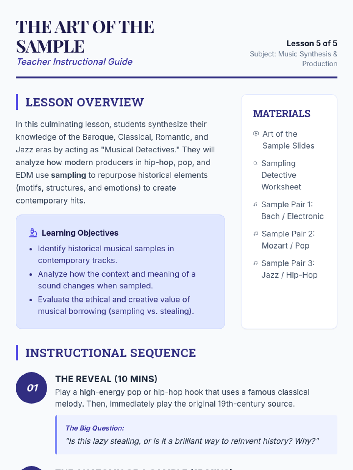 A chronological exploration of Western music history for 7th-grade students, connecting the innovations of the Baroque, Classical, Romantic, and Jazz eras to modern sampling and production techniques. Students develop critical listening skills and analyze how historical structures influence contemporary genres like pop, hip-hop, and EDM.
