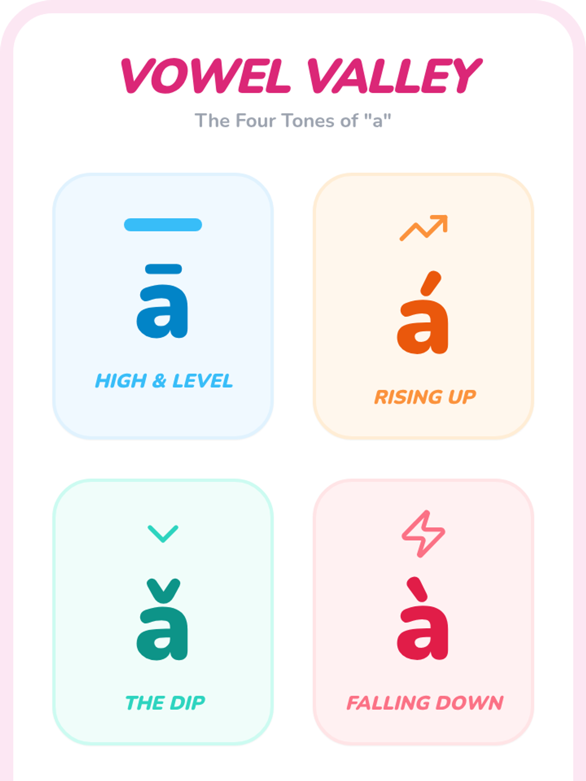 A physical and auditory introduction to the four Mandarin tones for Pre-K learners, using movement, animal analogies, and games to make pitch concrete.