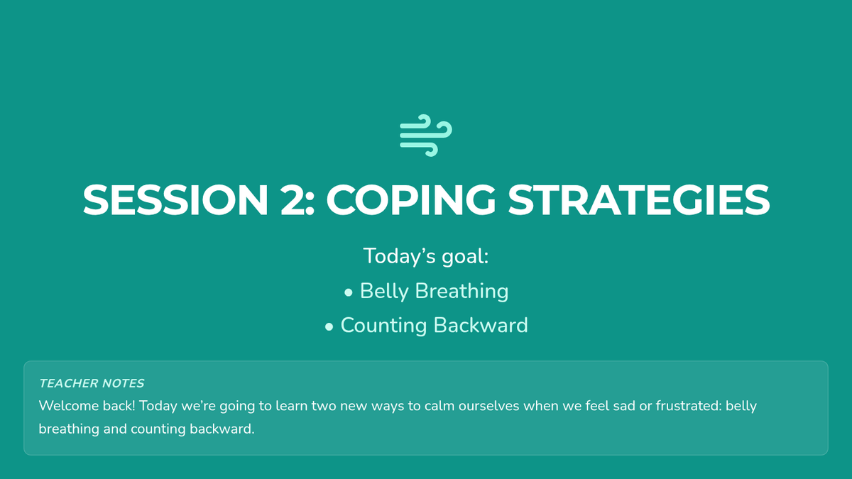 An 8-week social-emotional learning curriculum designed for 20-minute sessions. Students learn to identify, categorize, and apply coping skills through a blueprint-inspired framework of self-regulation.