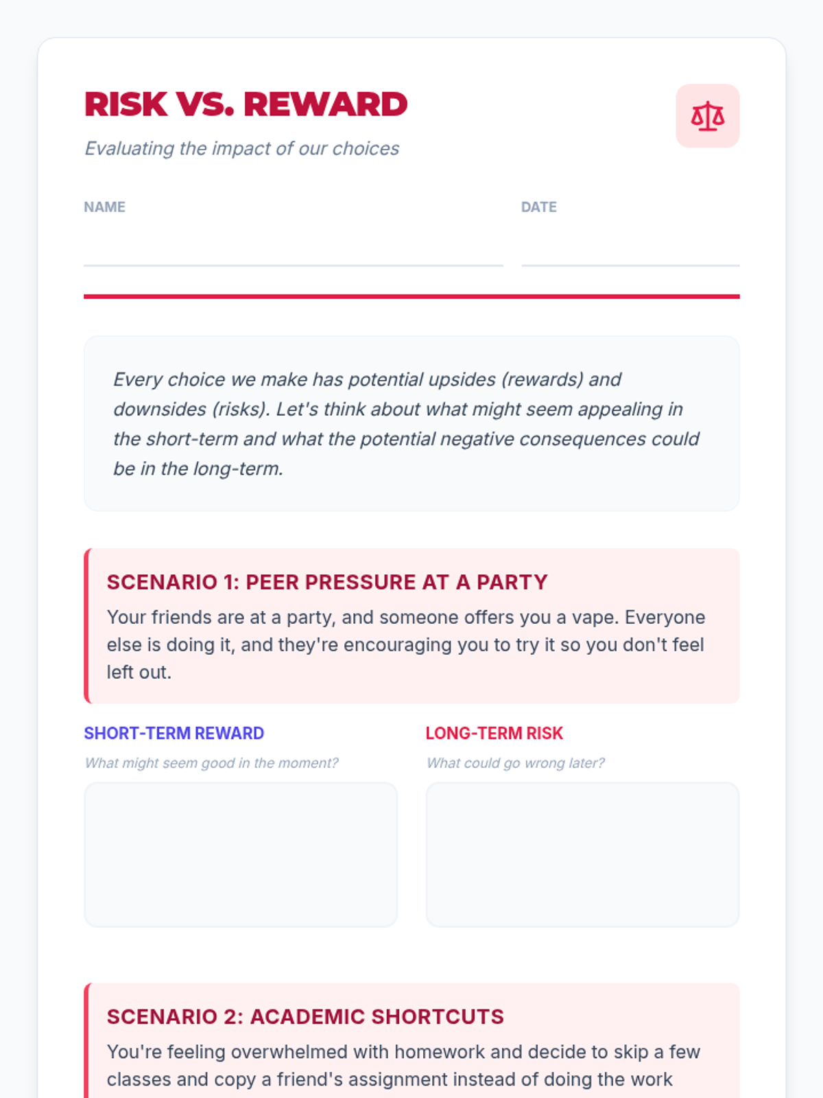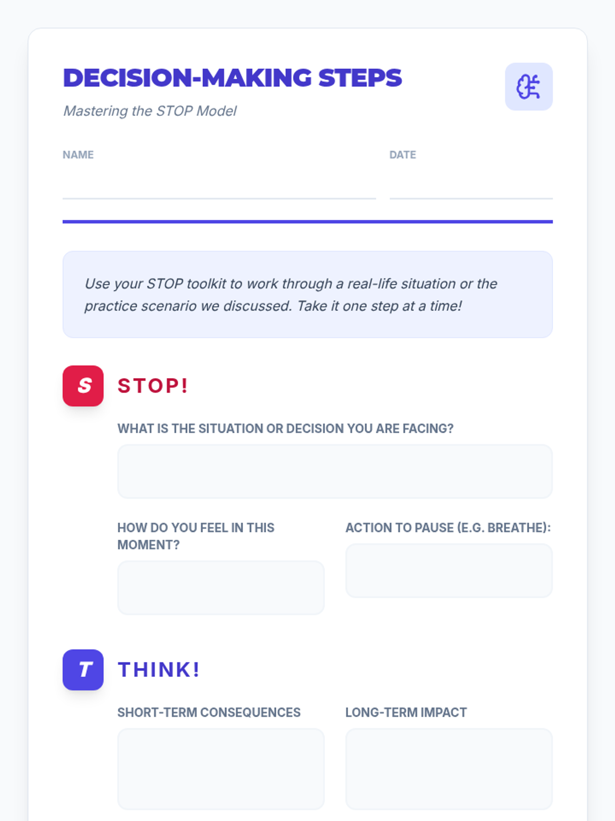 A high-impact 5-lesson sequence designed for credit-deficient high school sophomores to reclaim their academic path. The curriculum reframes impulse control as a strategic 'power move' for achieving independence, career success, and graduation through cognitive discipline and environmental awareness.