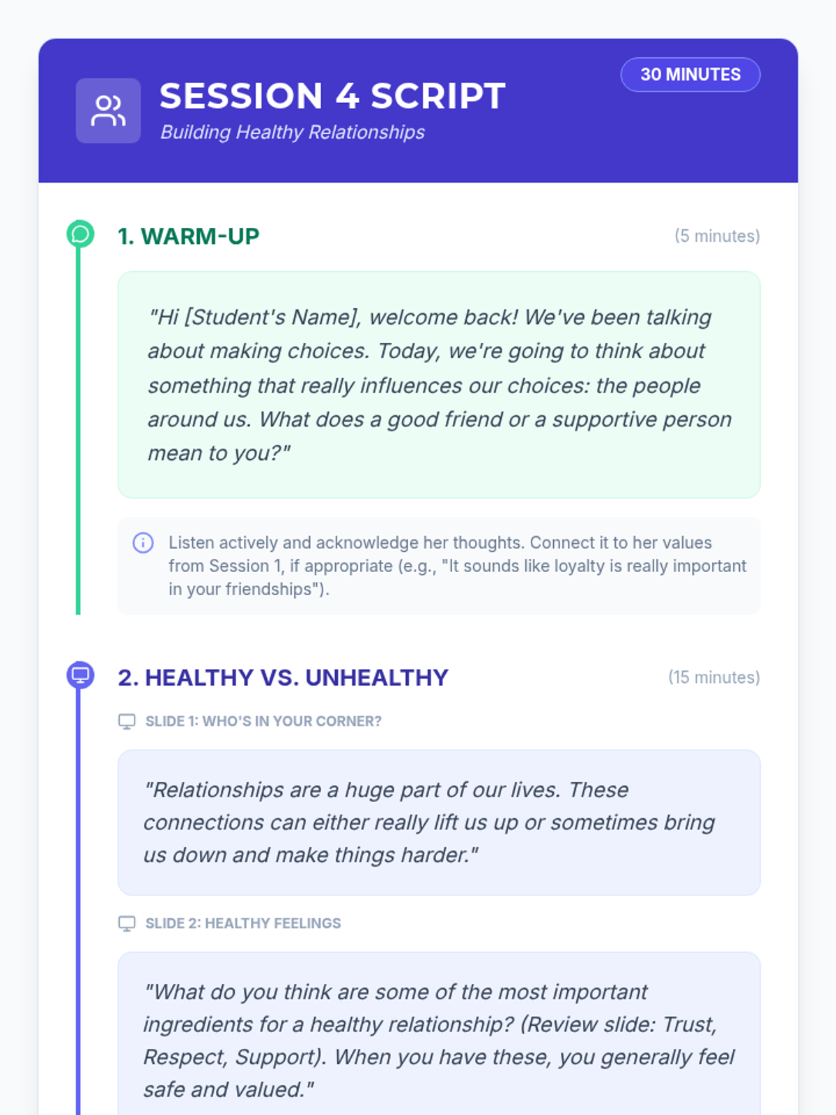 A comprehensive 20-week mentorship program designed to help students navigate social environments, build meaningful friendships, and master communication.