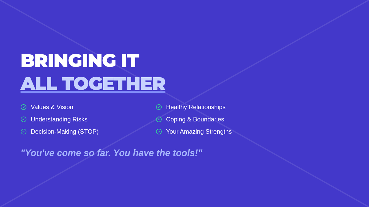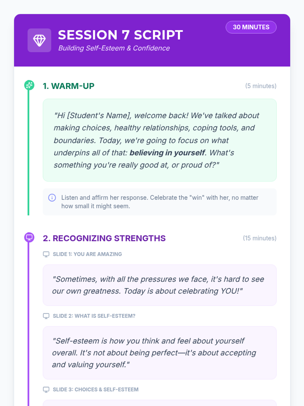 A comprehensive 10-week mentorship journey designed to build confidence, resilience, and problem-solving skills through collaborative activities and deep discussion.