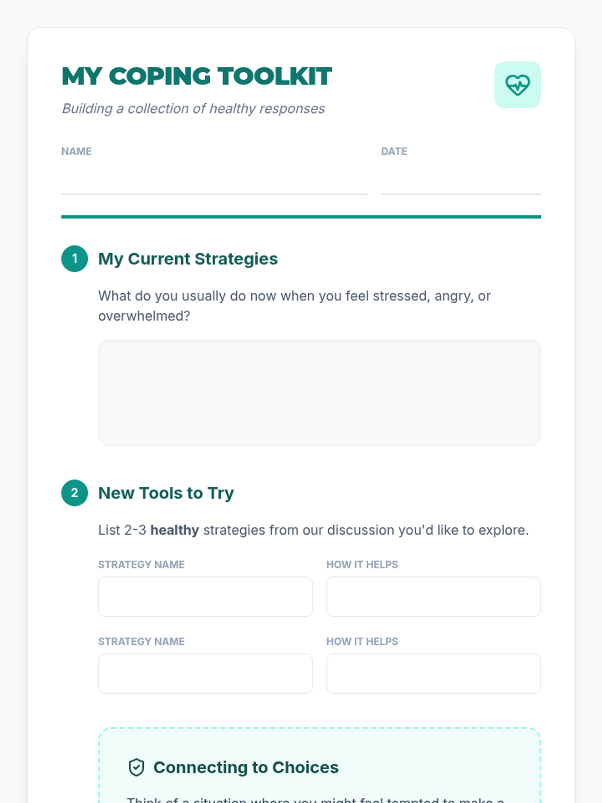 A 4-session small group counseling program for high school girls focused on identifying anxiety triggers, practicing mindfulness, and developing a personalized toolkit of coping strategies. The sequence emphasizes peer support, empowerment, and practical application within the school environment.