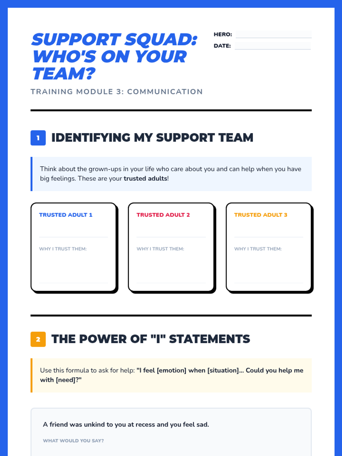 A multi-day social-emotional learning sequence that teaches students how to identify, manage, and communicate difficult emotions like anger and conflict using the metaphor of an 'Emotional Backpack'. Designed with high-visual support for EAL and neurodivergent learners.