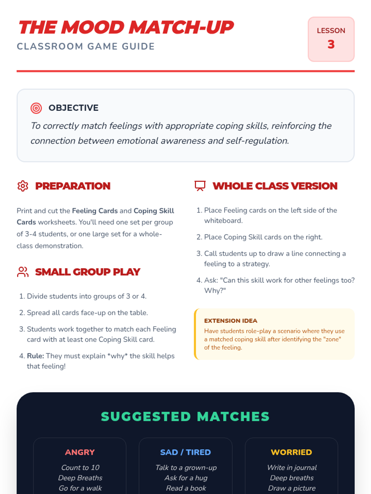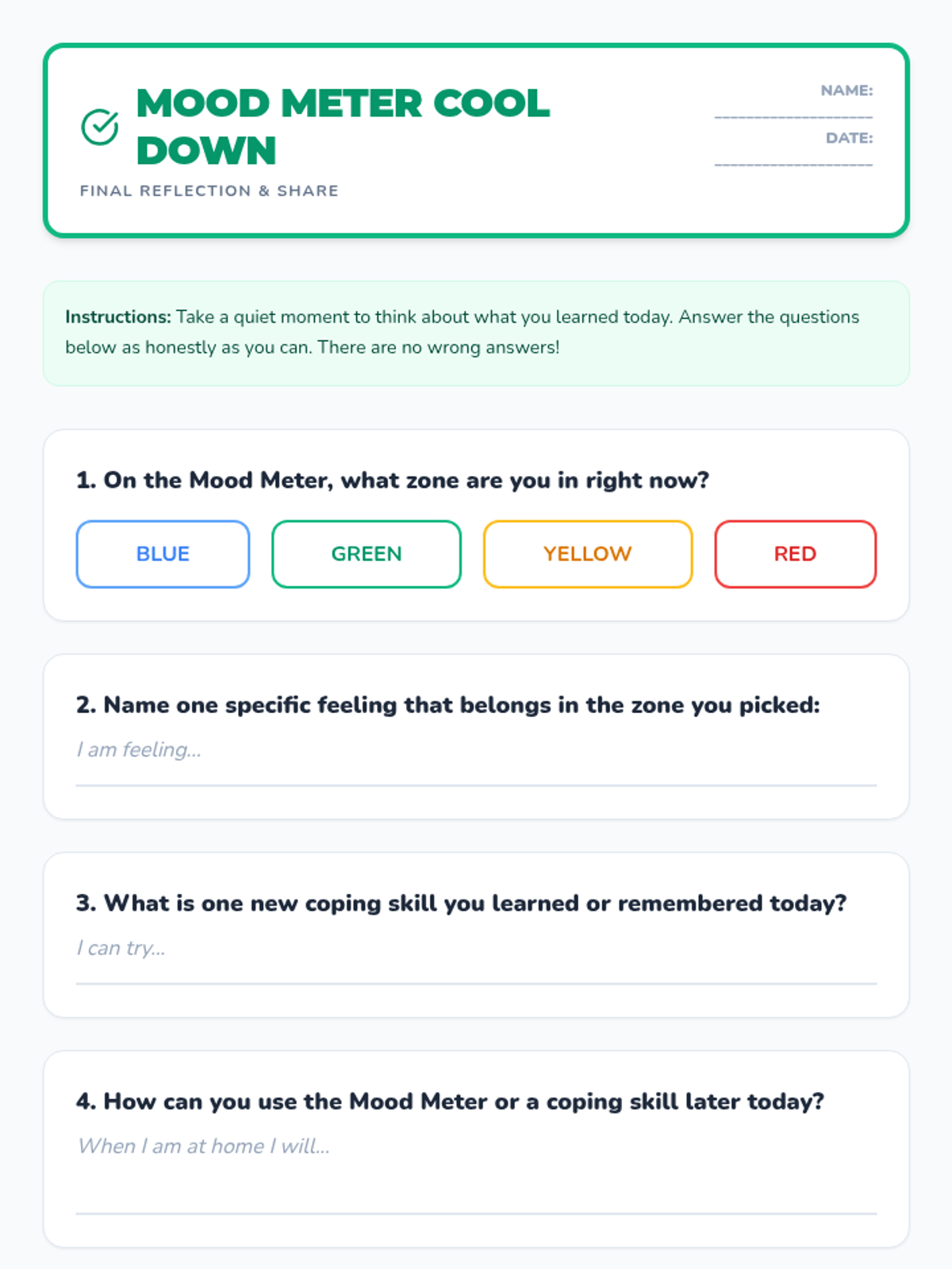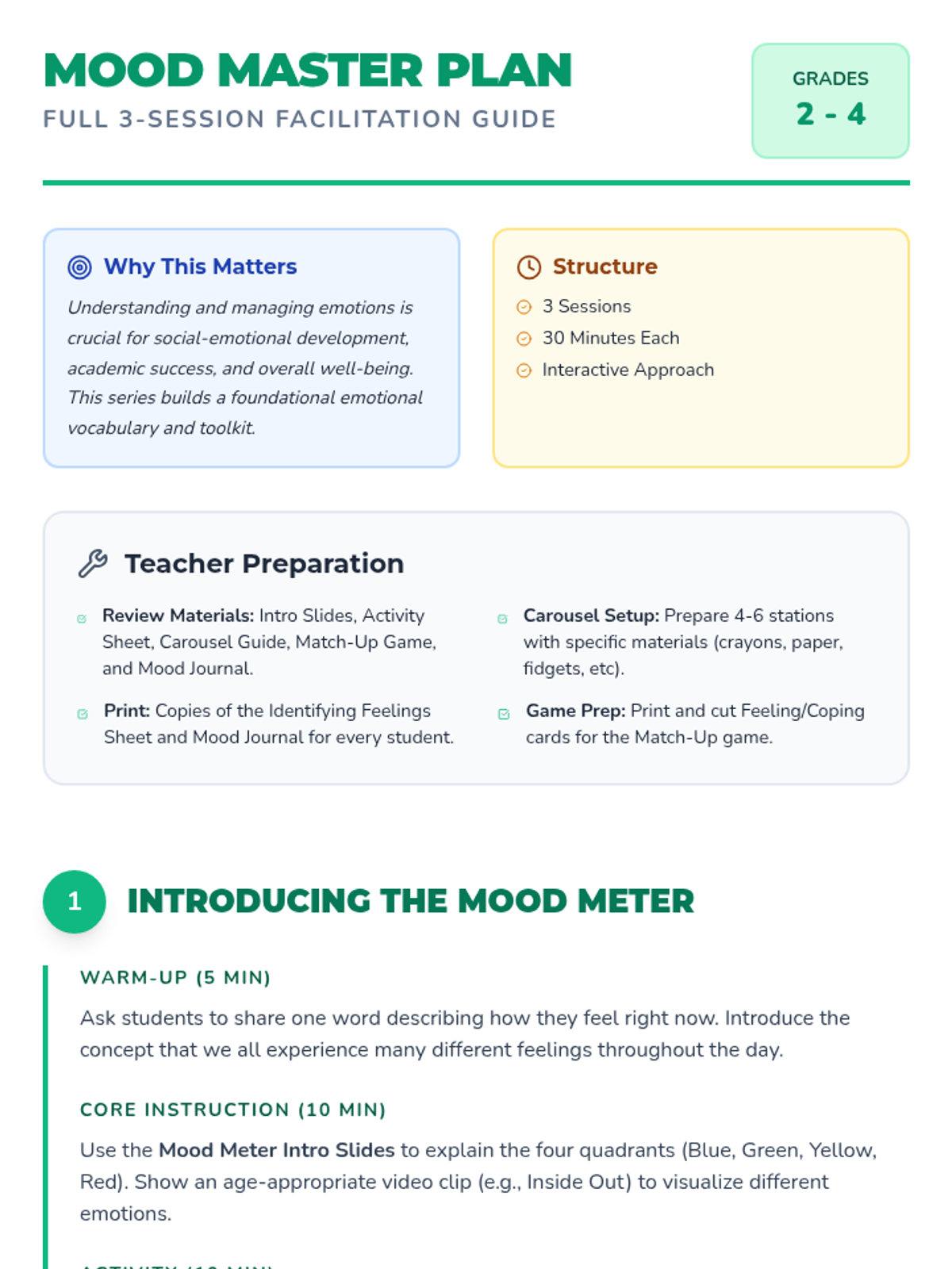 A 3-part social-emotional learning series for 2nd-4th graders focused on emotional literacy and regulation using the Mood Meter framework.