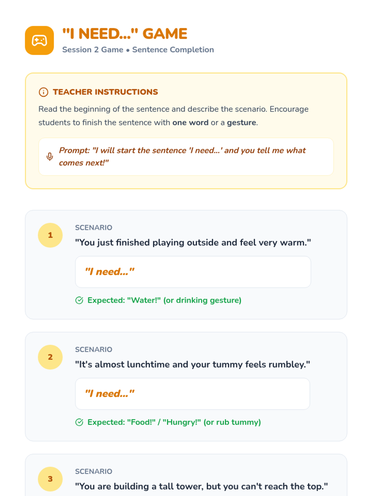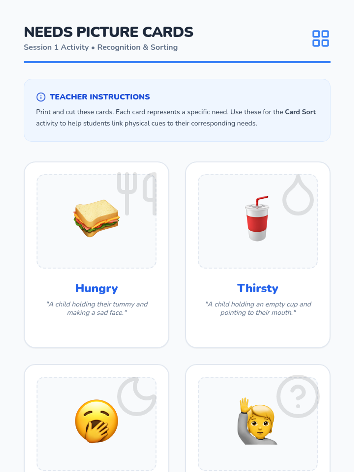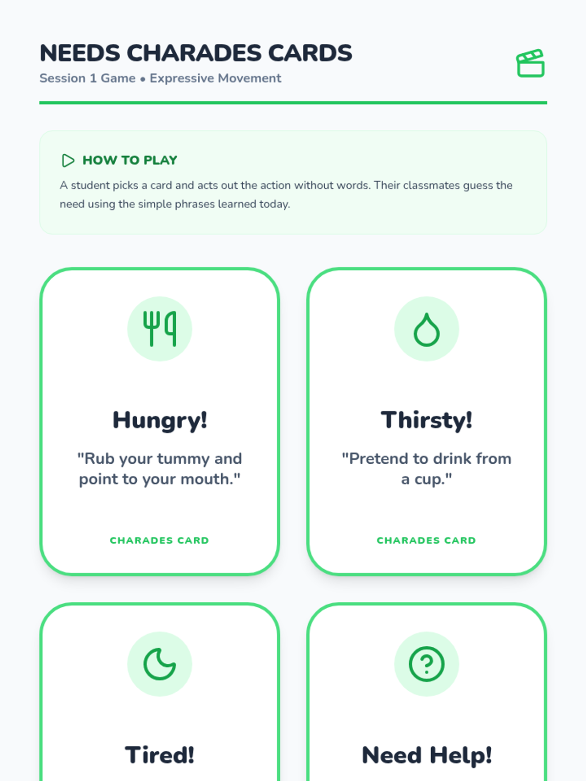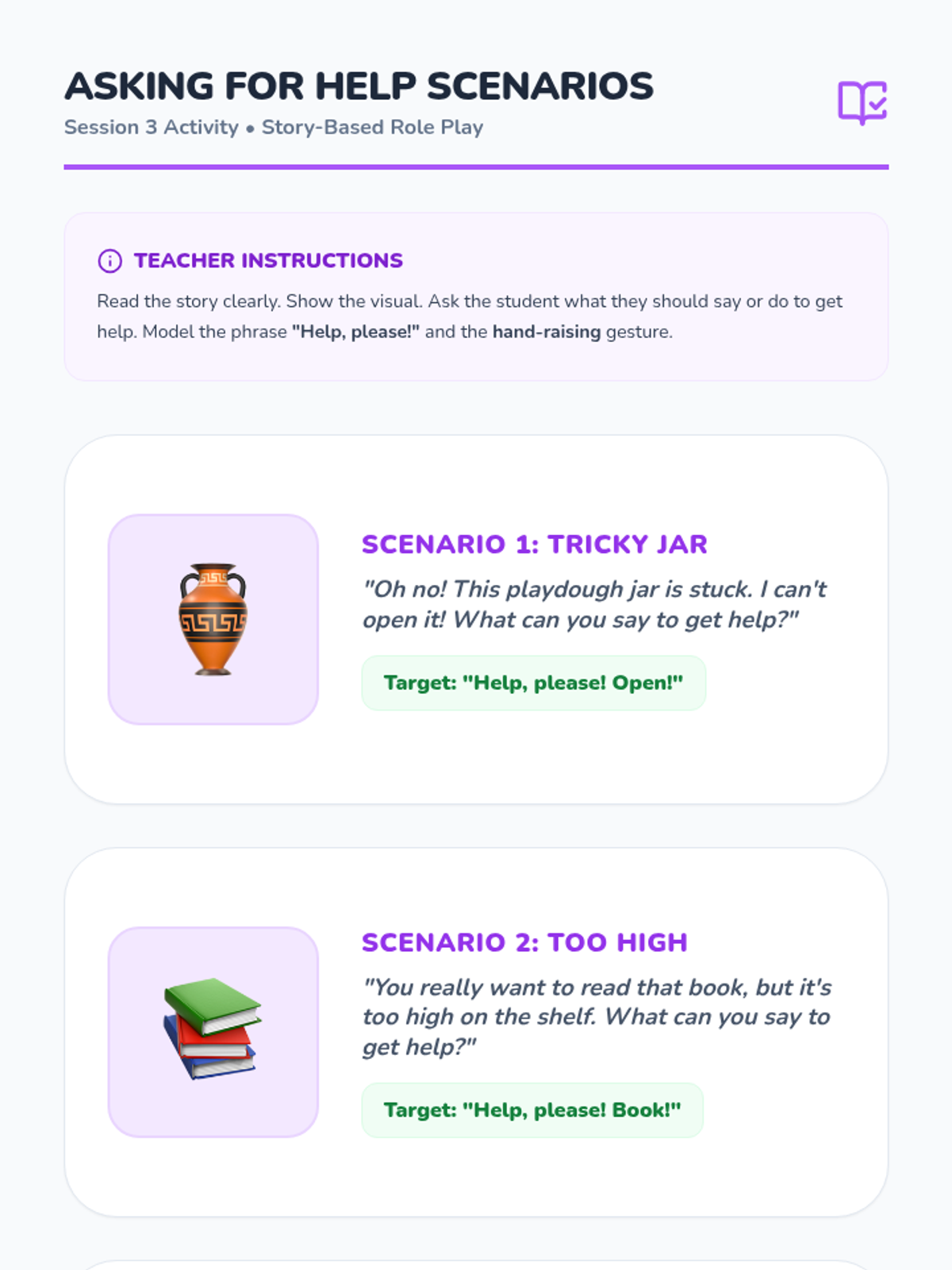 A five-session Tier 2 intervention designed for kindergarten students to improve receptive and expressive language by learning to communicate basic needs, feelings, and requests for help.