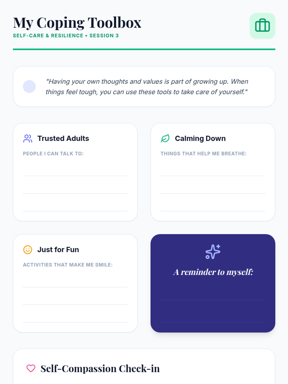 A three-part mentoring sequence blending Social Studies concepts (geography, citizenship, history) with ELSA principles to build emotional literacy, social skills, and resilience. Designed for short 30-minute sessions with minimal prep.