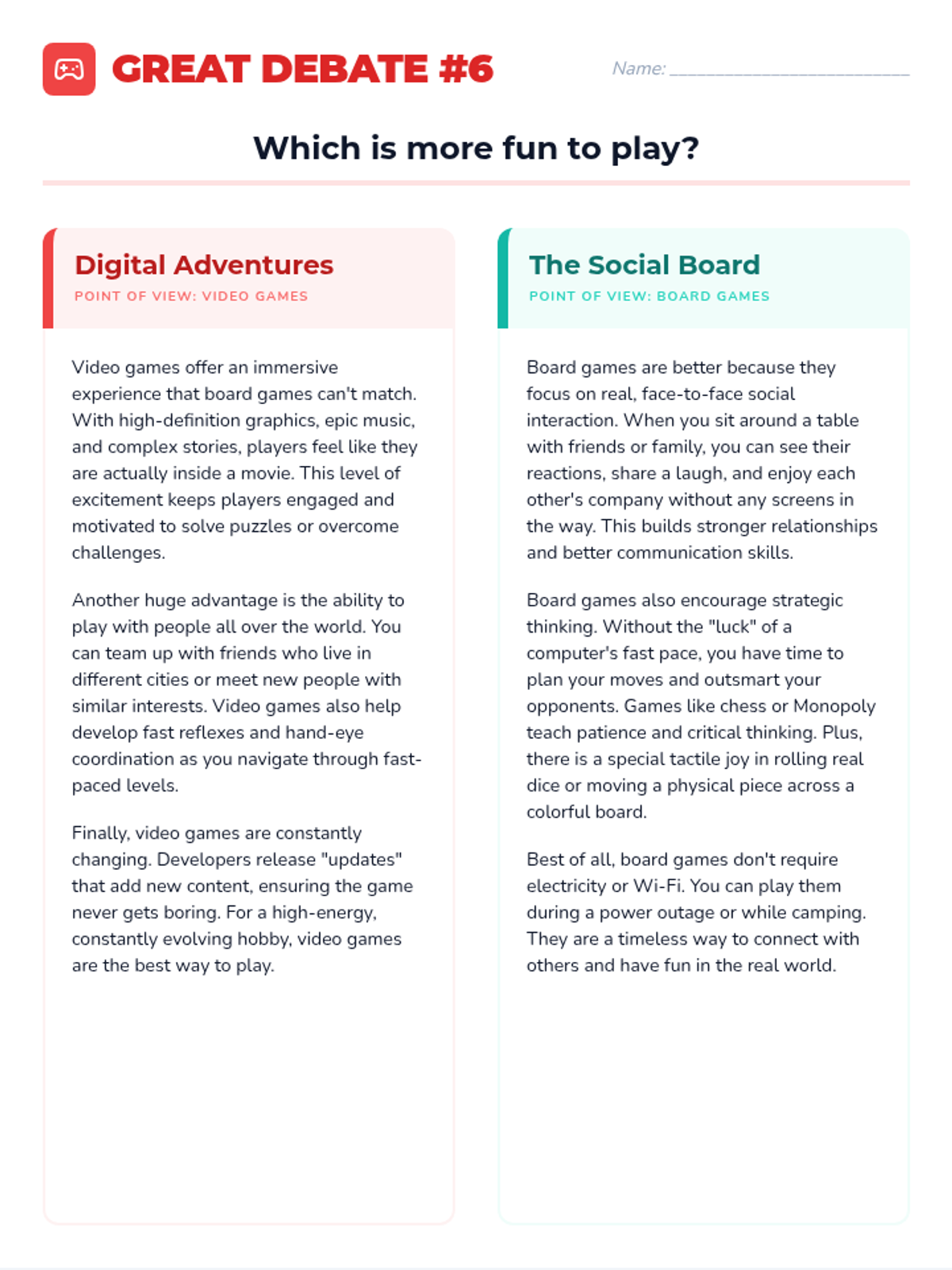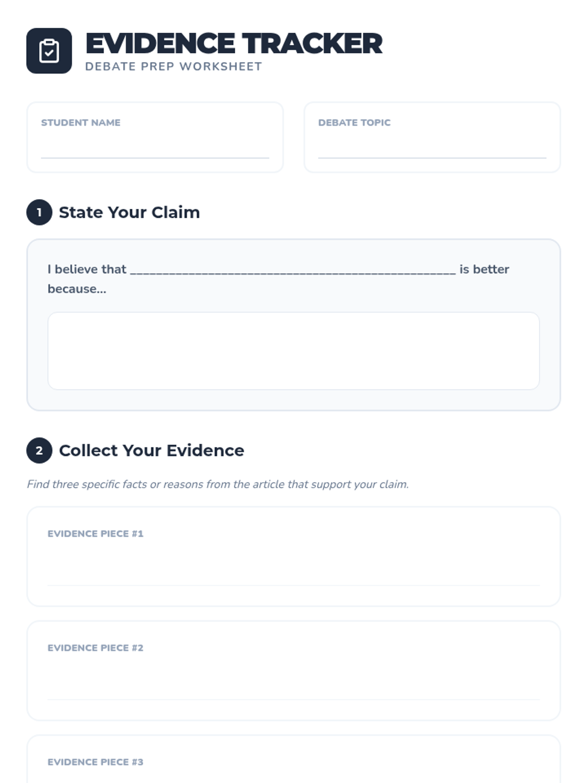 A comprehensive collection of short, paired articles designed for student debates. Each topic features two opposing viewpoints to help students practice identifying and using text evidence in their arguments.