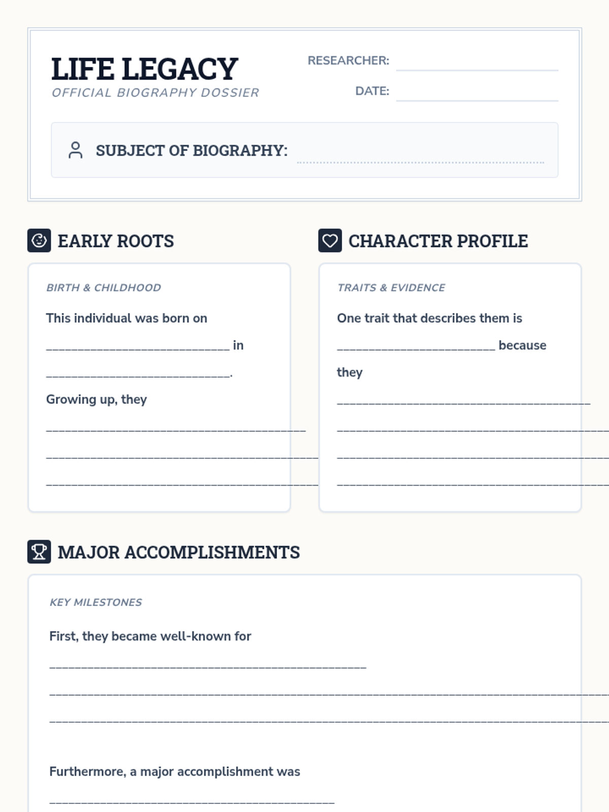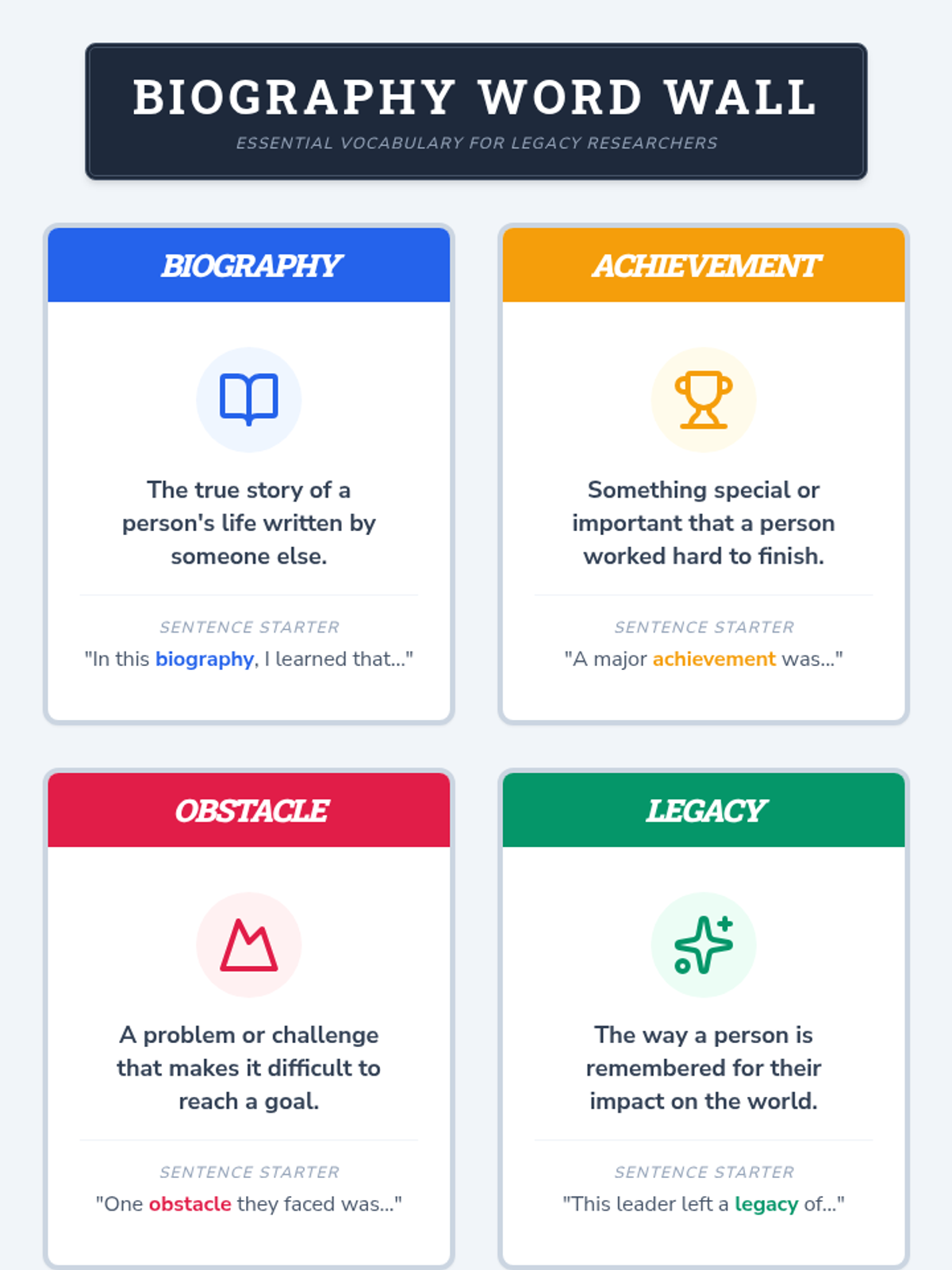 A collection of 5th-grade ELA and Grammar resources focusing on biographical research, summary writing, and language mastery.