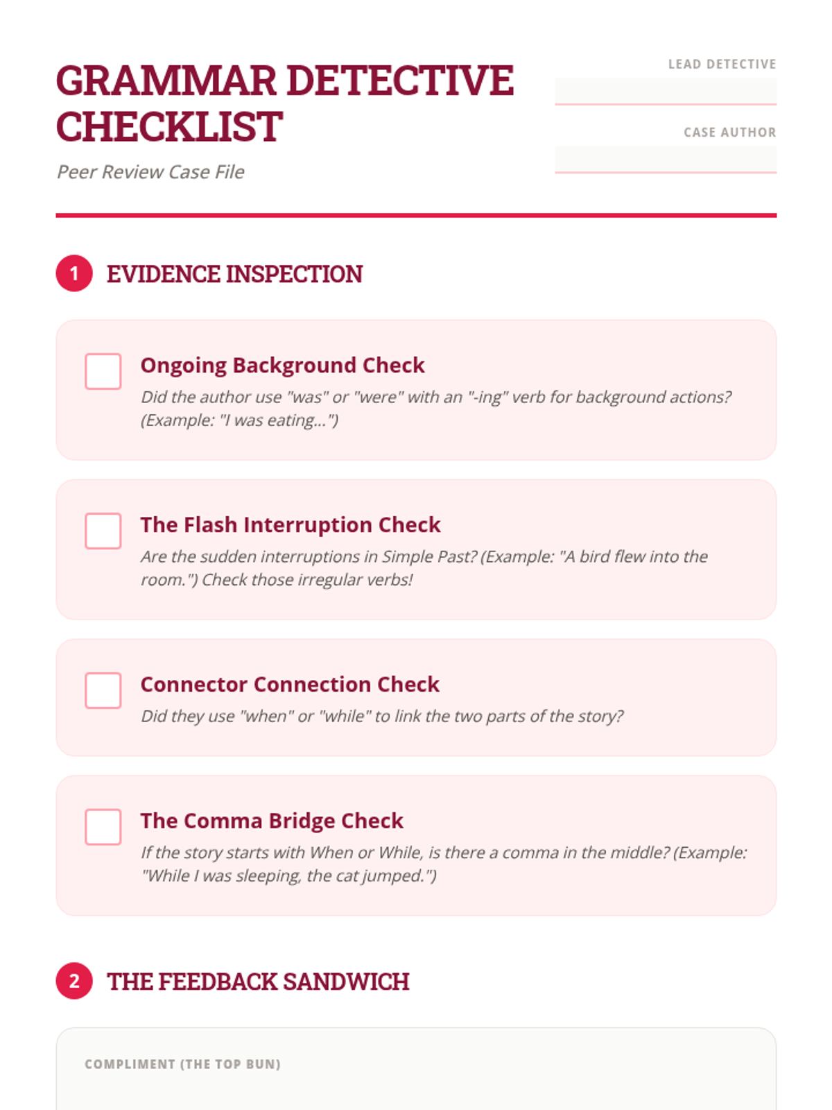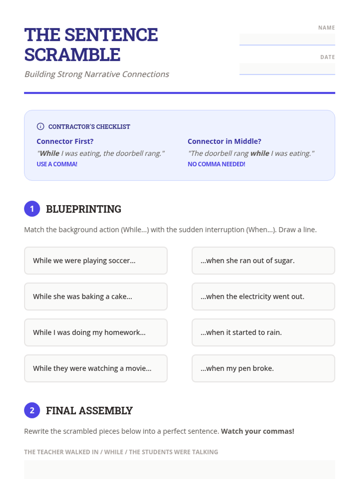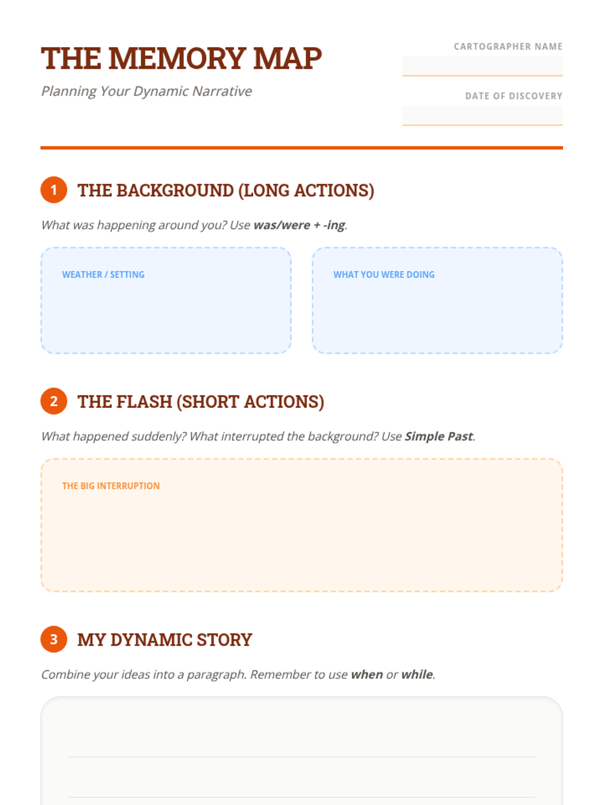 A comprehensive 5-lesson sequence for 4th Grade ESL students to master the use of Simple Past and Past Continuous tenses in storytelling. Students progress from identifying tenses to using conjunctions 'when' and 'while', mastering irregular verbs, and drafting personal narratives.