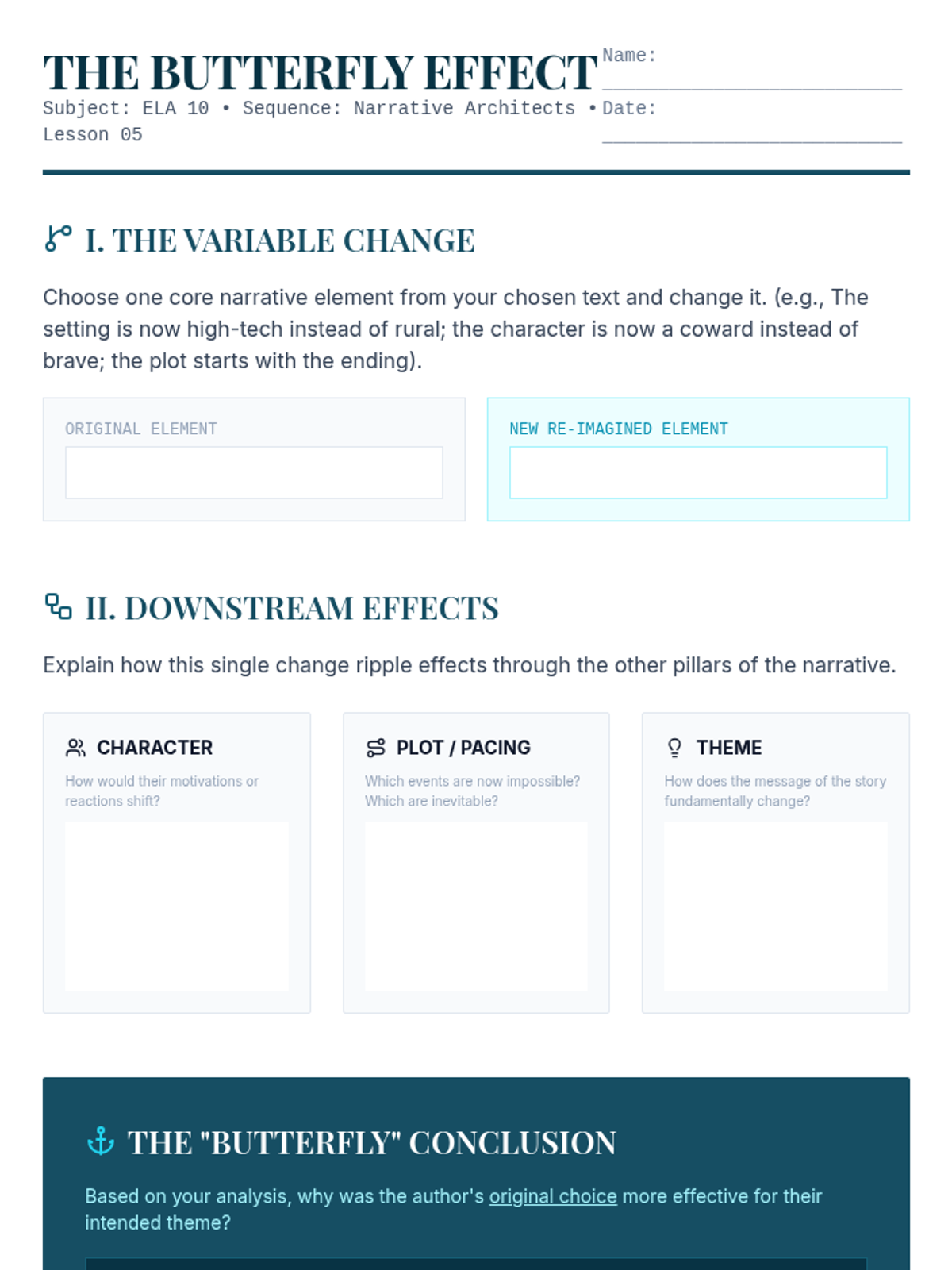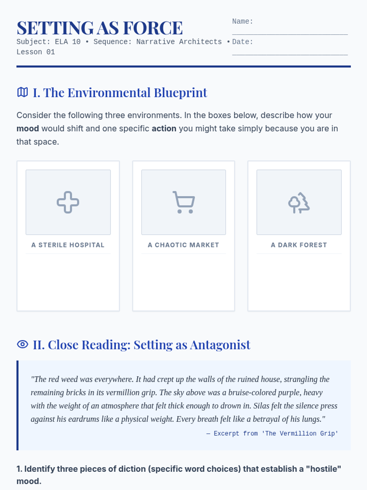 A 10th-grade ELA unit focused on the sophisticated interplay between setting, character development, and plot structure. Students analyze how authorial choices shape theme through complex narrative techniques.