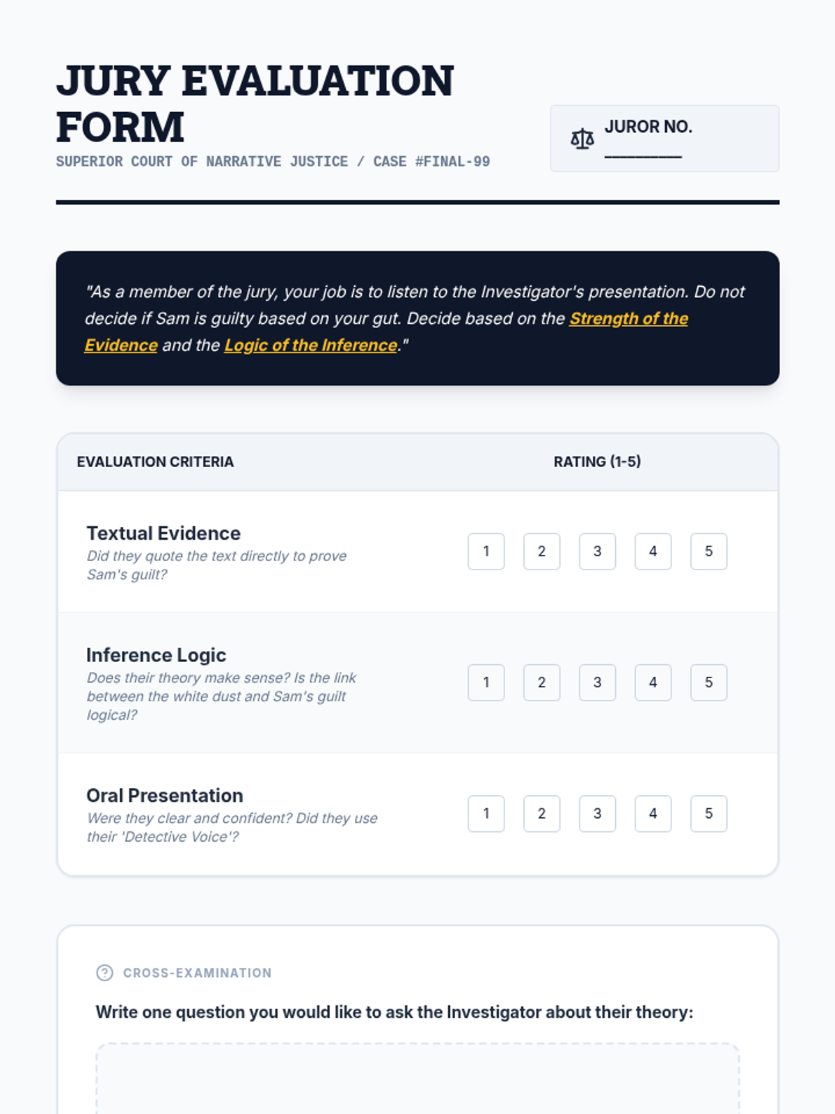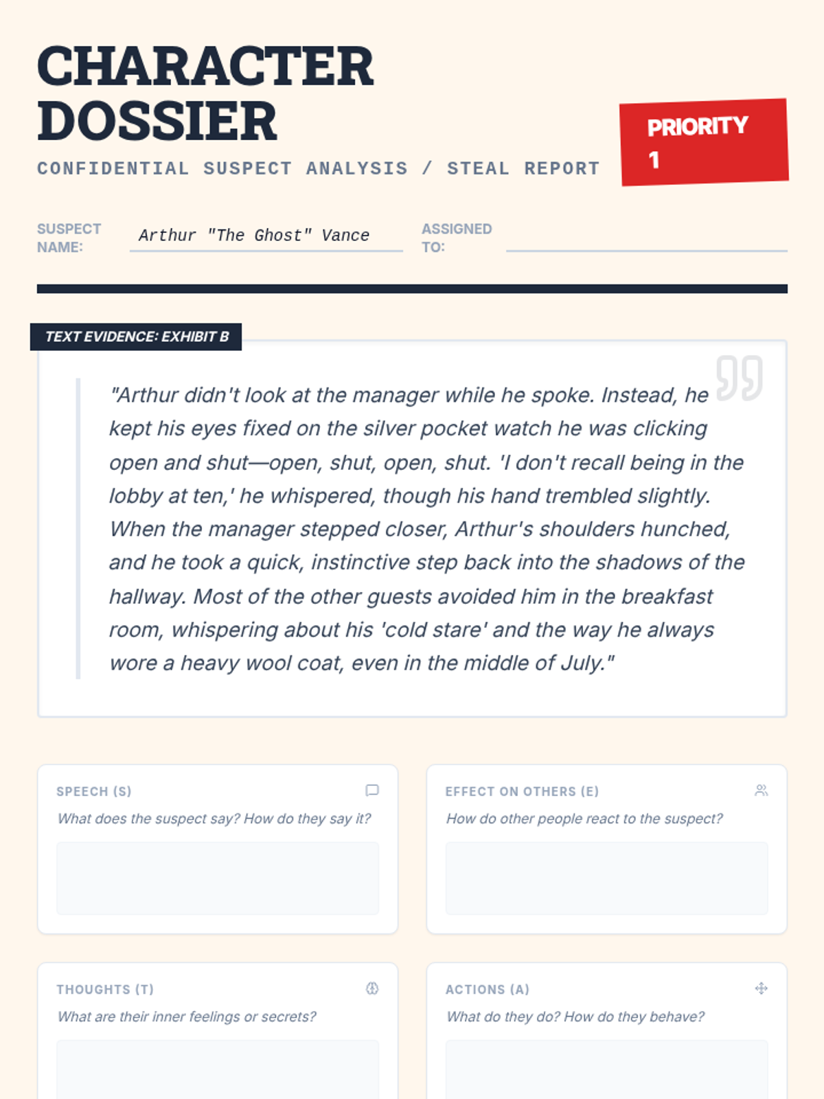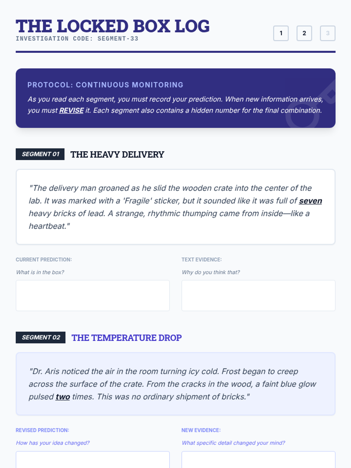 A forensic-themed reading comprehension unit where students act as investigators to master predictions and inferences. Through case studies and evidence tracking, students learn to bridge literal text with deep narrative meaning.