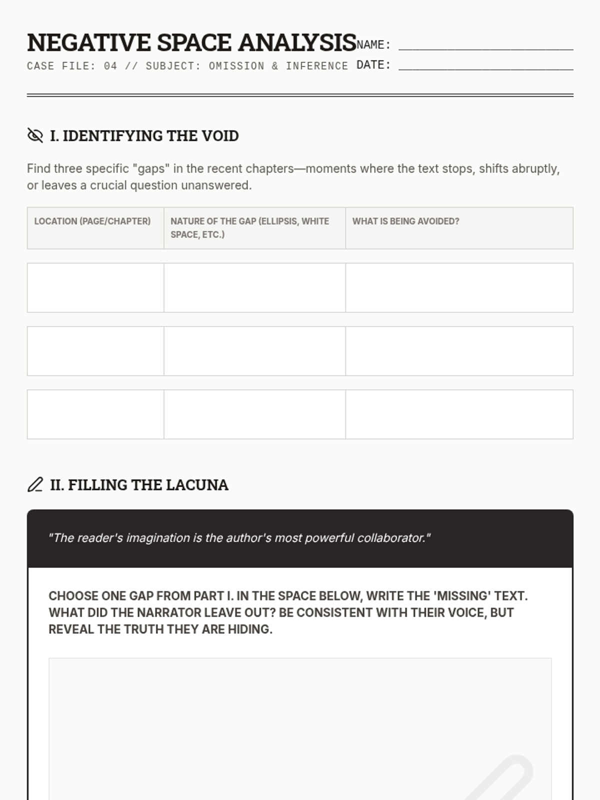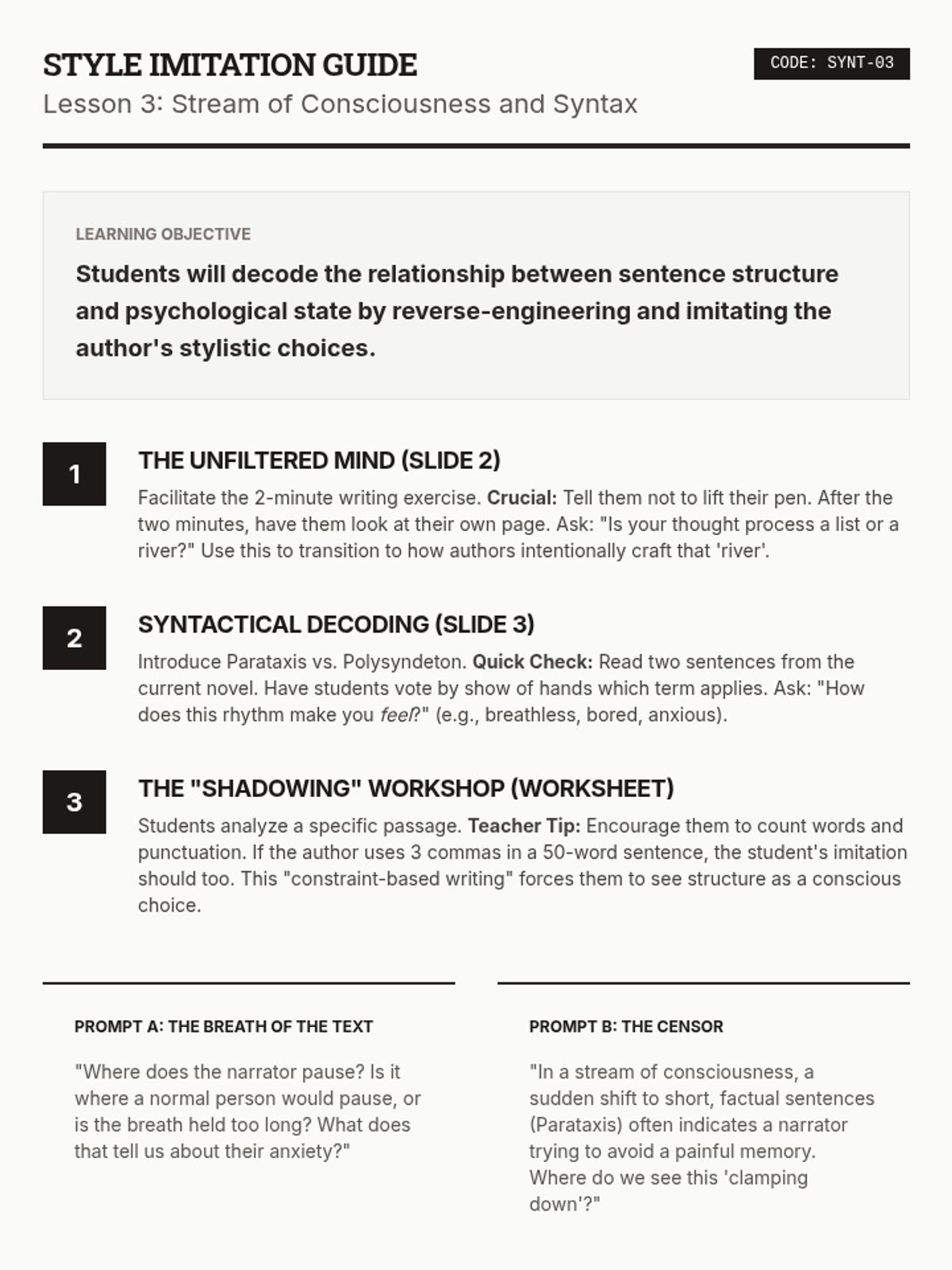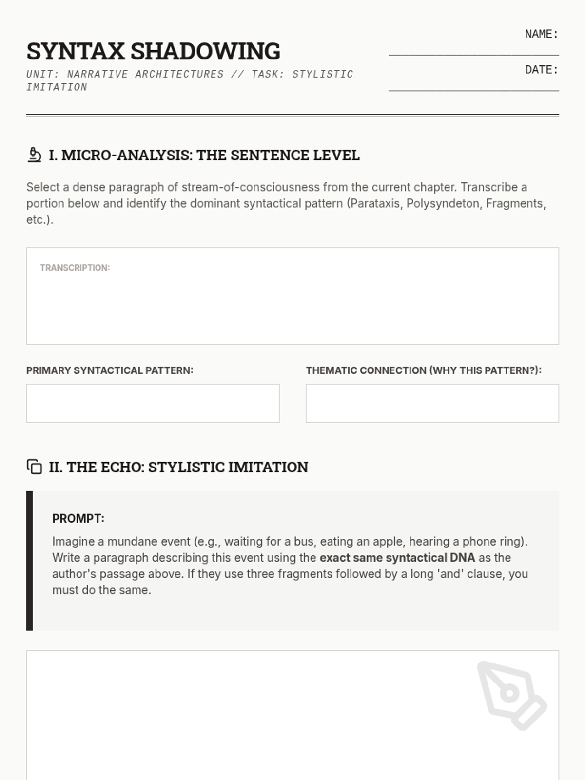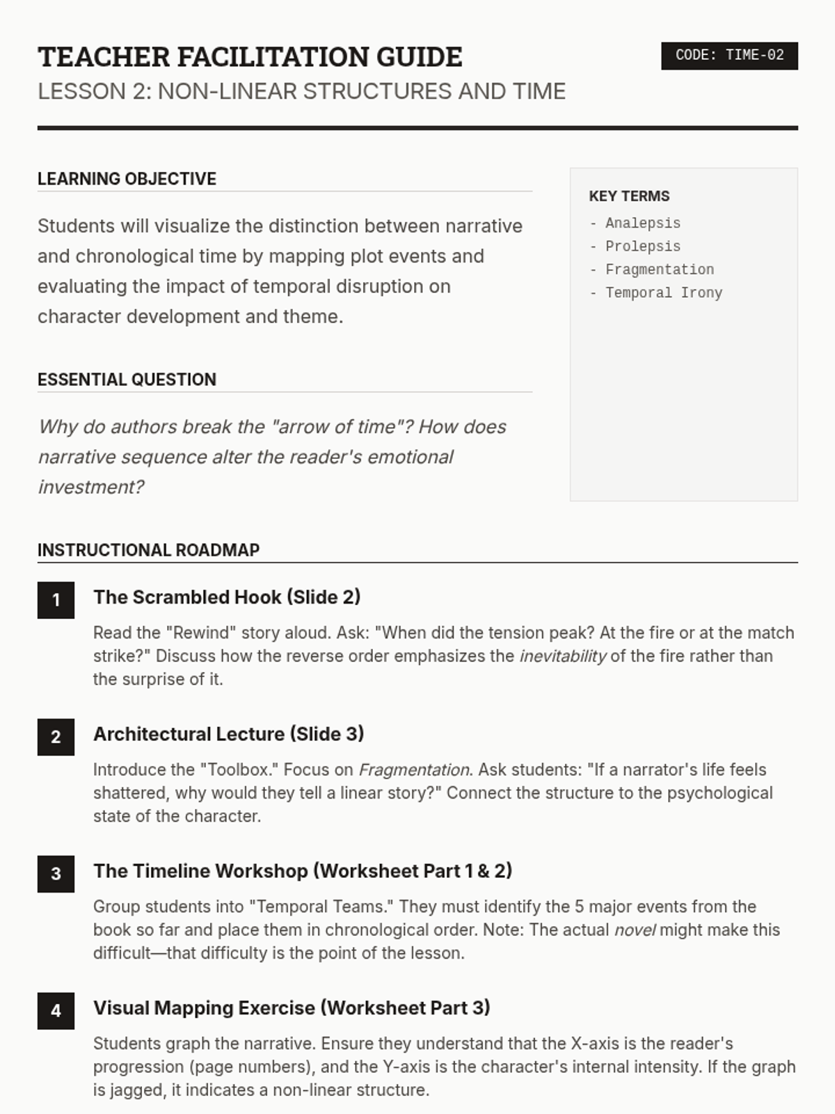 A comprehensive 12th-grade ELA sequence focused on narrative reliability and complex structures. Students explore unreliable narrators, non-linear timelines, stream of consciousness, and the power of omission to prepare for a final structural analysis essay.