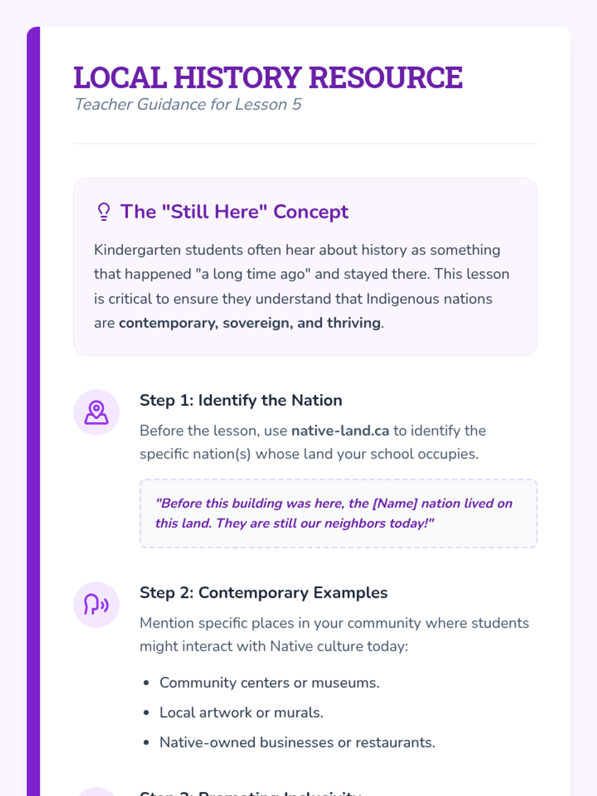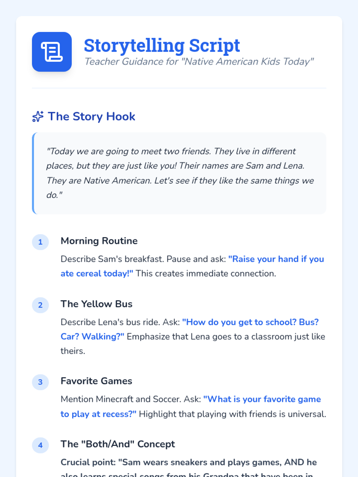 A Kindergarten sequence focused on connecting historical Native American cultures to modern life, debunking misconceptions, and highlighting cultural continuity through family, school, and community values.