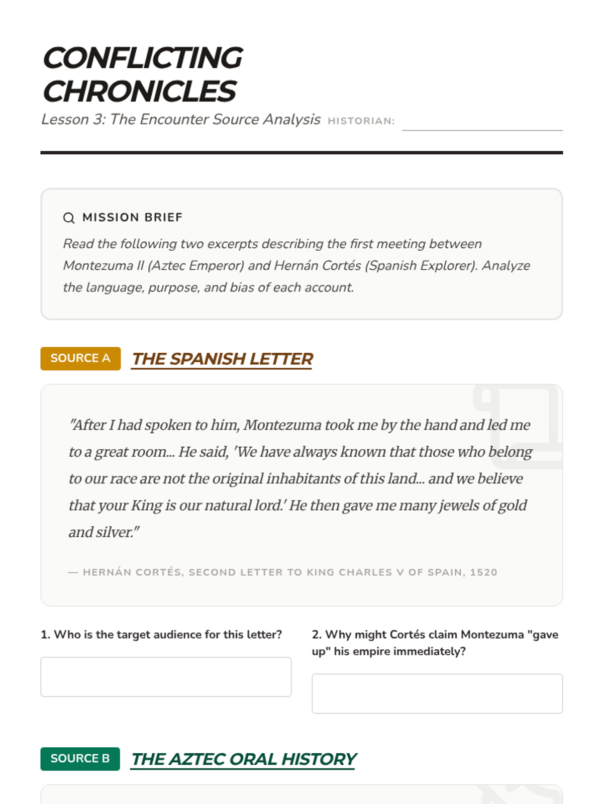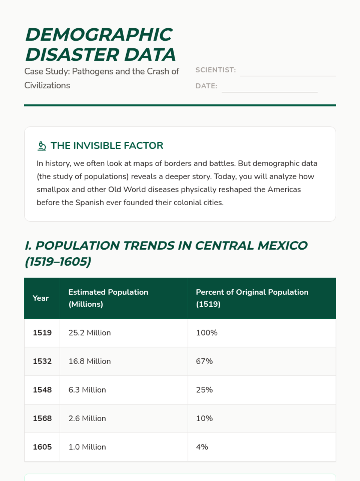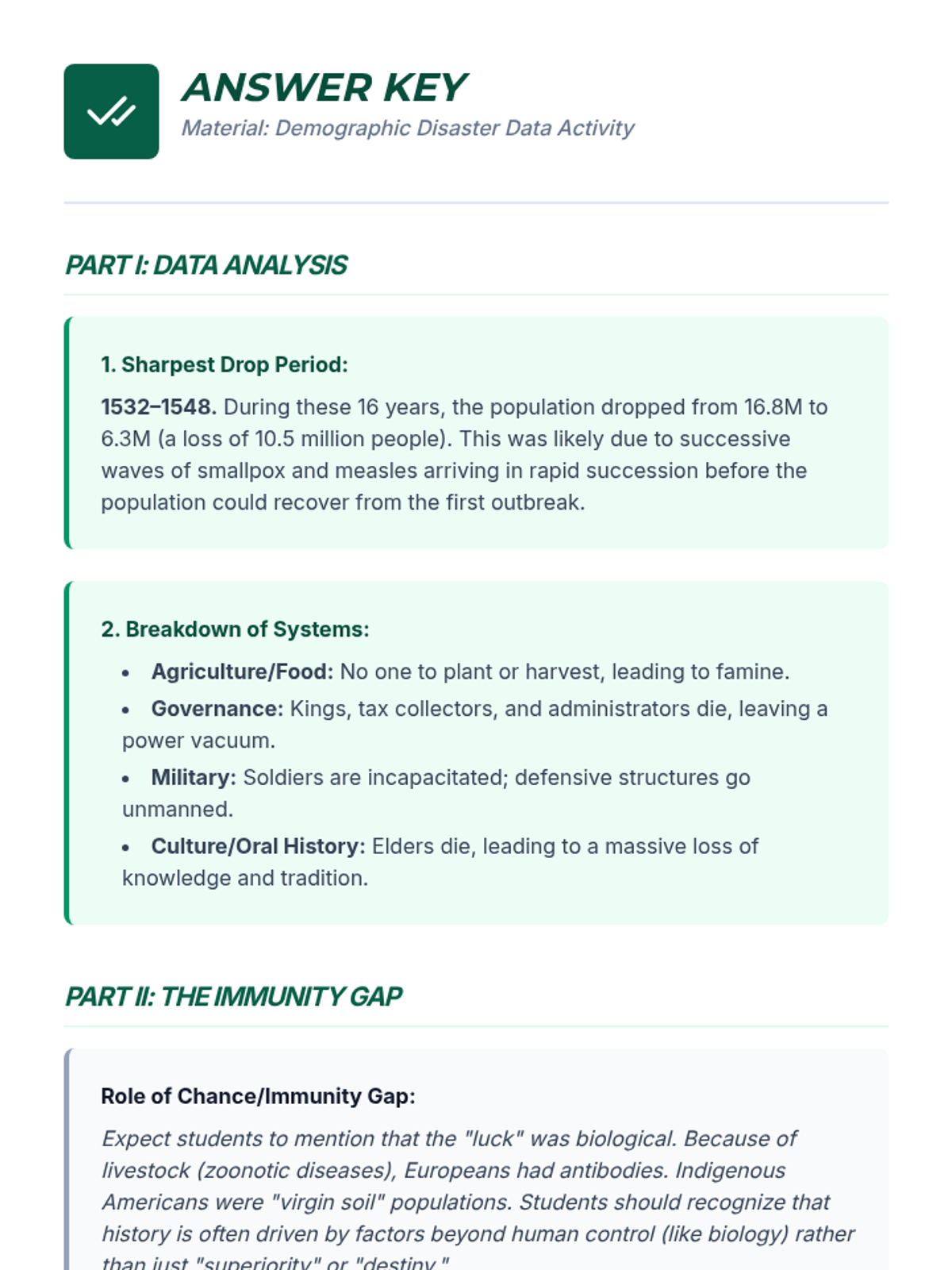 A 9th-grade history sequence exploring the internal and external factors leading to the fall of the Aztec and Inca empires, the impact of European contact, and the enduring continuity of Indigenous cultures. Students analyze primary sources, demographic data, and modern cultural movements.
