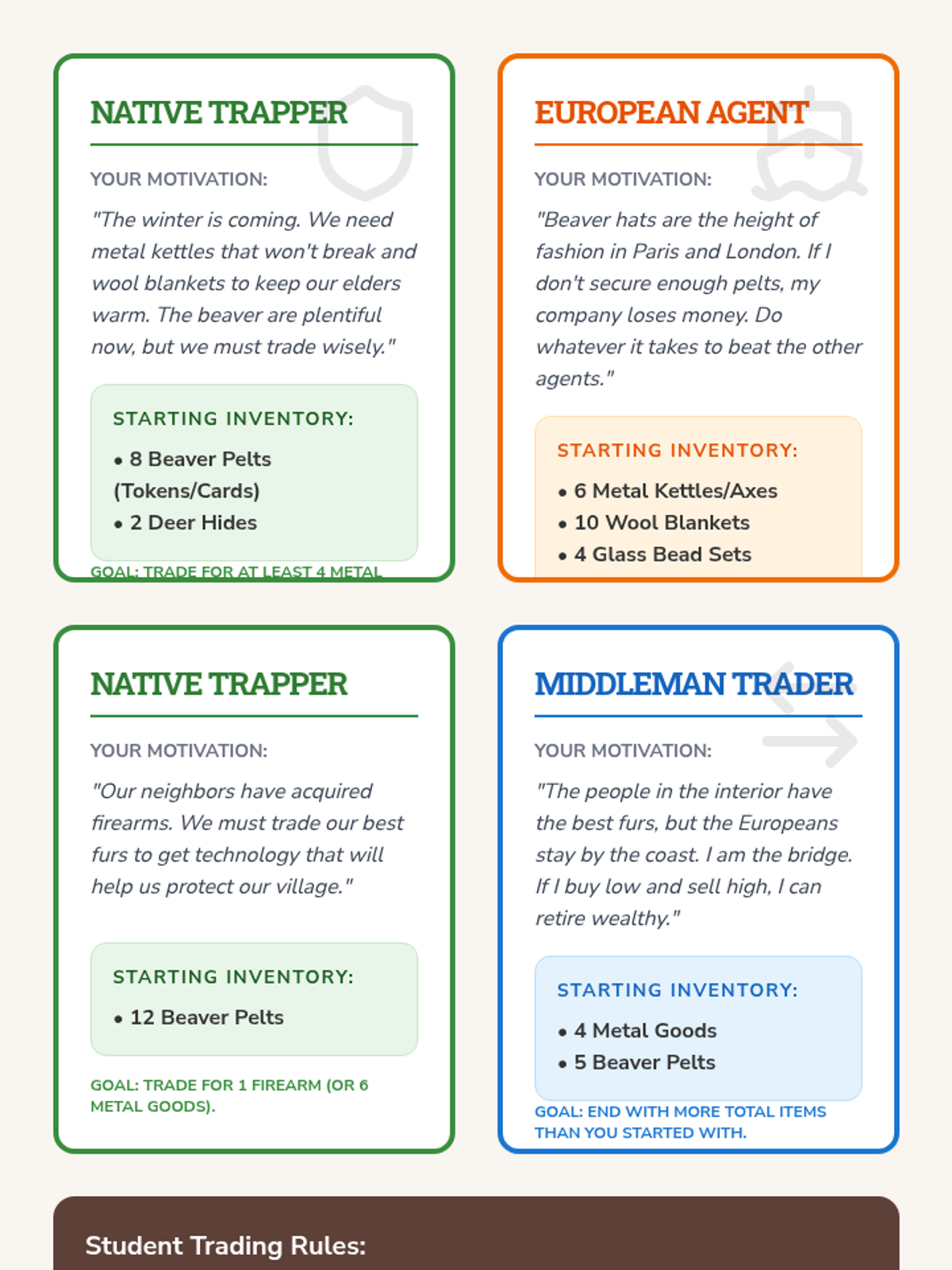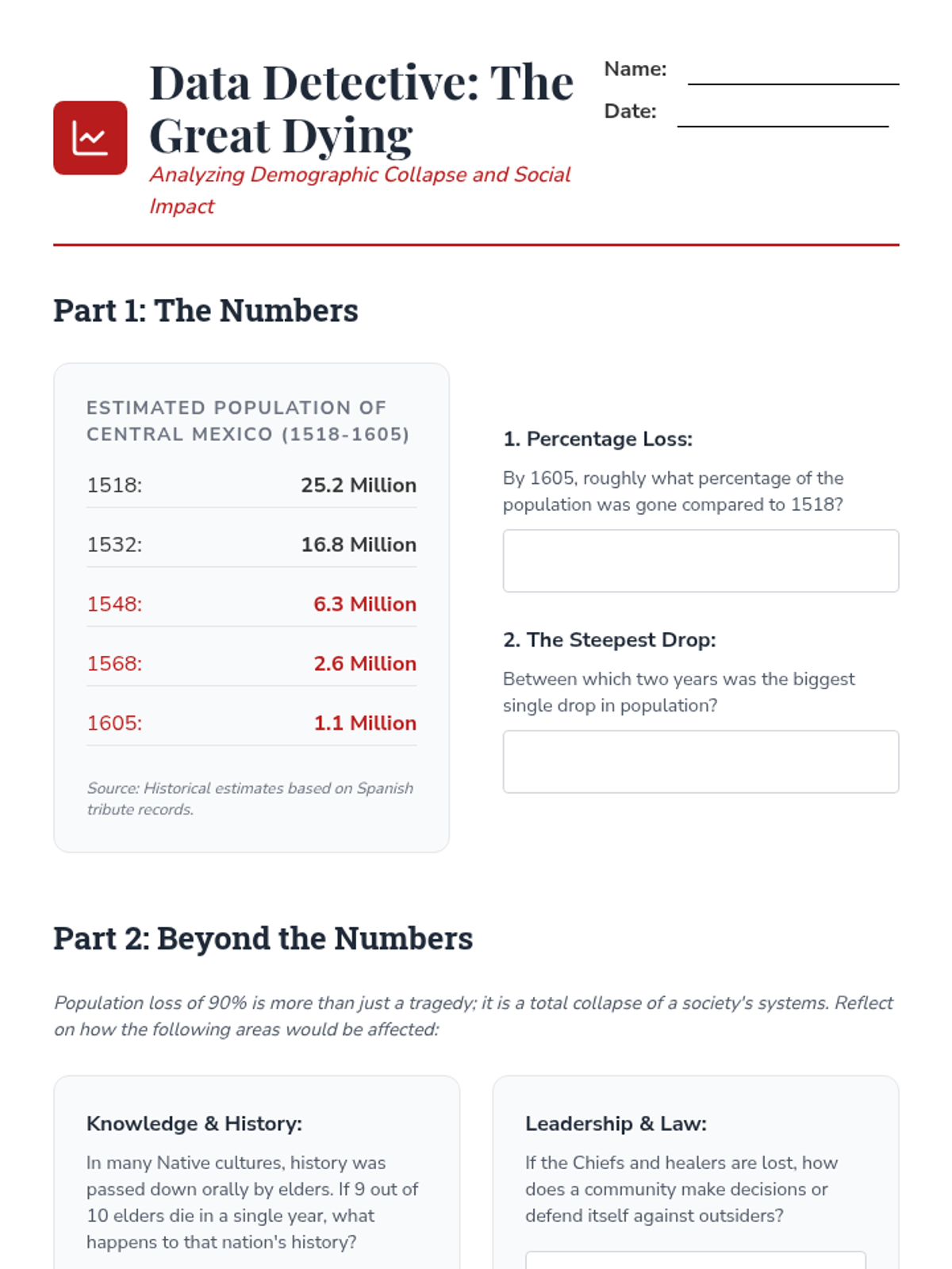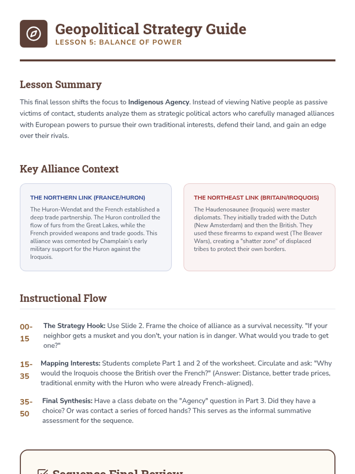 This sequence examines the complex interactions following European arrival, exploring the Columbian Exchange, trade alliances, and biological impacts. Students will investigate how new technologies, animals, and diseases transformed Native life and analyze the strategic choices made by Indigenous leaders during the 17th century.