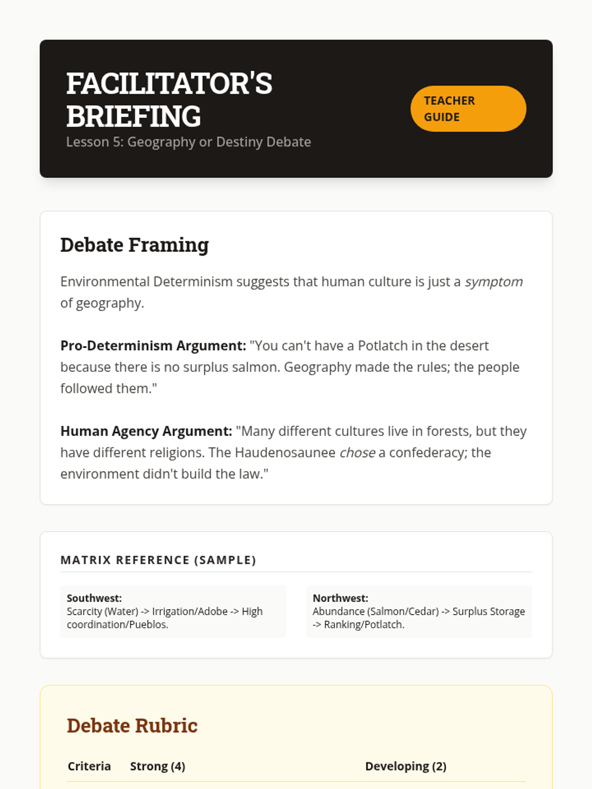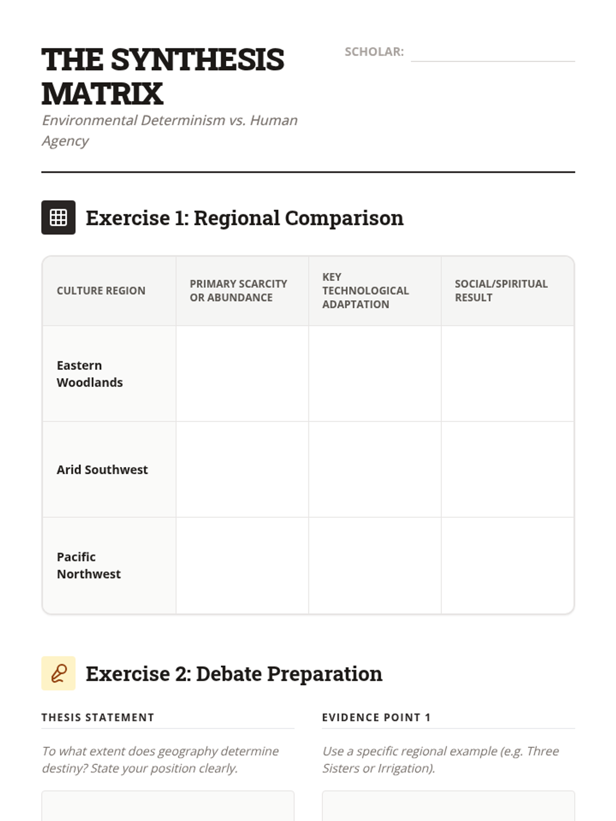 A comprehensive sequence exploring how North American environments shaped Indigenous cultures. Students analyze geographic regions, resource management, and social structures to understand the link between geography and civilization.