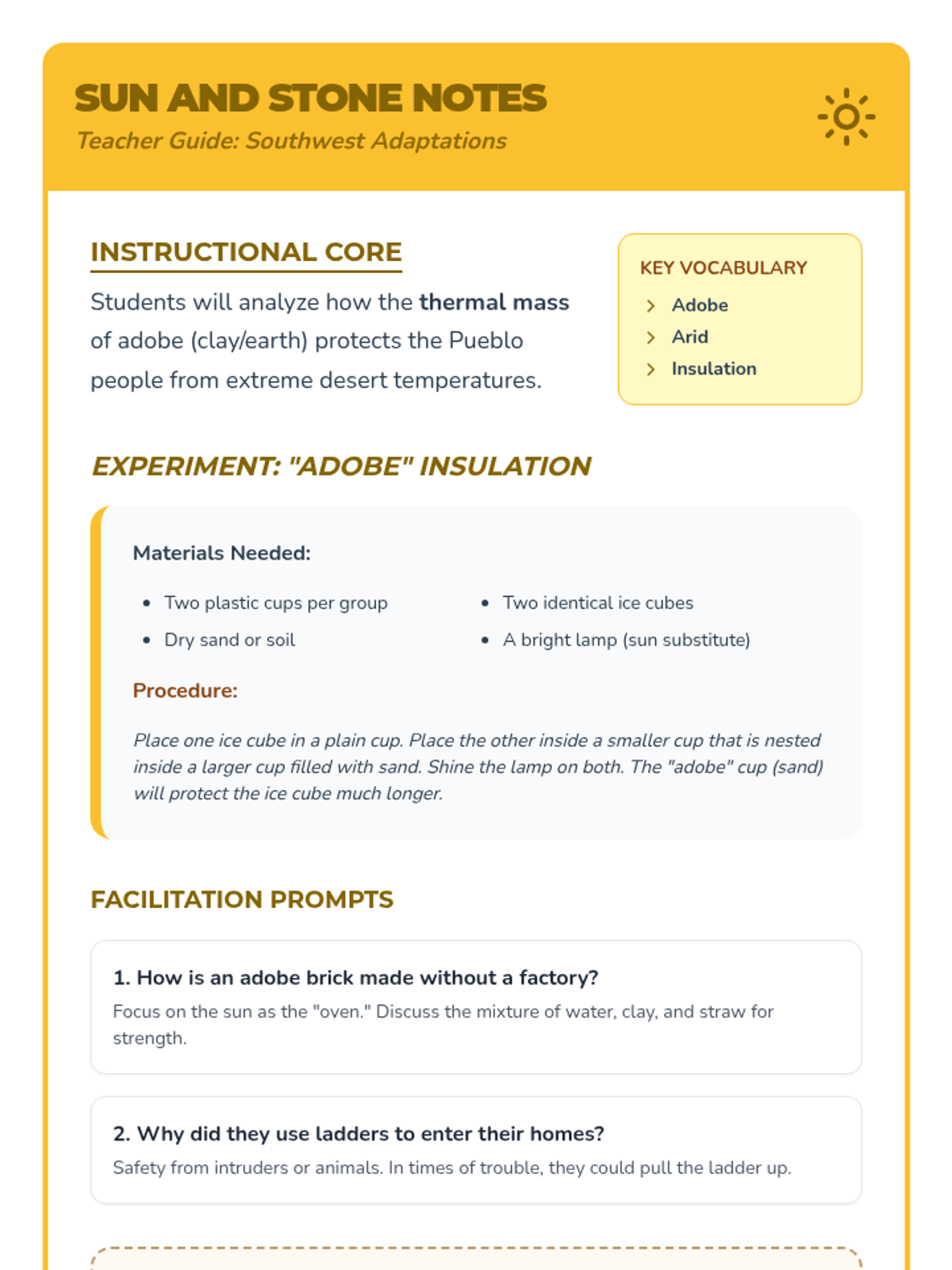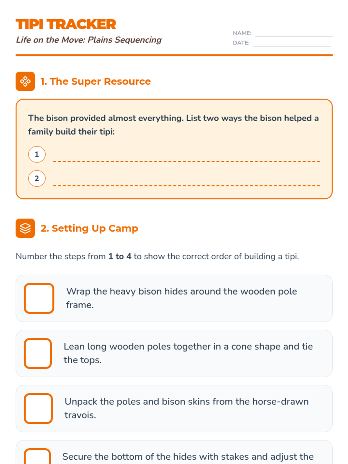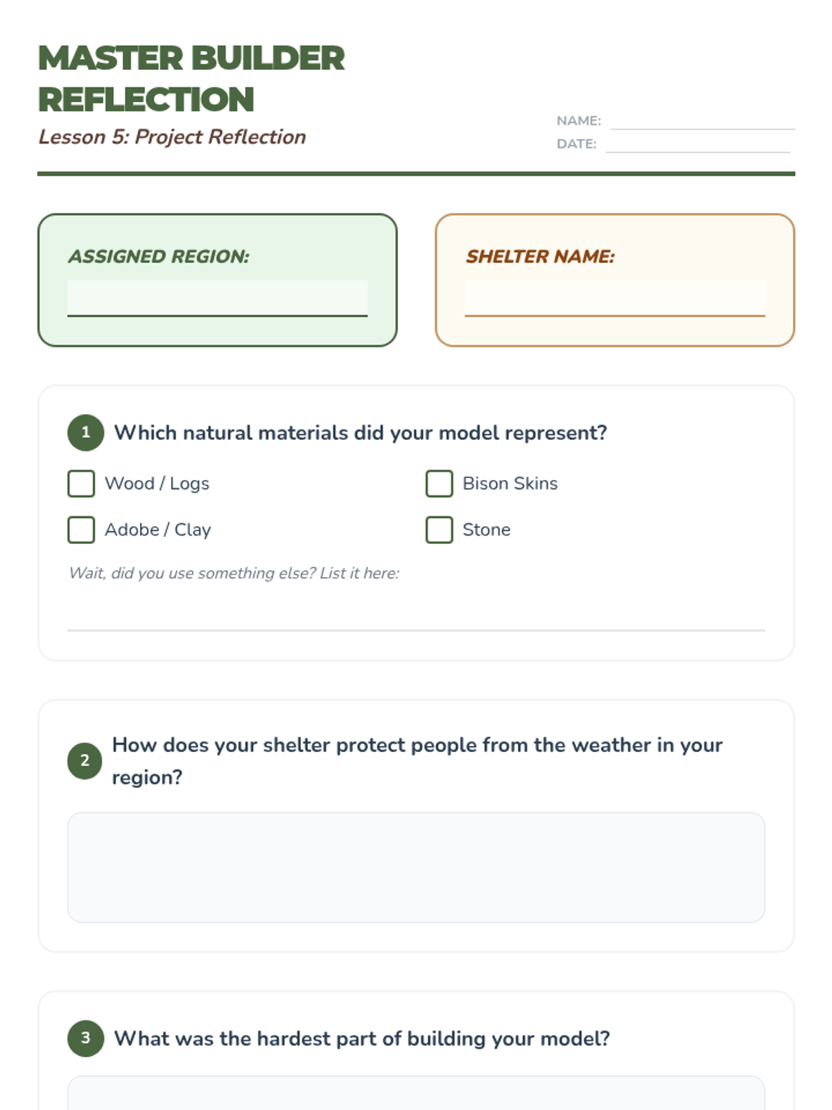 A 2nd-grade history sequence exploring how Native American nations adapted to their environments by building shelters from local natural resources across North America.