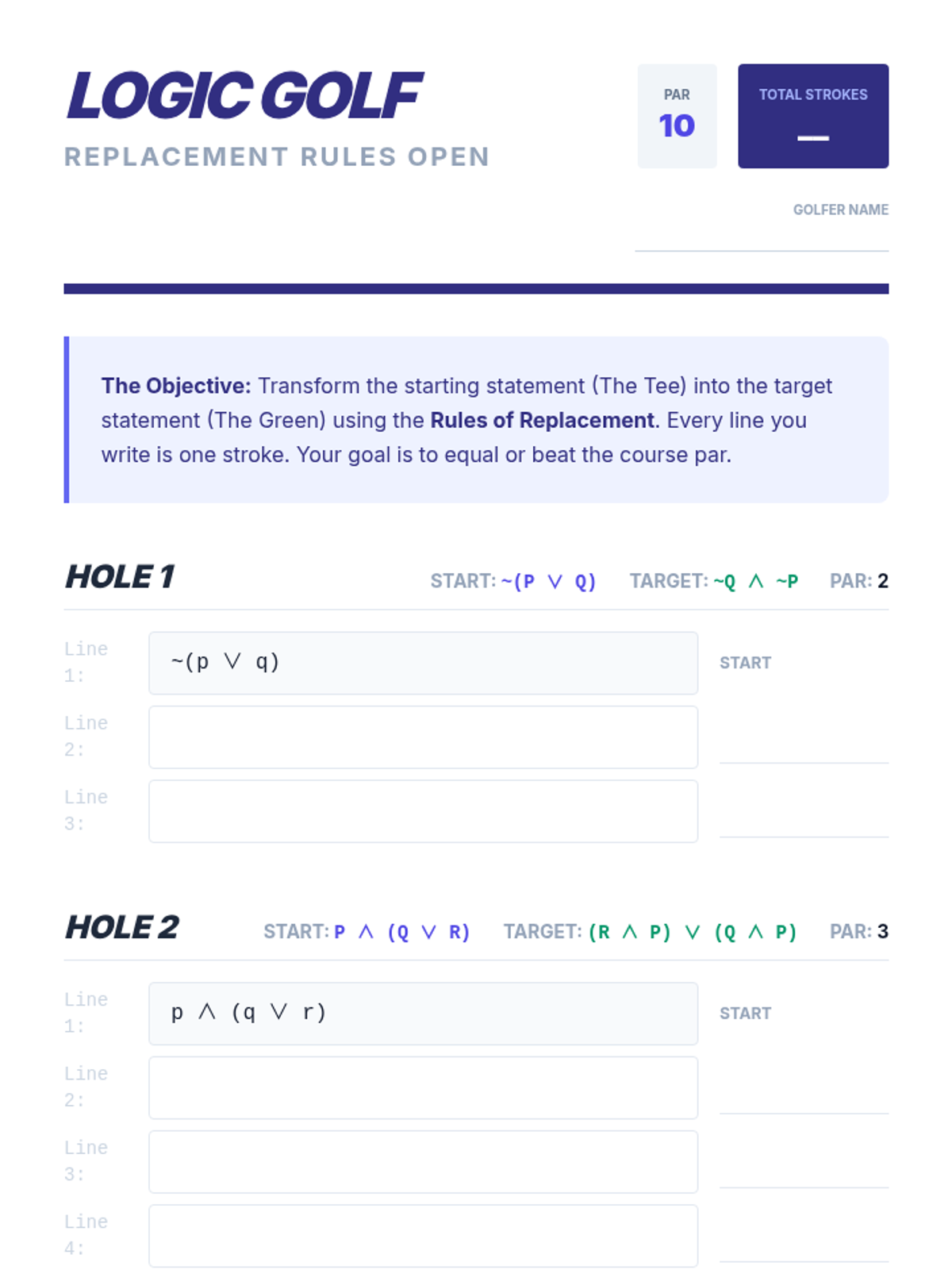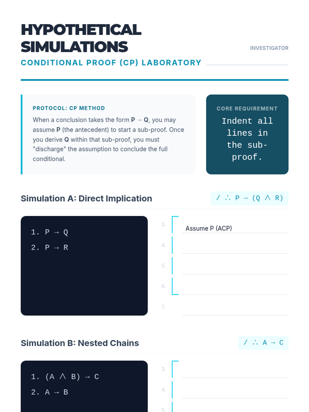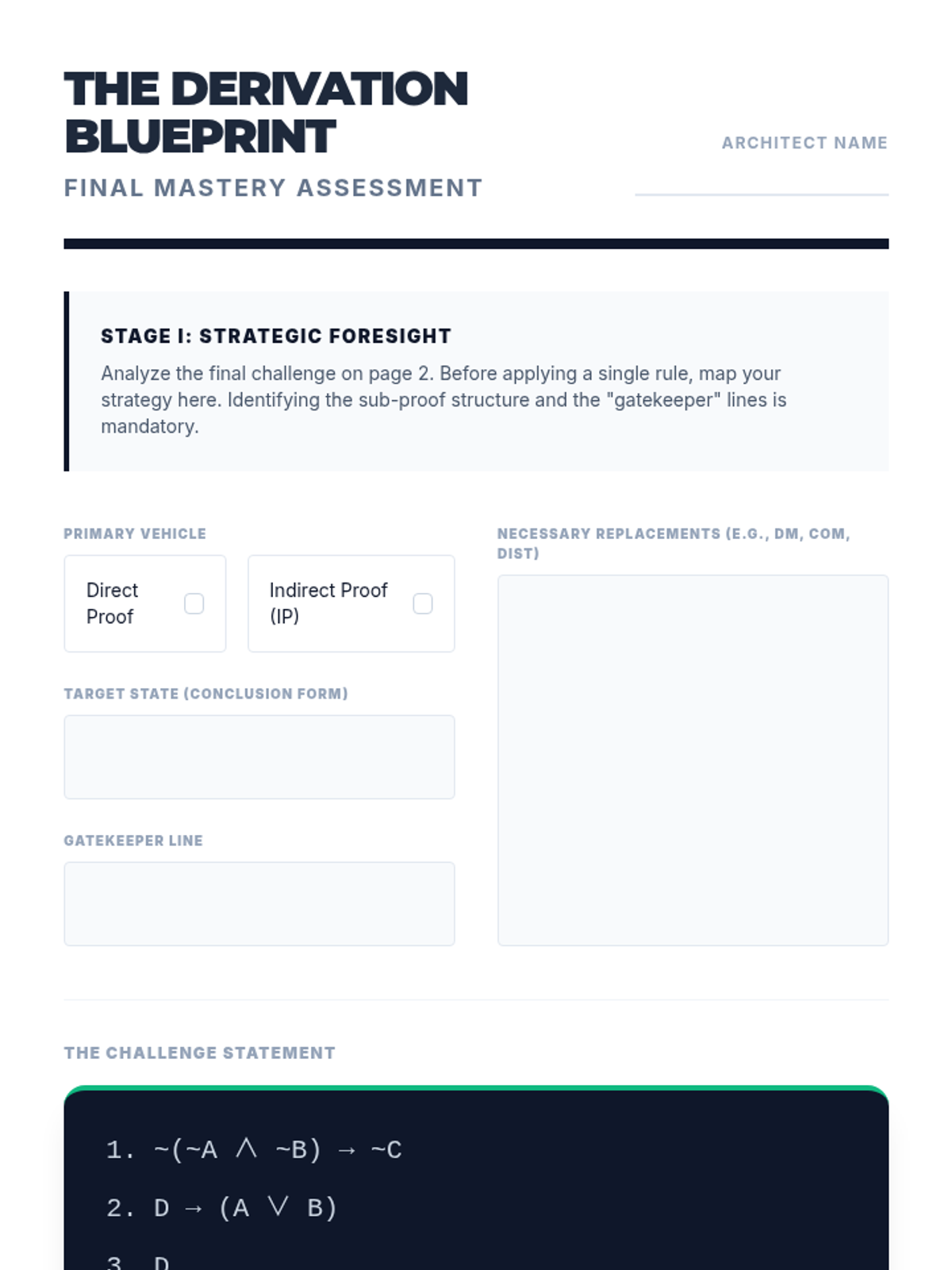 A comprehensive graduate-level sequence on formal logic and natural deduction, transitioning students from truth tables to rigorous proof construction. Students master rules of inference, replacement, and advanced proof strategies like conditional and indirect proof.
