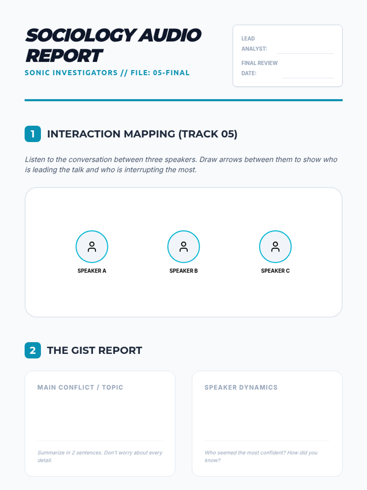 A graduate-level ESL listening sequence focused on the pragmatics of academic discourse. Students learn to navigate the subtleties of seminar discussions by identifying hedging, turn-taking signals, disagreement strategies, and multi-speaker argument threads.