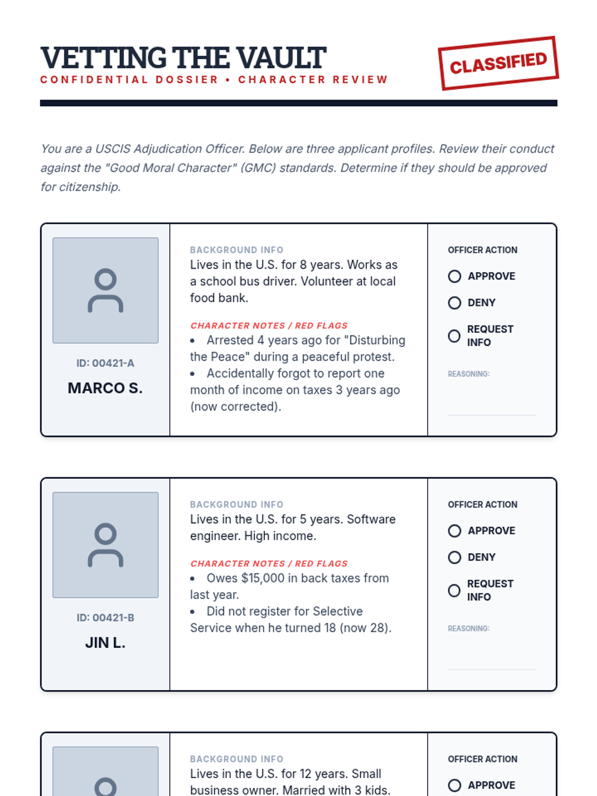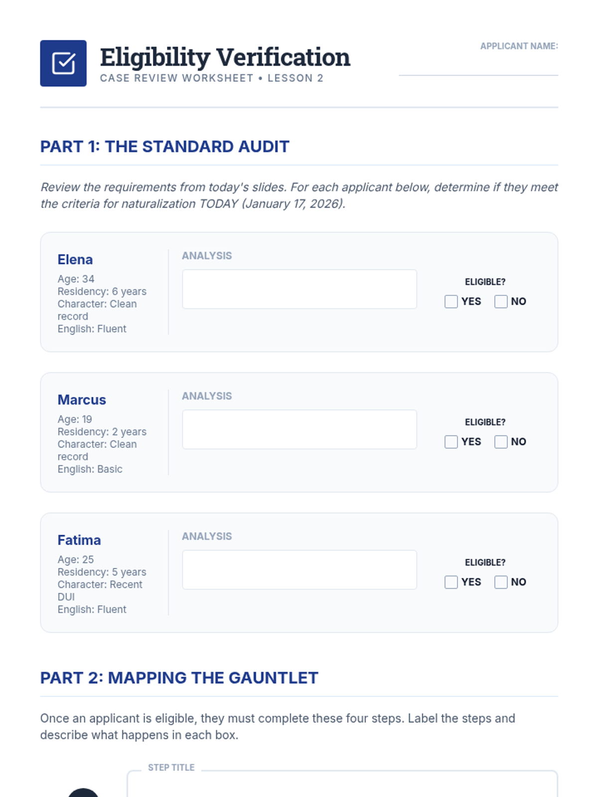 A comprehensive 7th-grade unit exploring the legal and procedural pathways to U.S. citizenship. Students analyze birthright citizenship (Jus Soli and Jus Sanguinis) and the multi-step naturalization process, evaluating the requirements, testing, and oaths that define American membership.