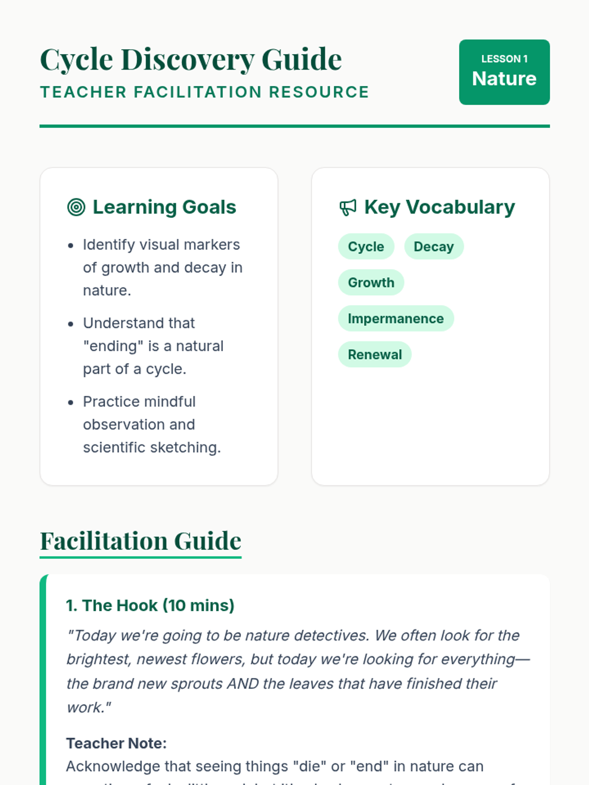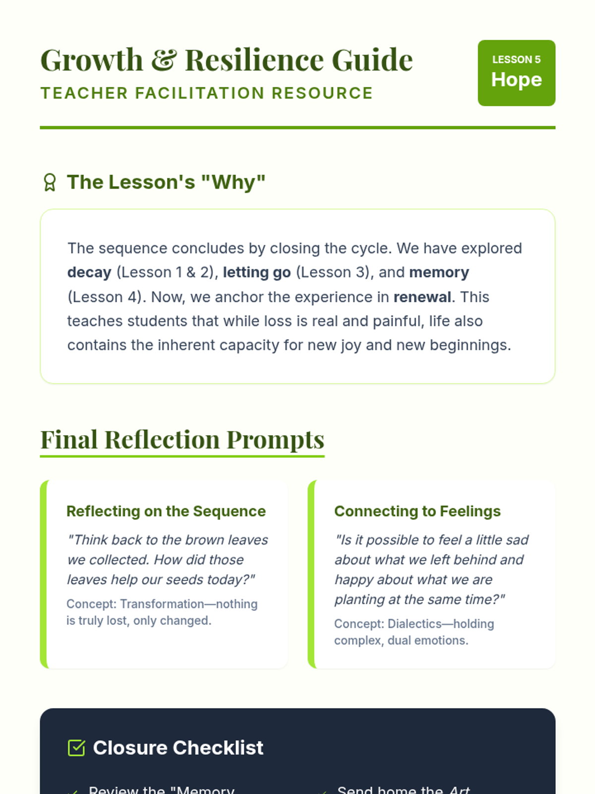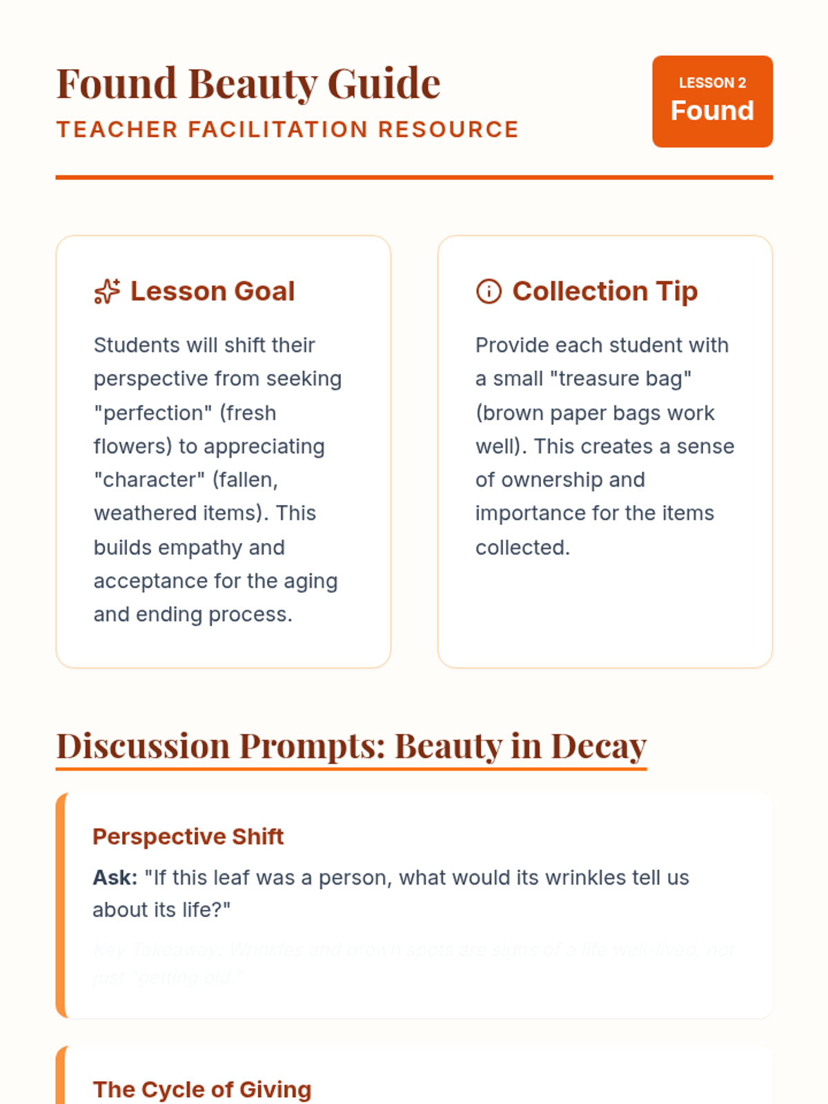 A counseling and art sequence for 2nd grade that uses nature art to explore the concept of impermanence, helping students understand loss and change through the natural world.