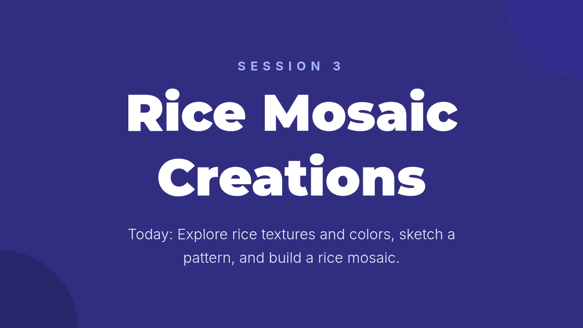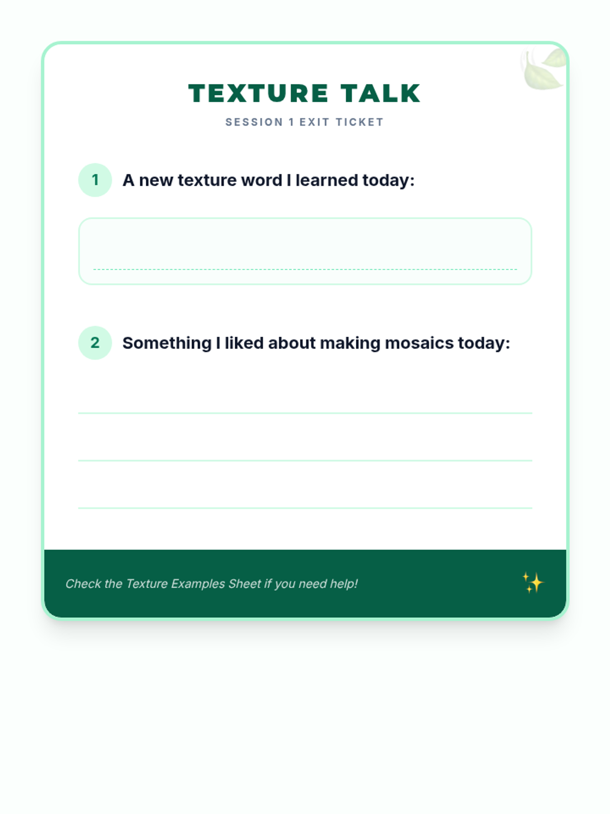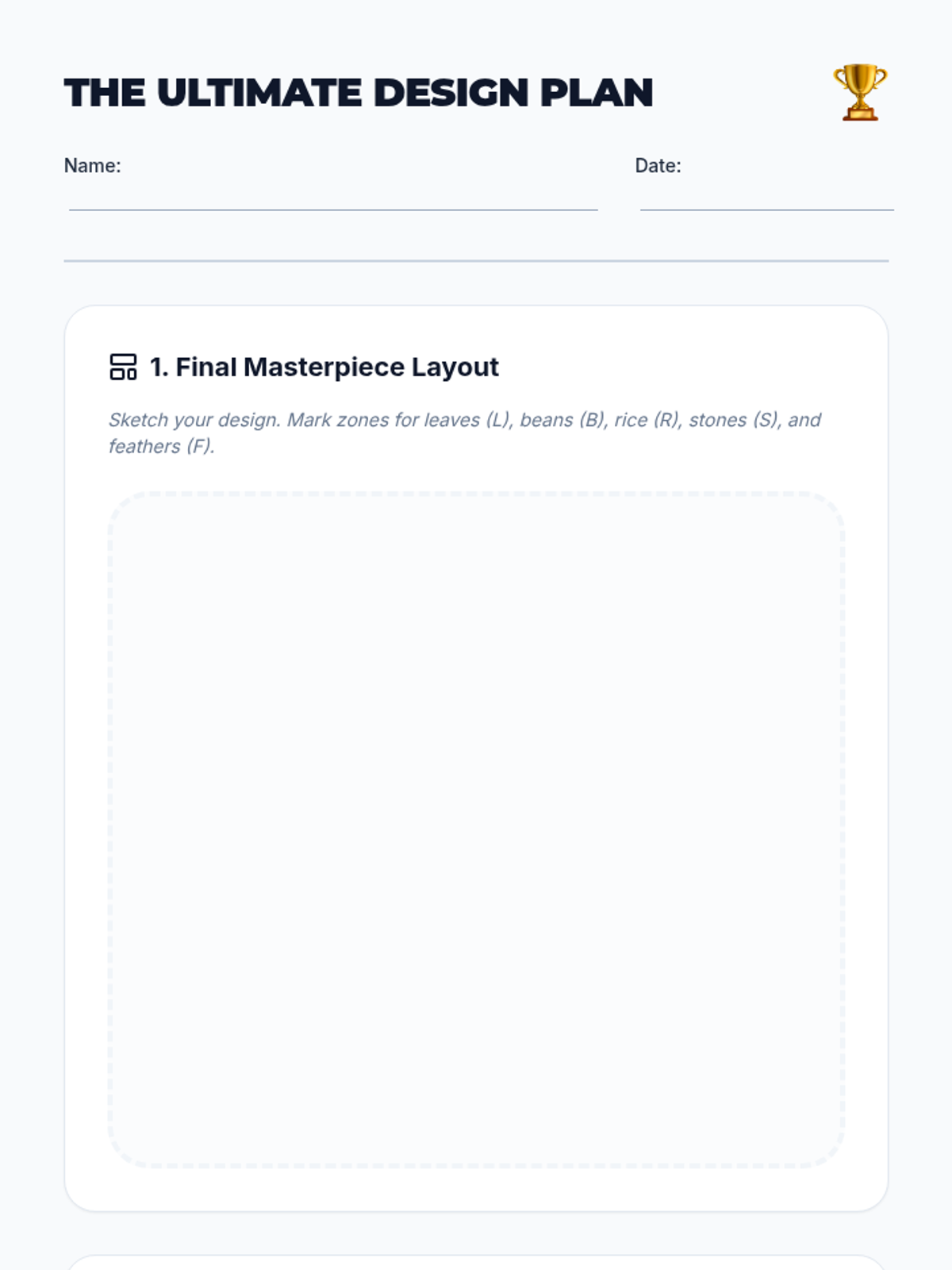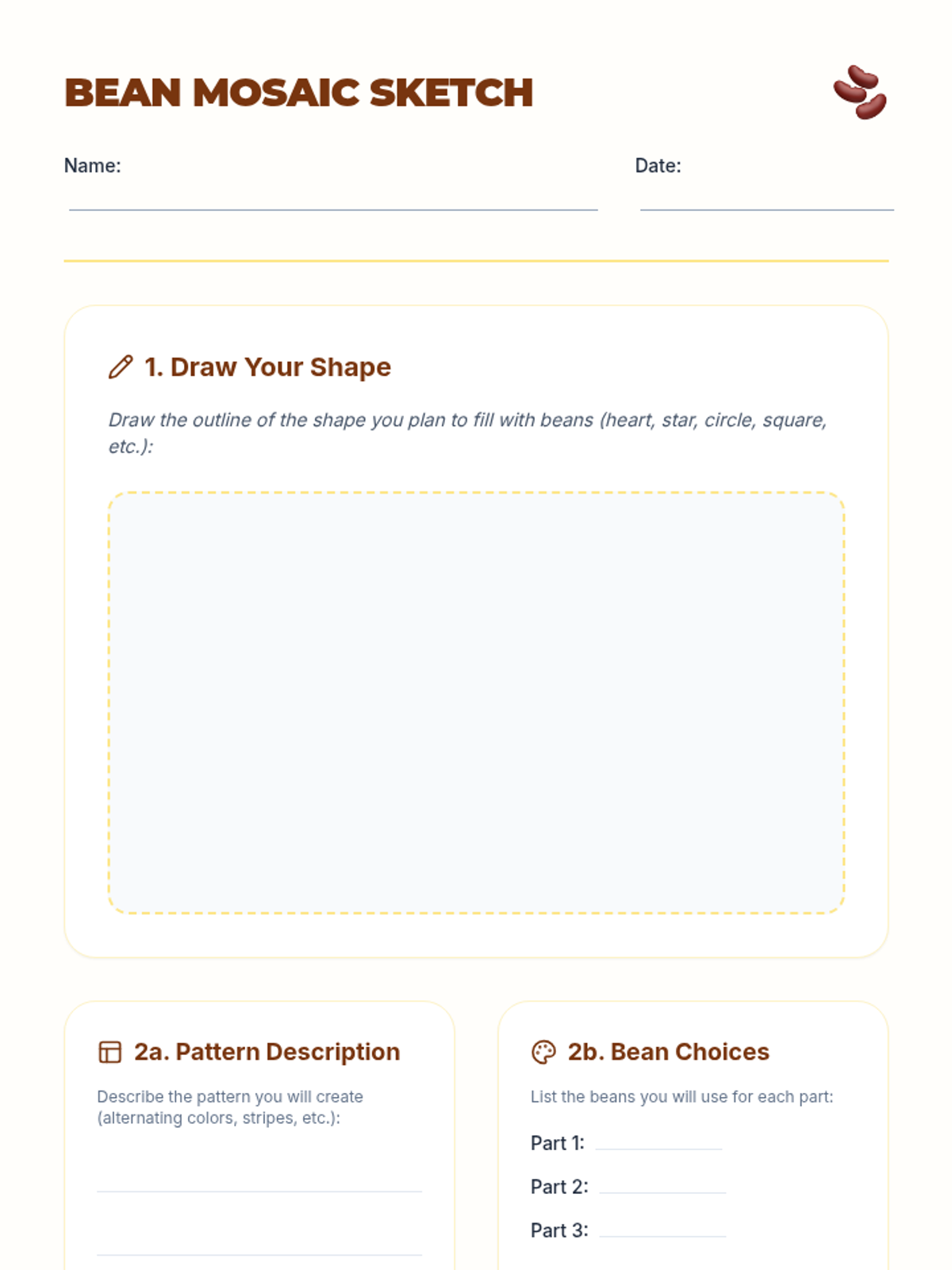 A four-session art unit where K-3 students explore natural textures, colors, and patterns to create mosaic masterpieces using leaves, beans, rice, and other organic materials.