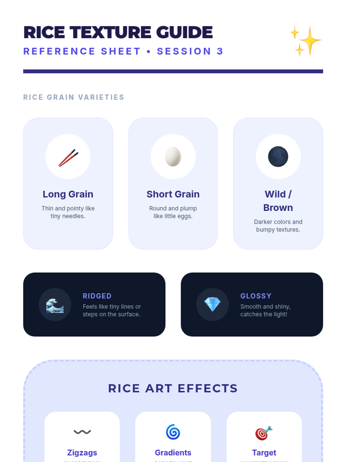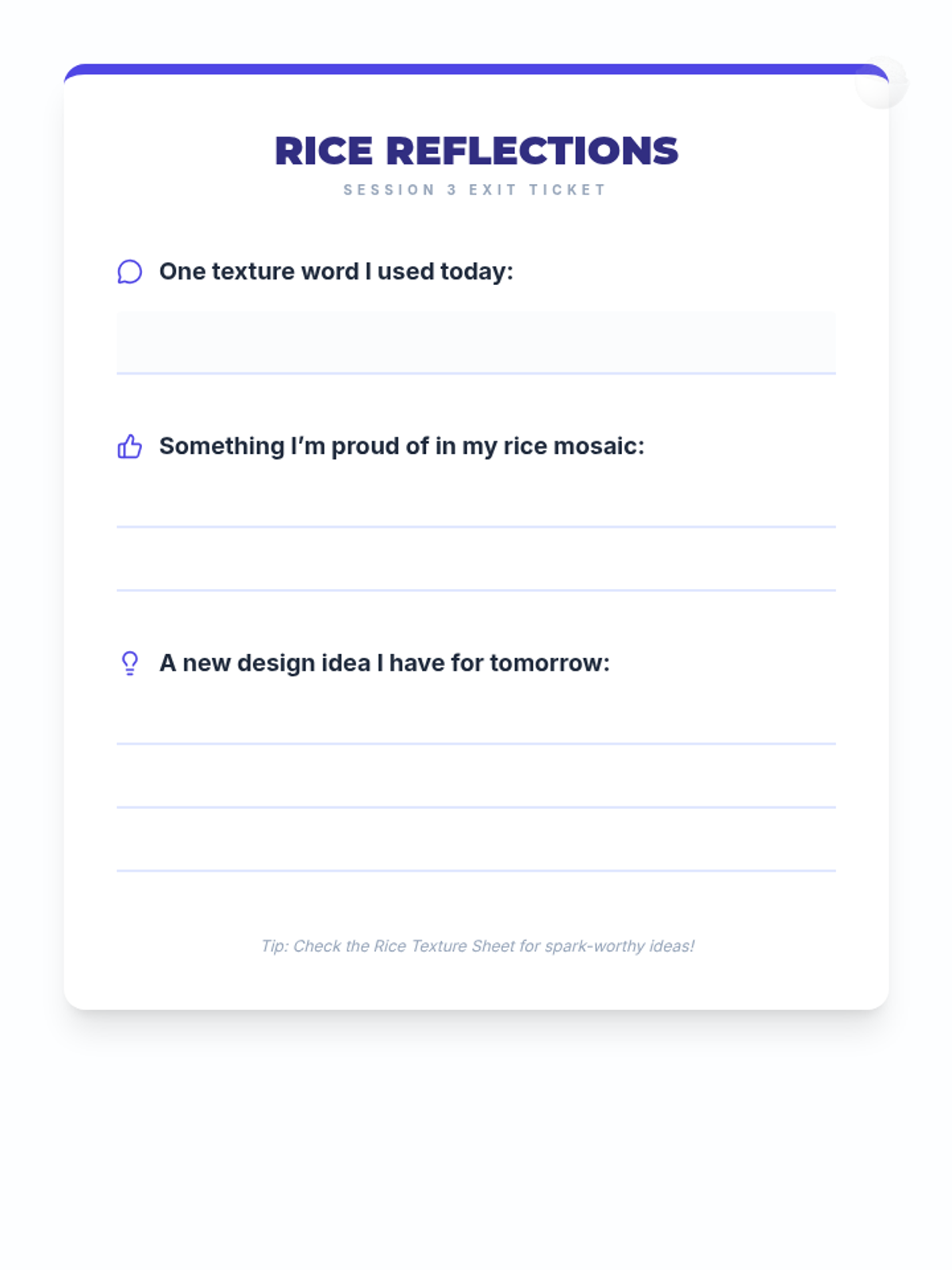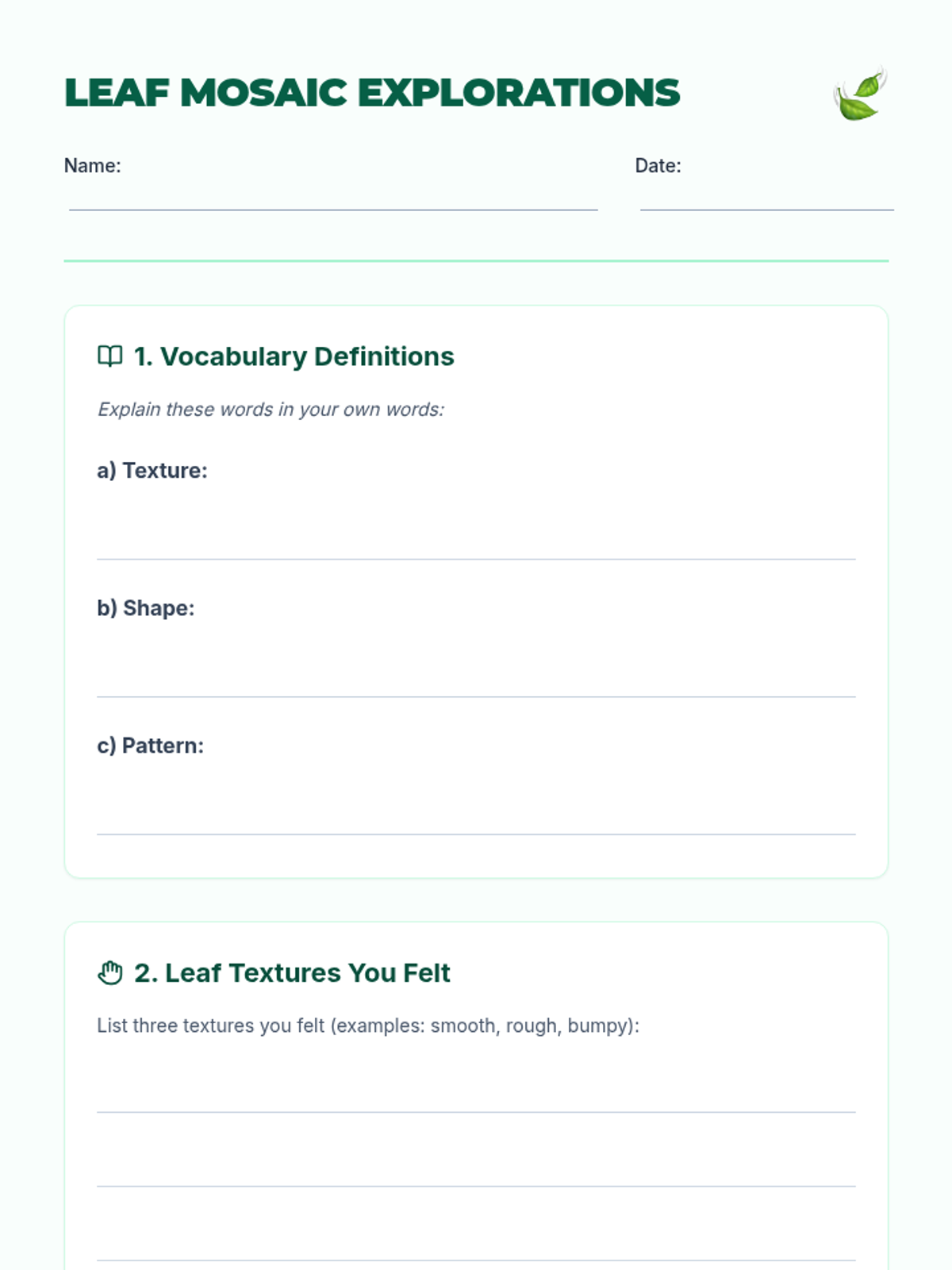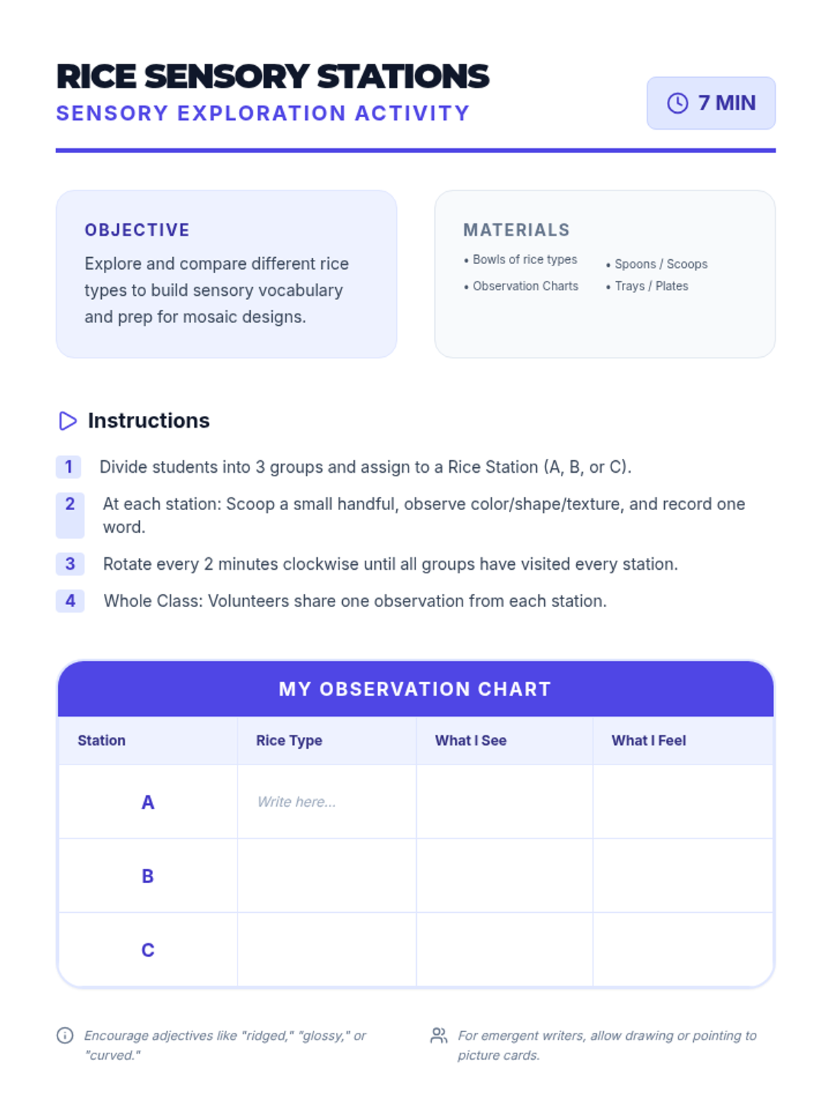 A four-session art unit where K-3 students explore natural textures, colors, and patterns to create mosaic masterpieces using leaves, beans, rice, and other organic materials.