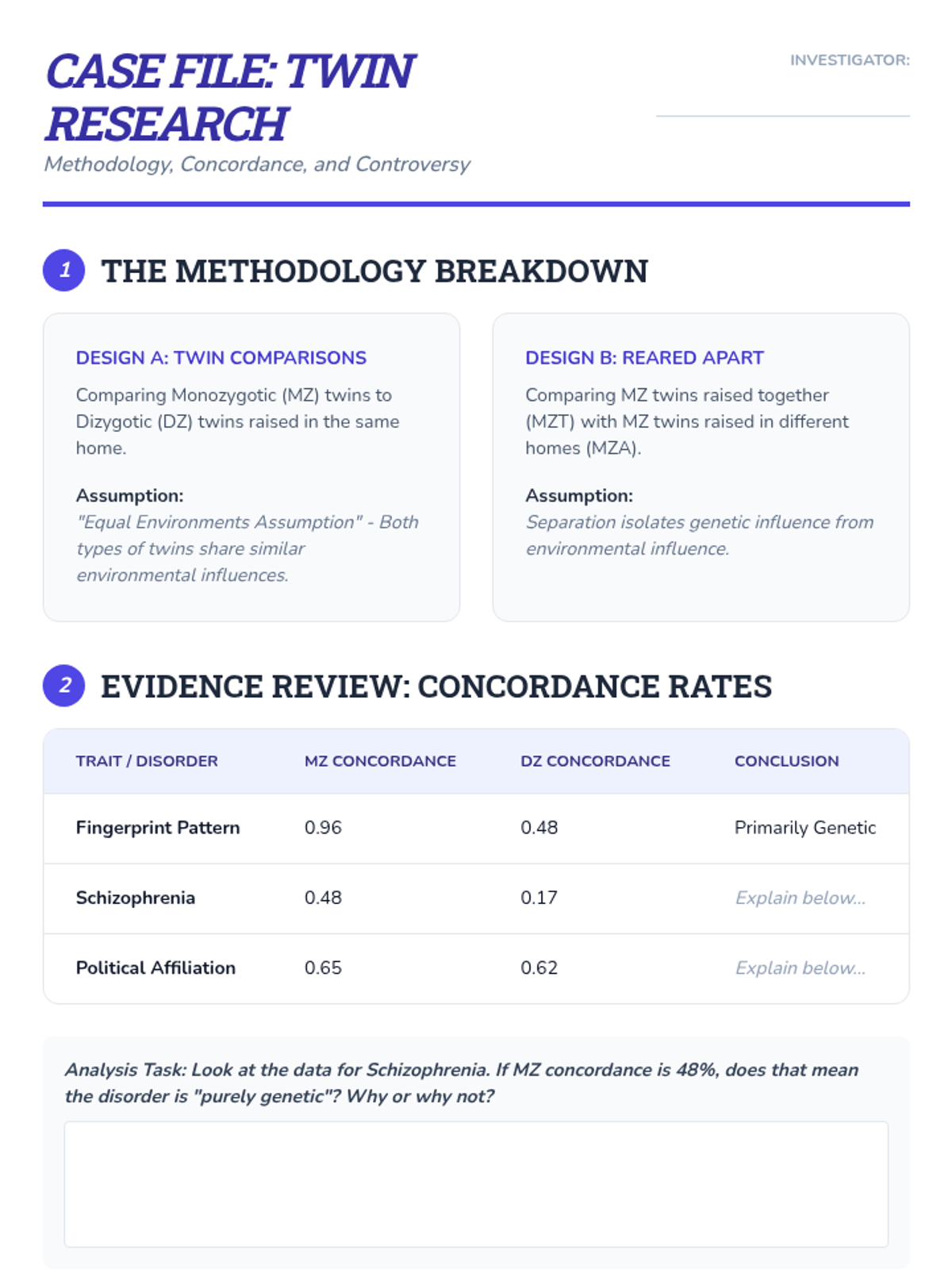This sequence explores the intersection of genetics and psychology, moving from basic inheritance to the complex interactions of heritability, epigenetics, and the diathesis-stress model. Students will analyze research methodologies and statistical data to understand how nature and nurture combine to shape human behavior and mental health.