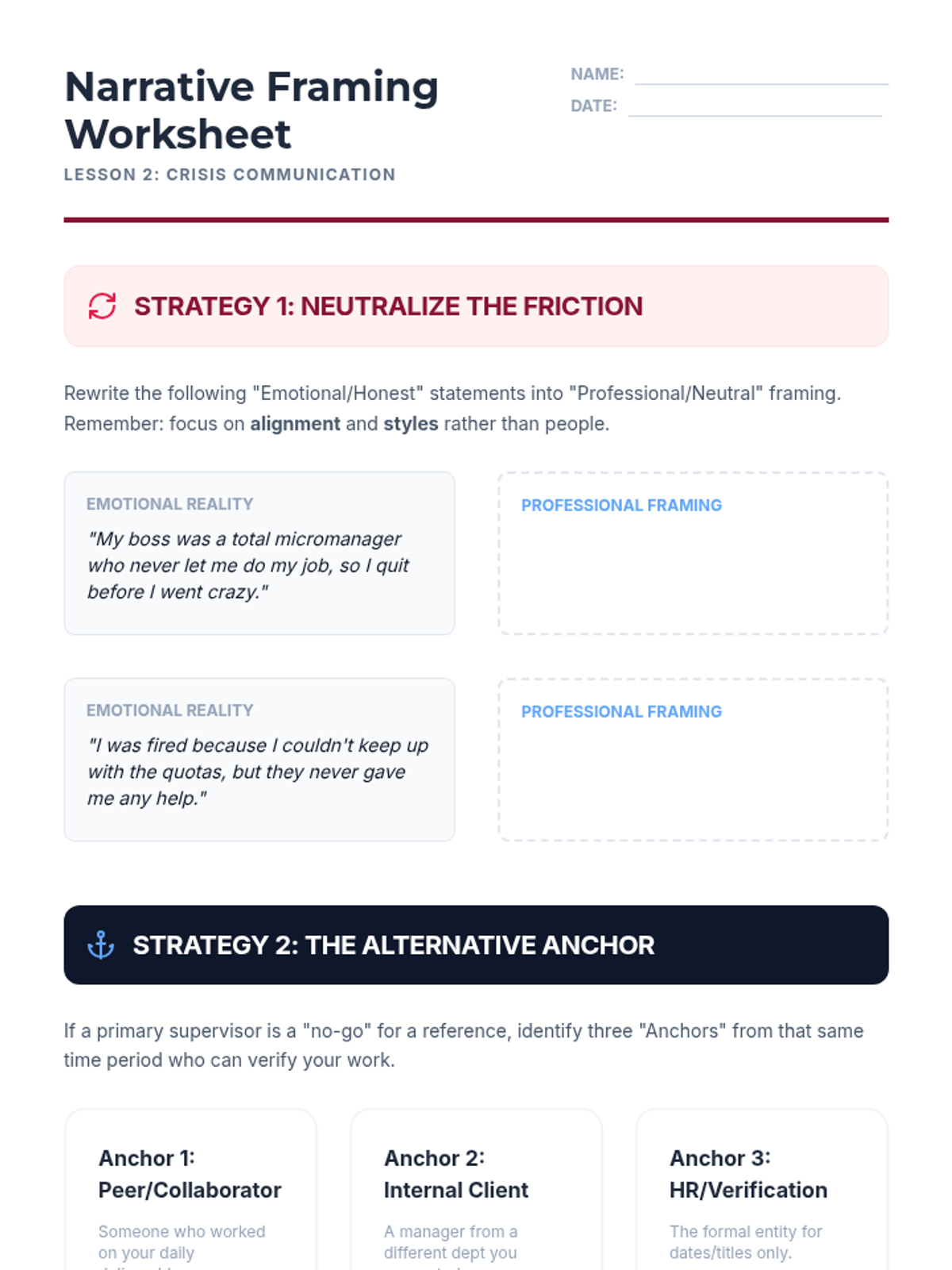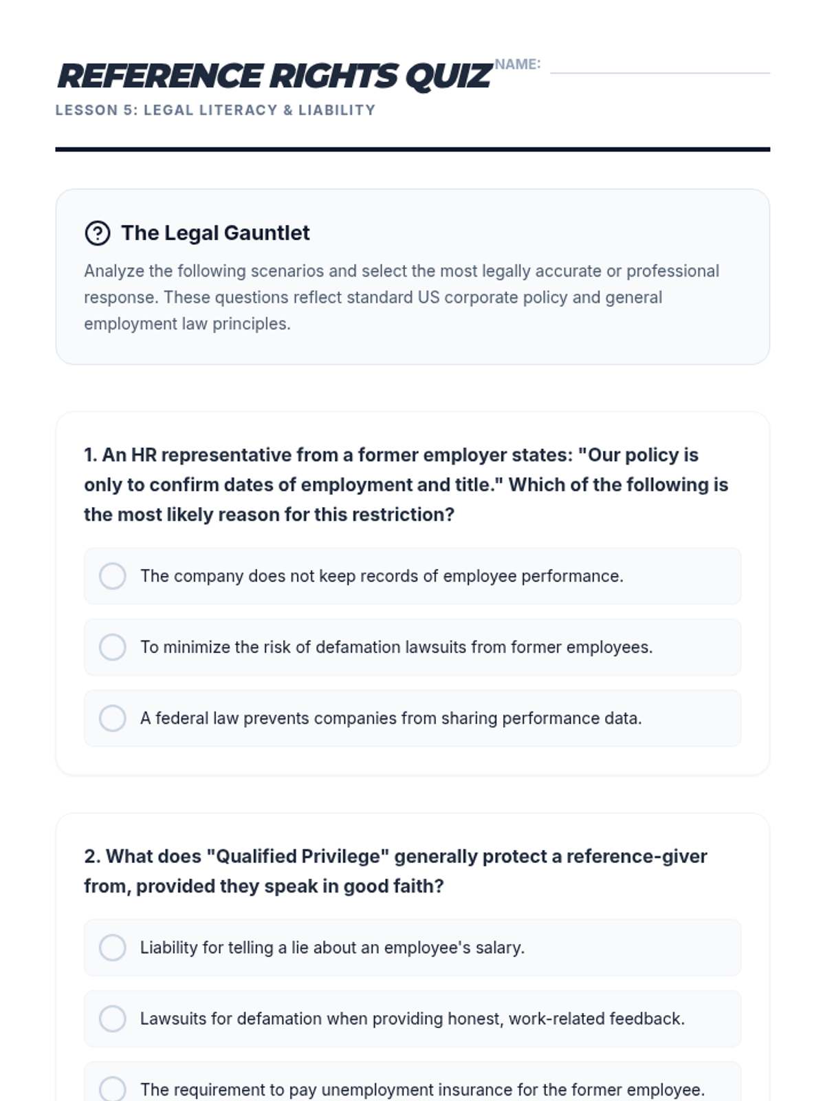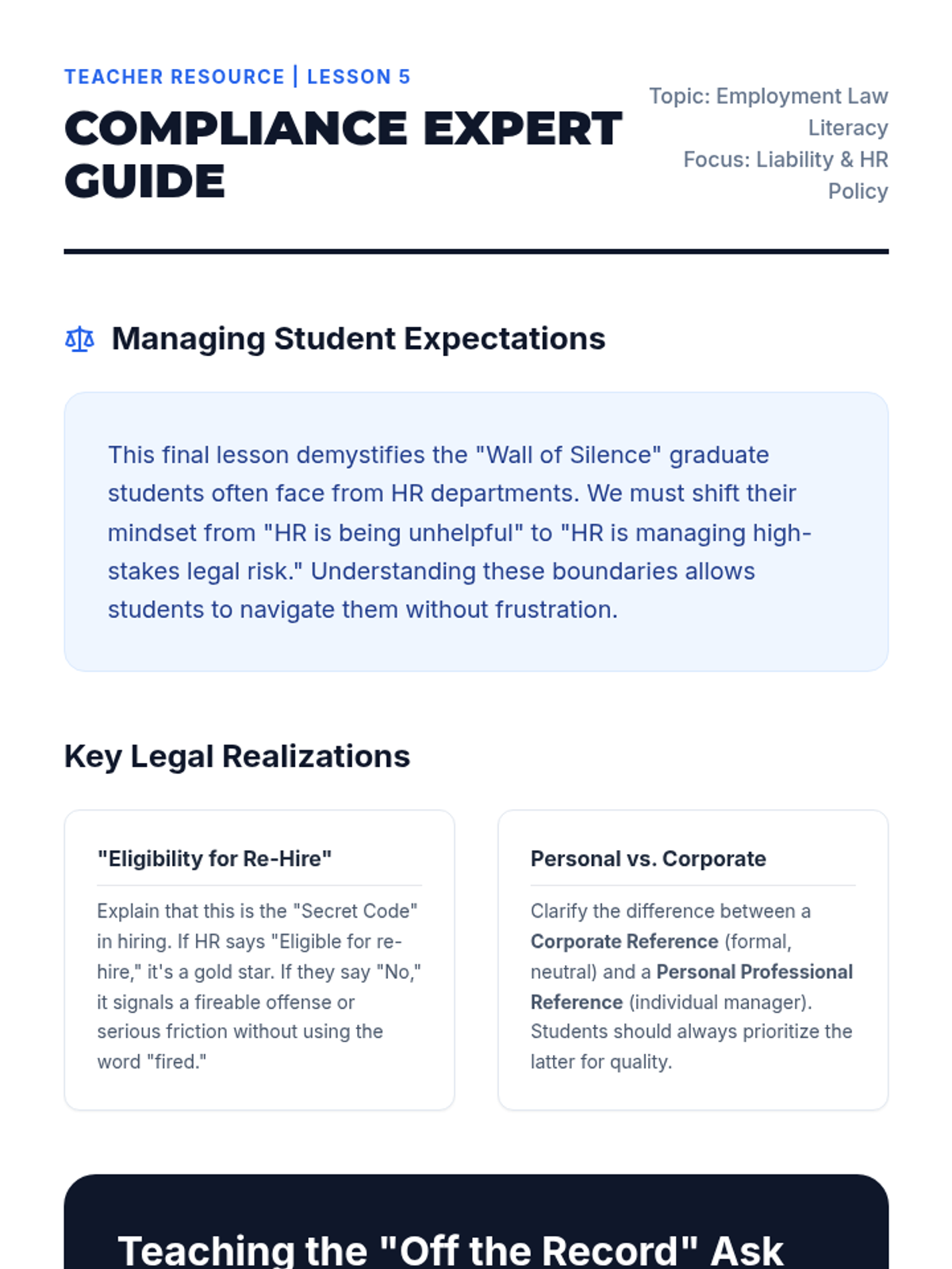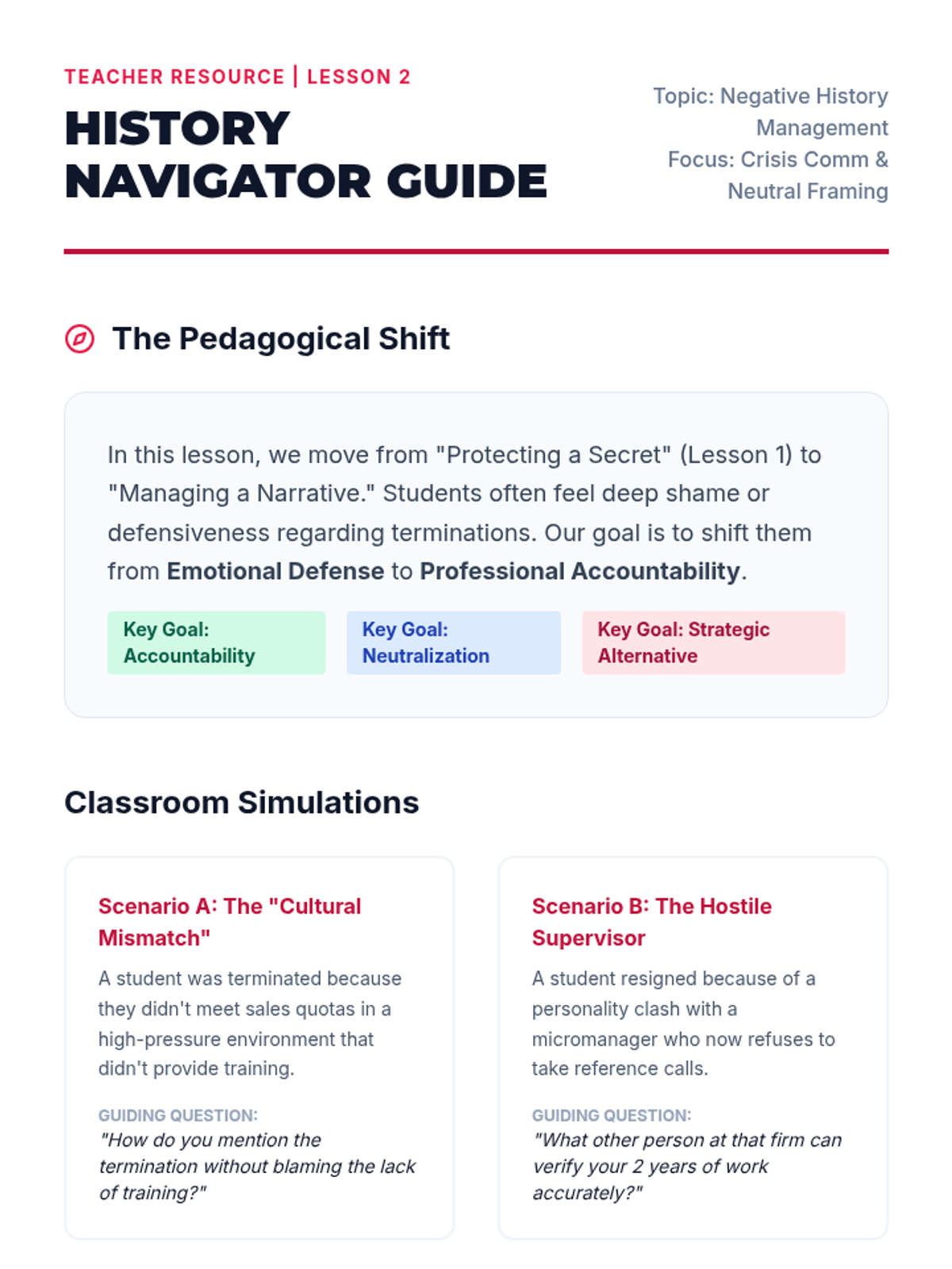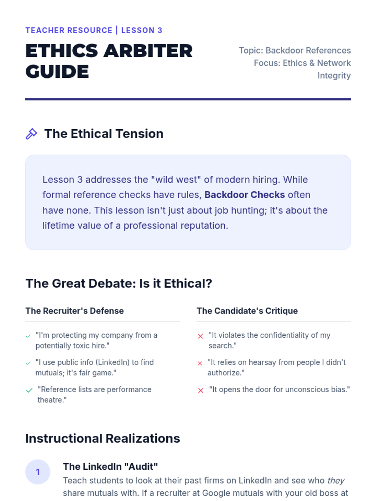 A case-study driven course for graduate students on navigating ethical dilemmas, confidential searches, and difficult employment histories during the reference check process. Students learn to manage their professional reputation and navigate complex background verification scenarios with transparency and integrity.