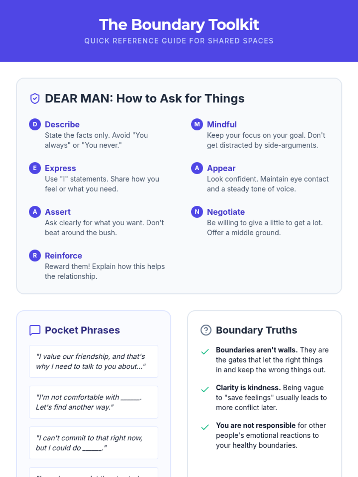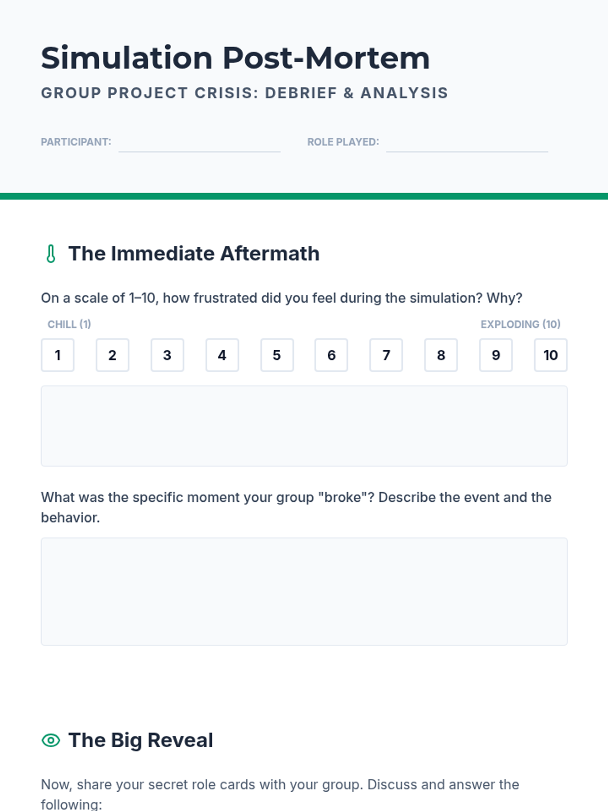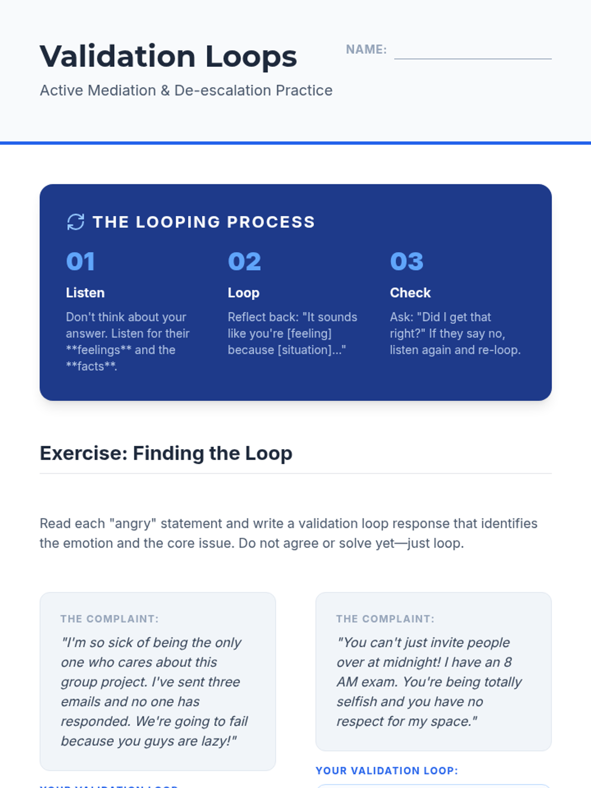 A 5-lesson unit for undergraduates on navigating interpersonal conflict, setting boundaries, and developing communication skills for shared living and working environments. Students explore their own conflict styles, engage in simulations, and practice assertive communication and de-escalation techniques.