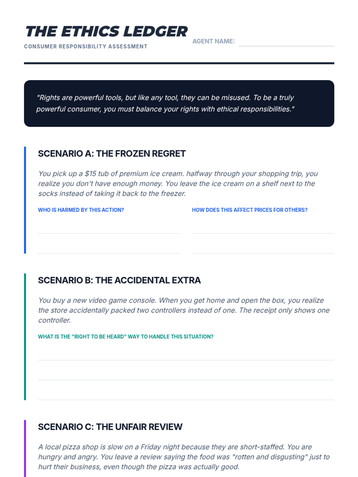A comprehensive unit on consumer rights, warranties, and the art of professional dispute resolution. Students learn to navigate the legal and ethical framework of the marketplace through case studies, role-plays, and writing workshops.