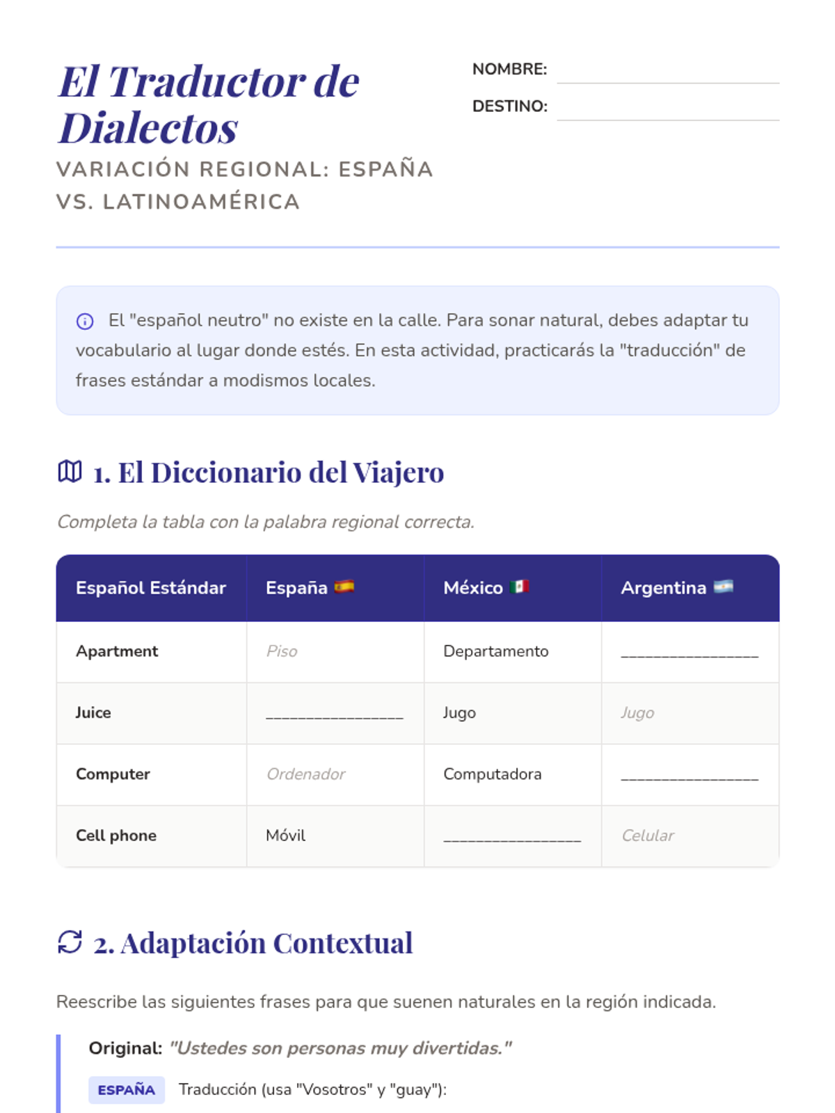 This sequence explores the diversity of the Spanish language through a sociolinguistic lens, focusing on how culture, geography, and class influence communication for intermediate learners at the graduate level. Students analyze registers, regional slang, humor, and digital communication to understand the link between identity and language.