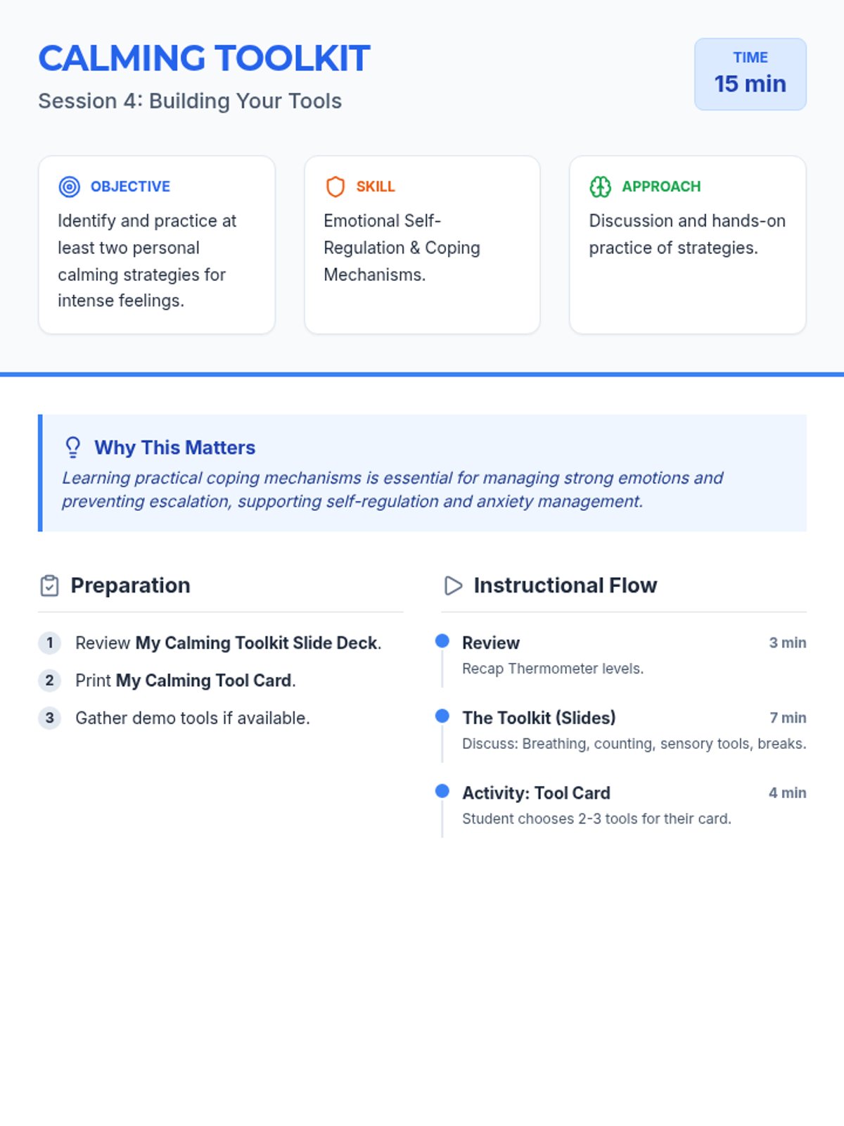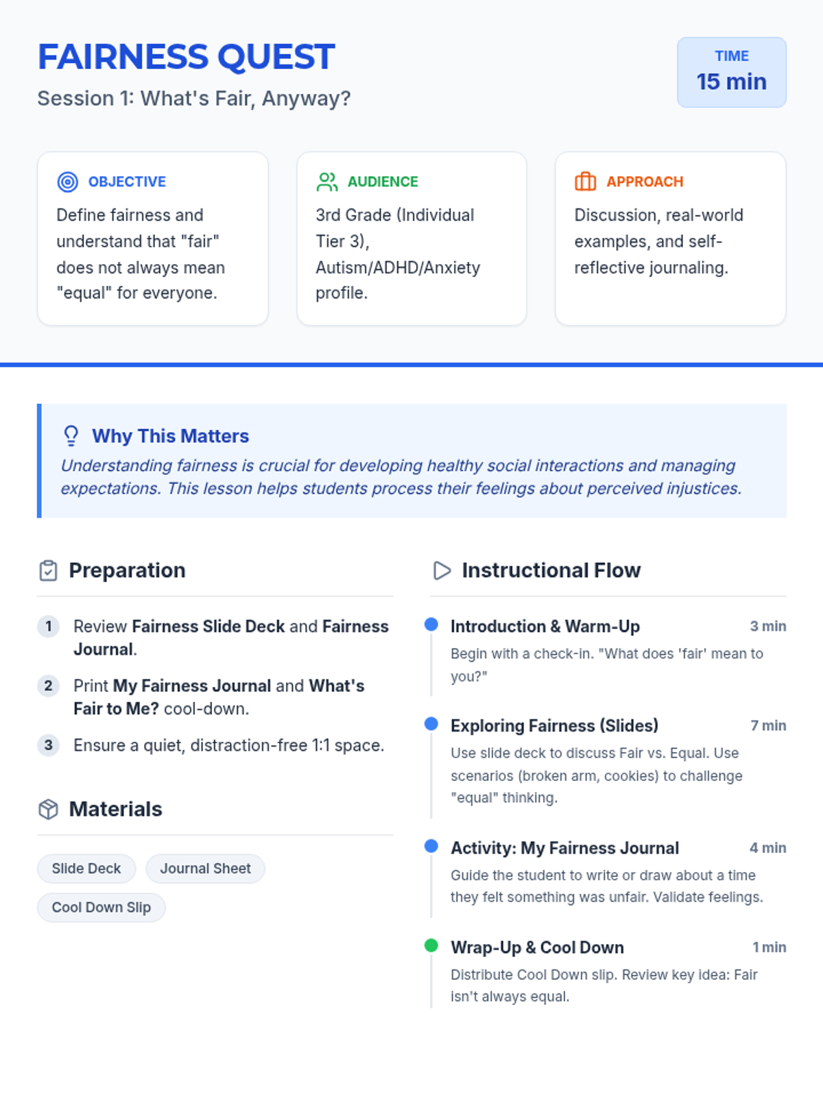 A comprehensive 9-week, 18-session Social-Emotional Learning (SEL) program specifically designed for a gifted 3rd-grade student with autism, anxiety, and ADHD. This sequence focuses on emotional regulation, flexible thinking, resilience, and self-advocacy through engaging metaphors like superheroes, detectives, and mountain climbers.