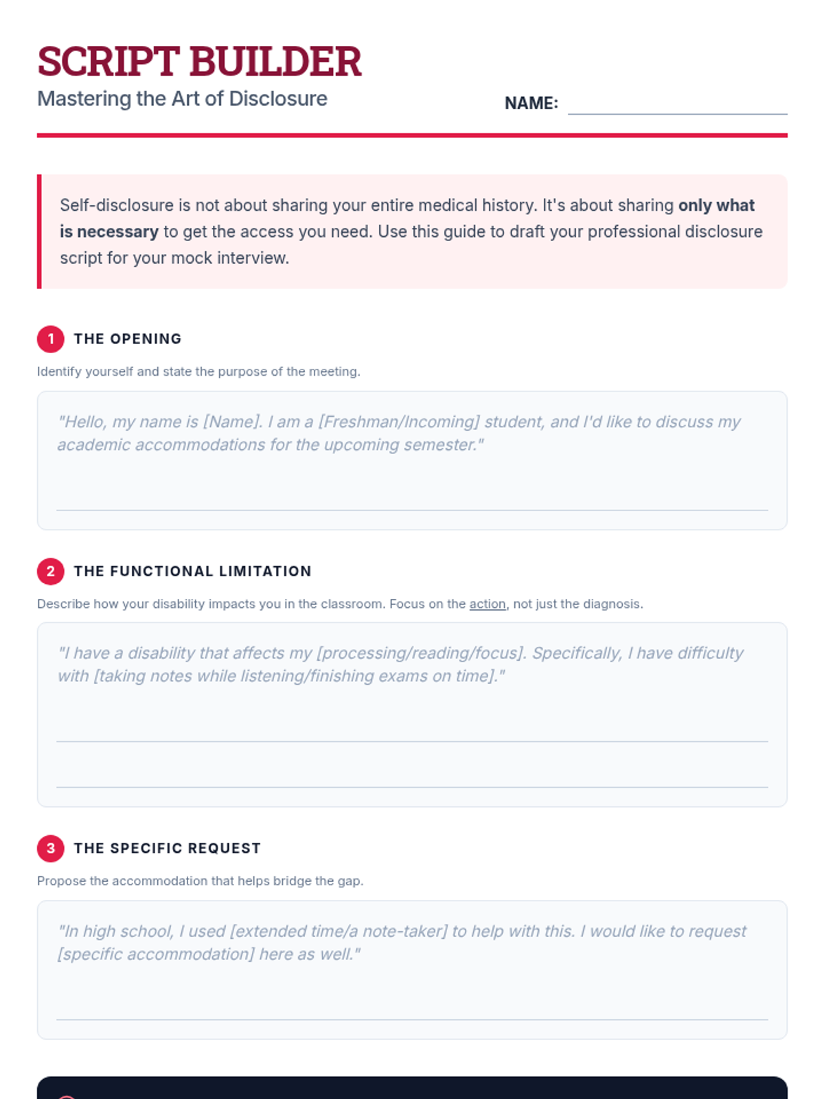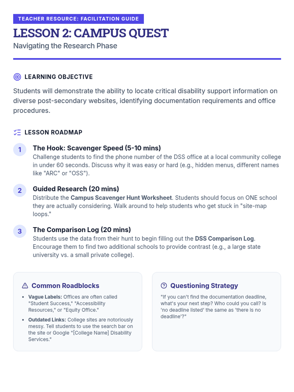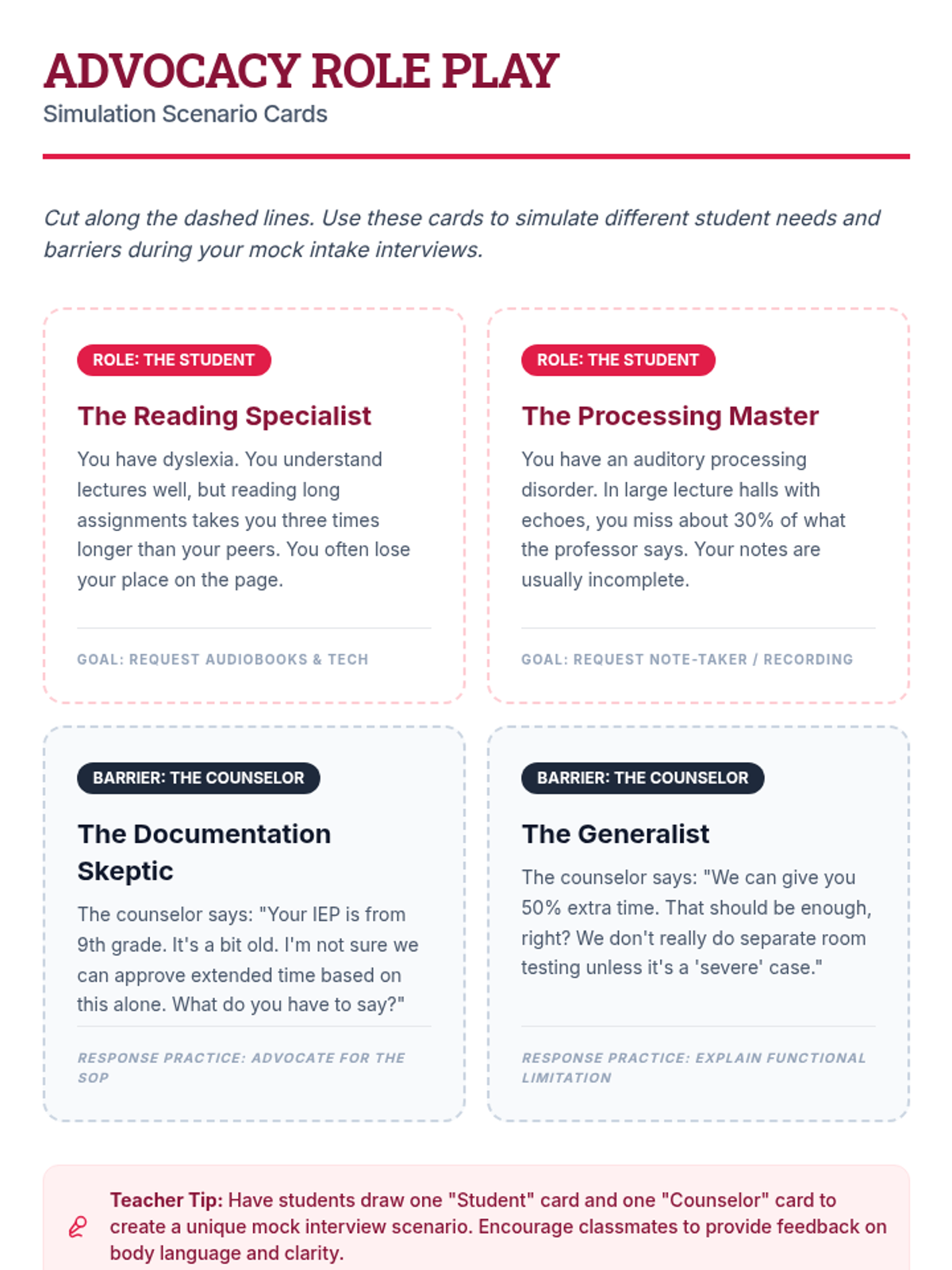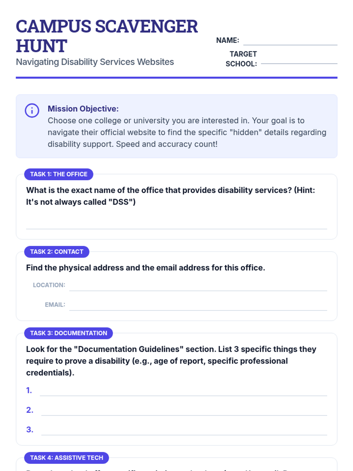 A comprehensive guide for 12th-grade students transitioning from IDEA-supported high school environments to ADA-protected post-secondary settings. This unit focuses on legal literacy, self-advocacy, and the practical steps required to secure disability services in college.
