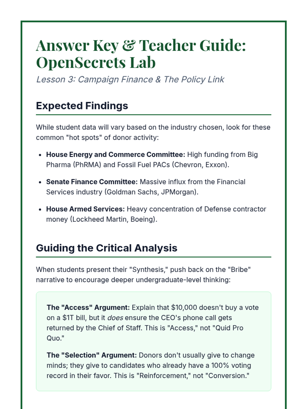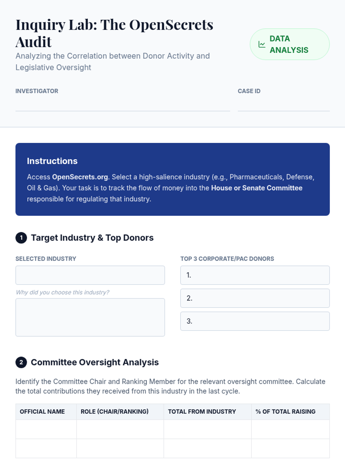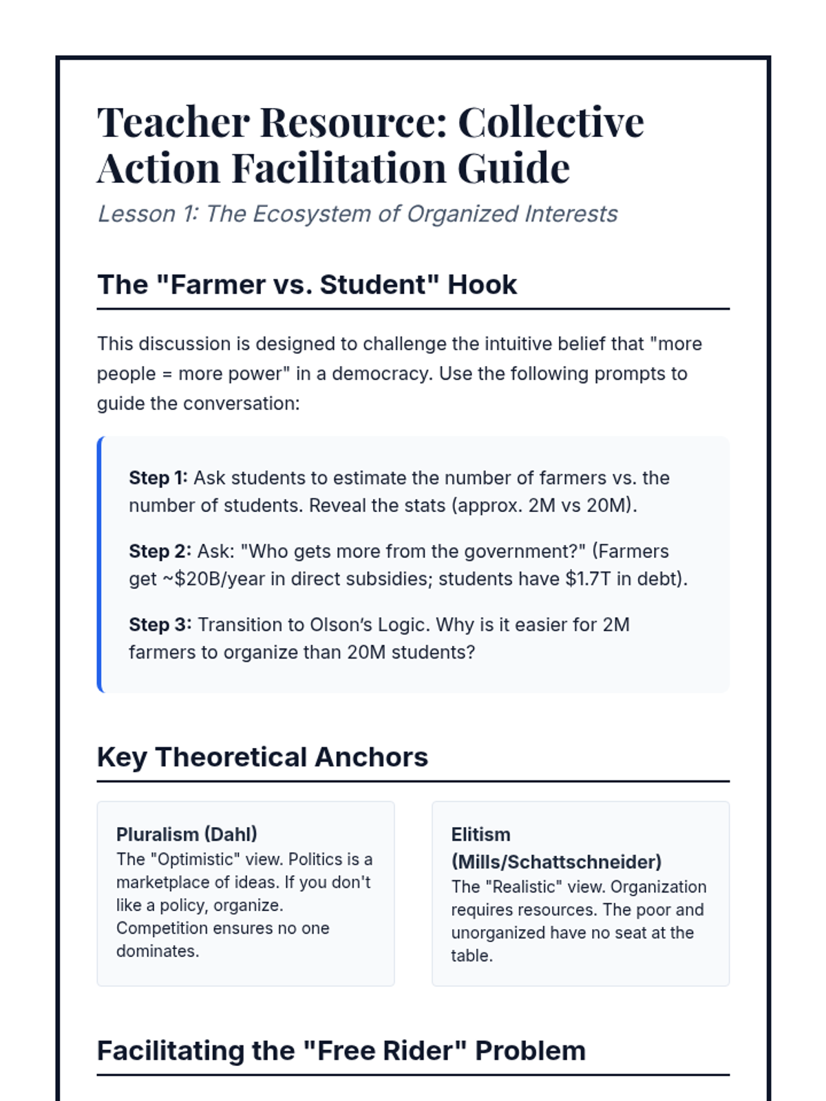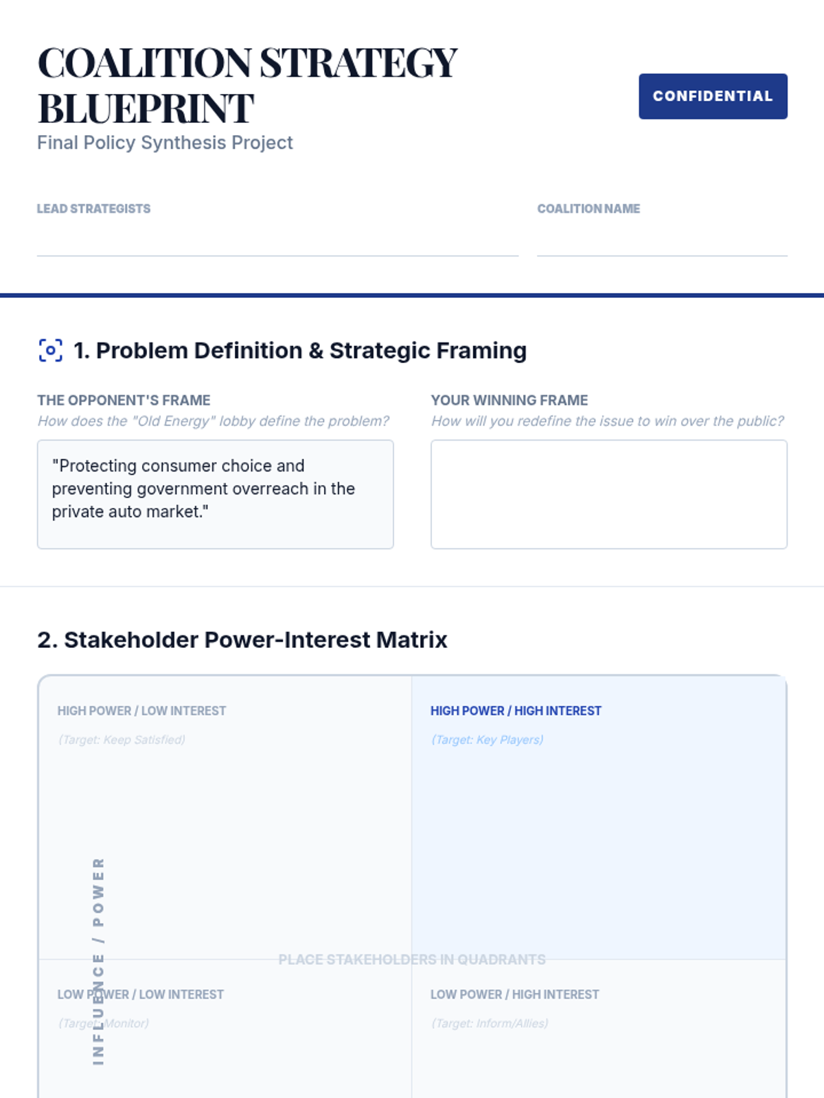 A comprehensive exploration of the external forces shaping public policy, focusing on interest groups, lobbying tactics, campaign finance, and the complex networks of influence that operate within and around government institutions. Designed for undergraduate students, the sequence moves from theoretical foundations of collective action to the practical design of advocacy strategies.