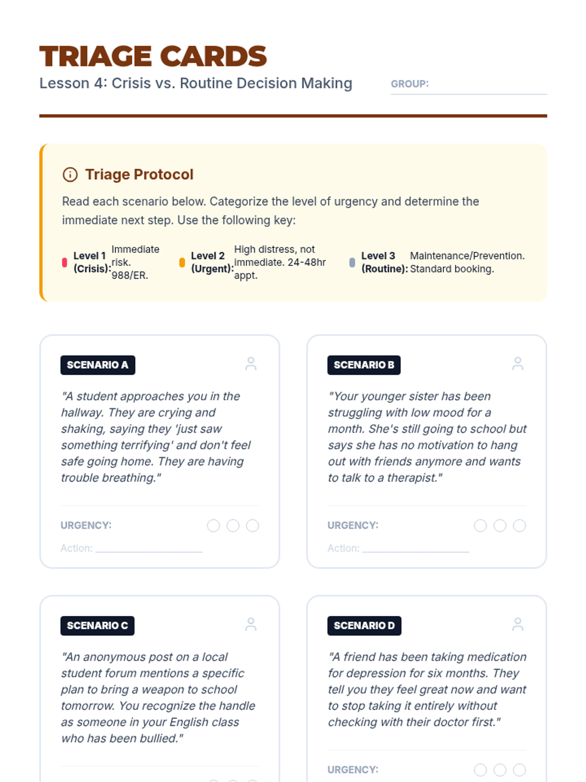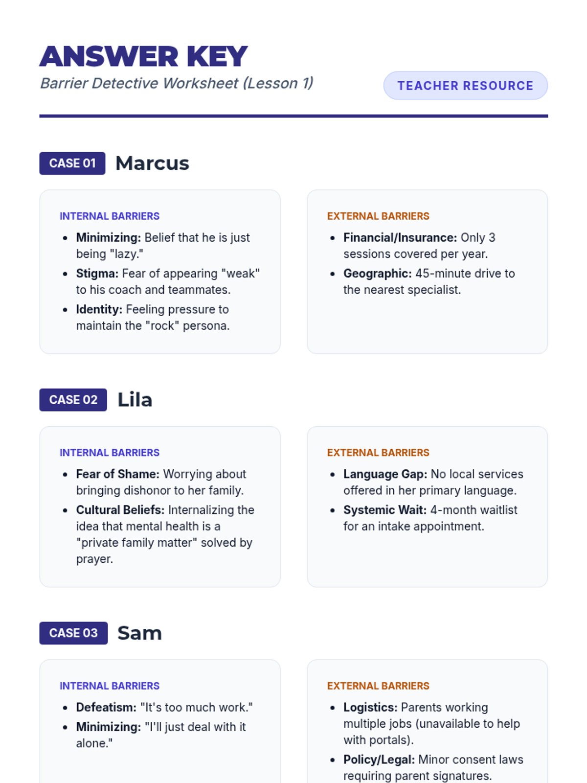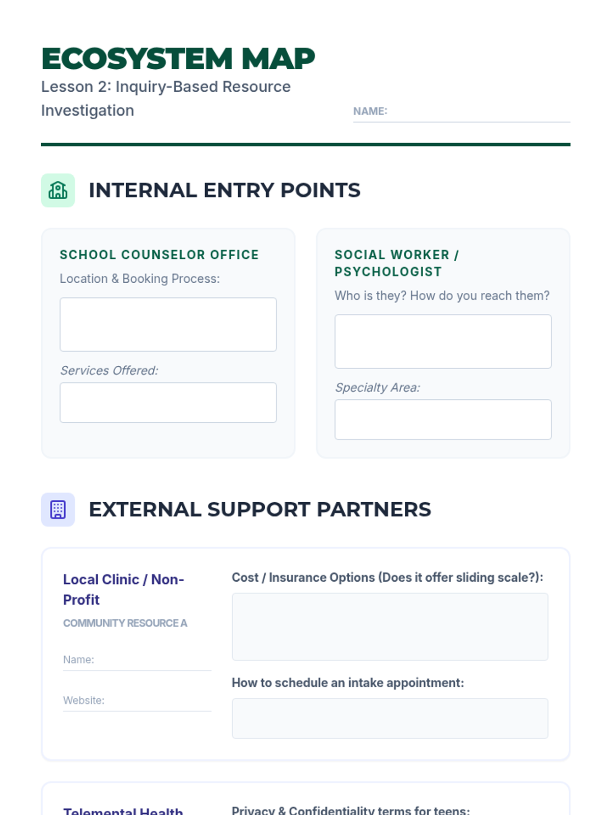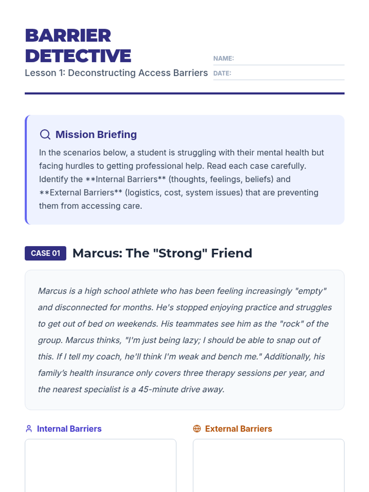 A comprehensive 5-lesson unit for 11th-grade students focused on identifying barriers to mental health care, mapping local support systems, mastering communication frameworks for help-seeking, and navigating the complexities of the healthcare system.
