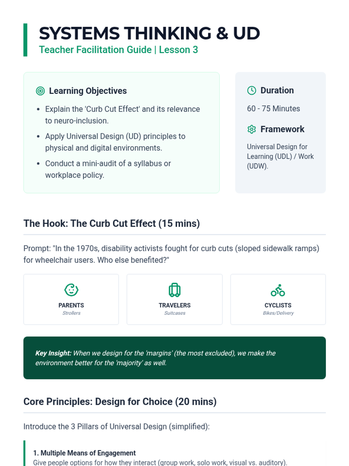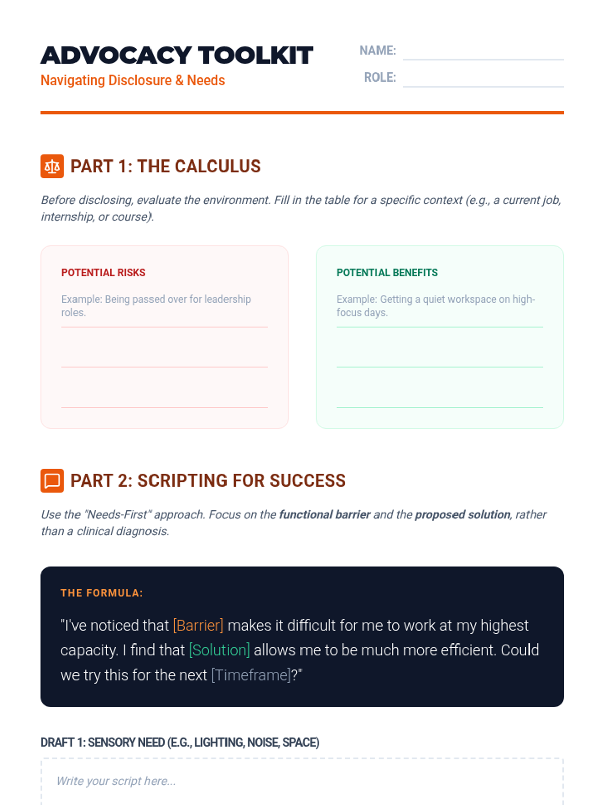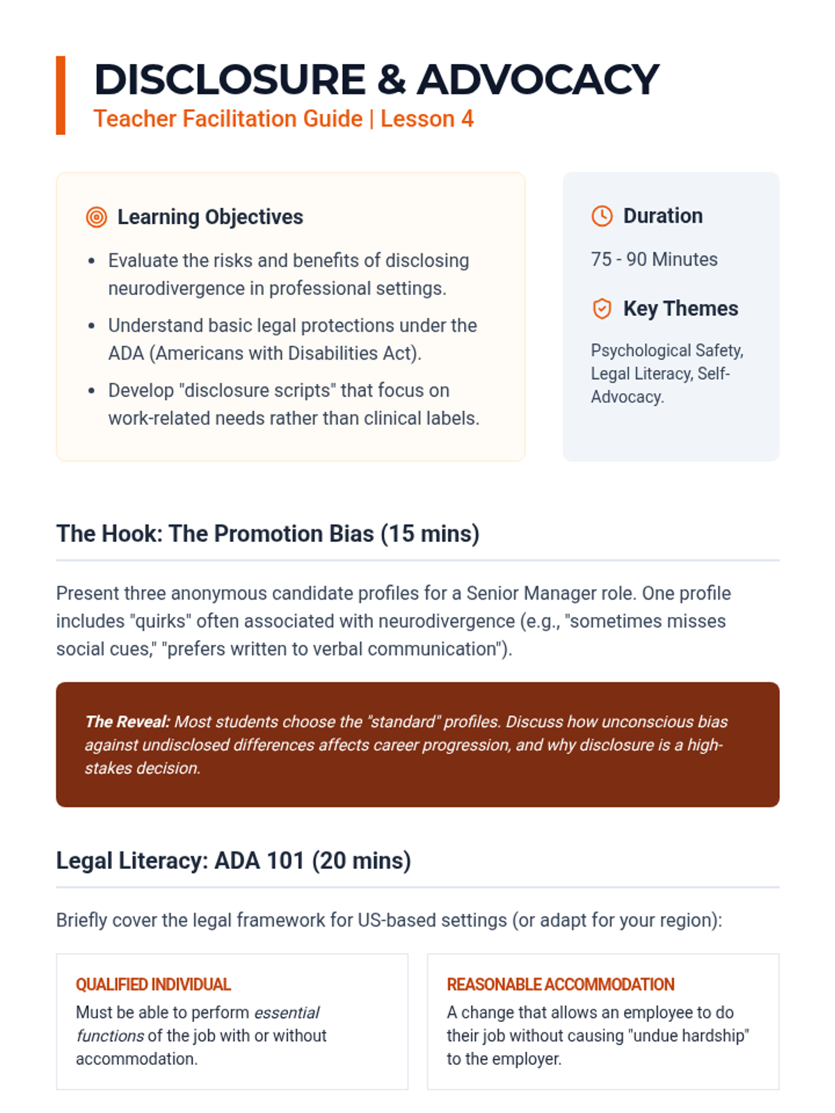 This sequence explores neurodiversity through the Social Model of disability, challenging traditional norms of professionalism and designing inclusive environments. Students will move from theoretical understanding to practical application in organizational policy and advocacy.